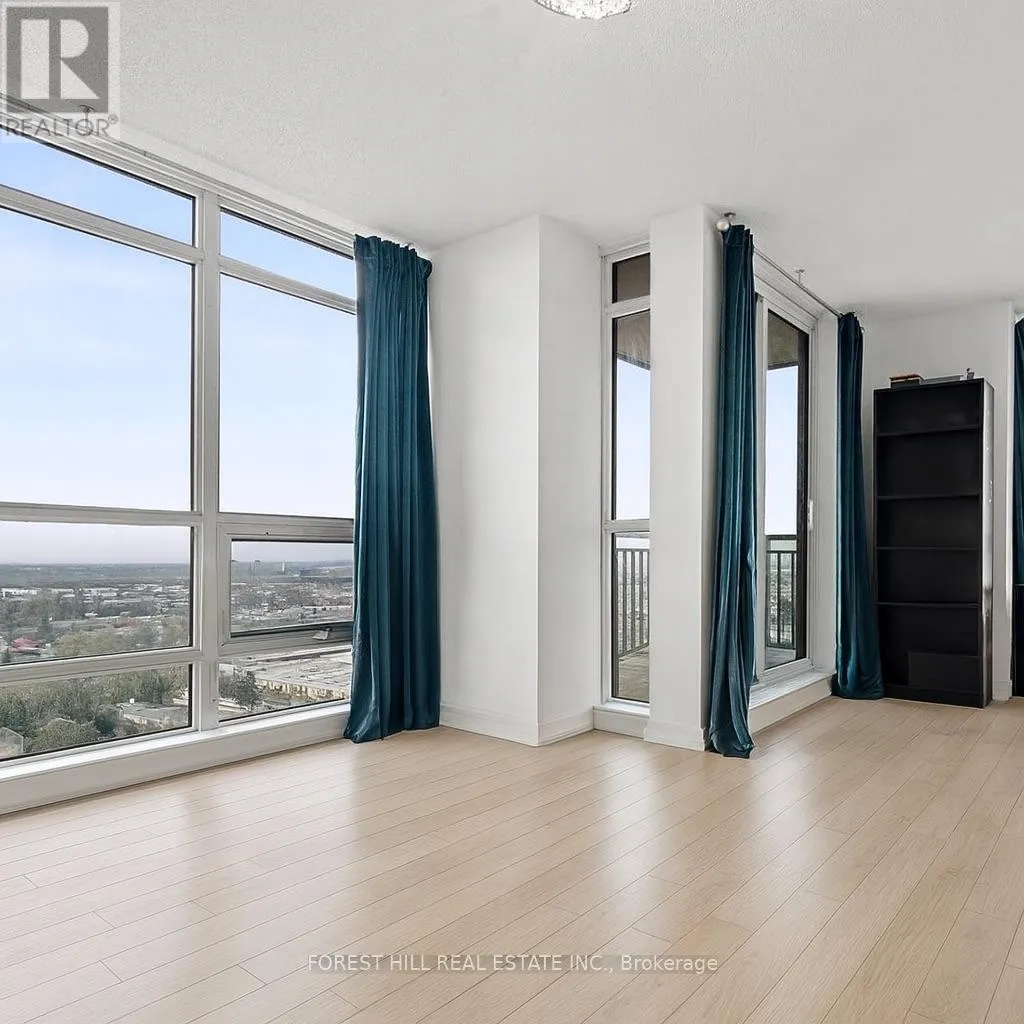Dufferin And Lawrence This Maranello home in the sky is in the highly sought-after Treviso 2. With 800 sq. ft. of beautifully designed space, boasts impeccable views, two opposite side bedrooms & an additional versatile den for the perfect work space. Two Contemporary 4-Piece Bathrooms Designed with the sleekest finishes for maximum comfort. All comes together with a perfect blend of modern elegance and all the city conveniences from tanset to entertainment. Floor-to-ceiling windows fills this home with natural light, offering panoramic views from every room. The open-concept layout seamlessly connects the living, dining, and kitchen area's with an island ideal for both entertaining and everyday living. Sleek laminate flooring throughout adds a touch of contemporary sophistication to your bright & spacious Living Area. Unwind while soaking in the breathtaking cityscape. Modern Kitchen Featuring designer cabinetry, premium appliances, and ample counter space for all your culinary adventures. Primary Retreat with expansive windows and a large closet. Second Bedroom, Perfect for kids, guests, family, or another stylish home office. Enjoy the added convenience of a dedicated parking spot and a locker for extra storage. This Treviso corner unit has been well cared for and offers an unbeatable combination of style, space, and city views. Whether you're looking for a luxurious home or a prime investment opportunity, this one is a must-see! (id:27476)