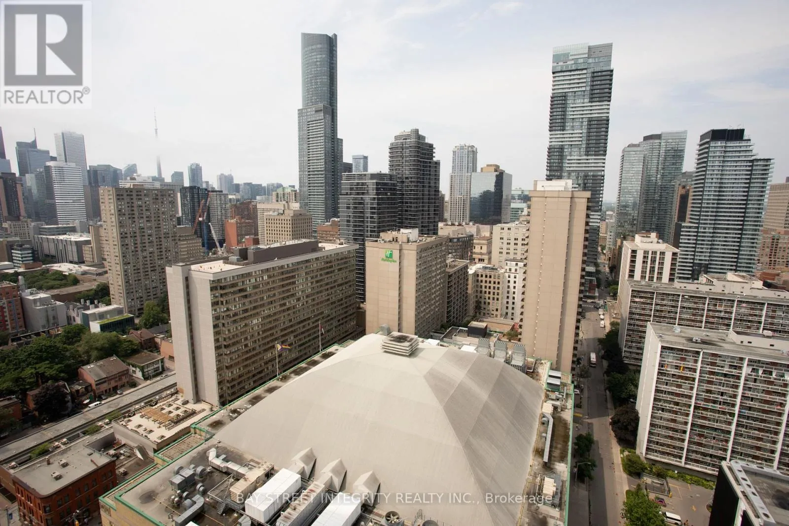 Cross Streets: Church & Carlton. ** Directions: Southwest. Experience elevated city living in this spacious and bright corner unit at the highly sought-after Axis Condos (85 Wood St). Located on the 32nd floor, this 670 sq. ft. suite offers breathtaking, unobstructed views of the Toronto skyline and the CN Tower. The interior features high-end finishes with integrated appliances and a modern aesthetic. The thoughtful "split bedroom" floor plan maximizes space and provides excellent privacy, making it ideal for roommates, students, or a home office setup. Step out onto the large open balcony to enjoy fresh air and panoramic city vistas. Residents enjoy access to 6,500 sq. ft. of world-class amenities, including a state-of-the-art Fitness Centre to keep you healthy and active. This location offers a perfect Walk Score, situated just steps from Toronto Metropolitan University (formerly Ryerson), U of T, College Subway Station, and the flagship Loblaws at Maple Leaf Gardens.Perfect for students and young professionals seeking convenience and luxury in the heart of the city. (id:27476)