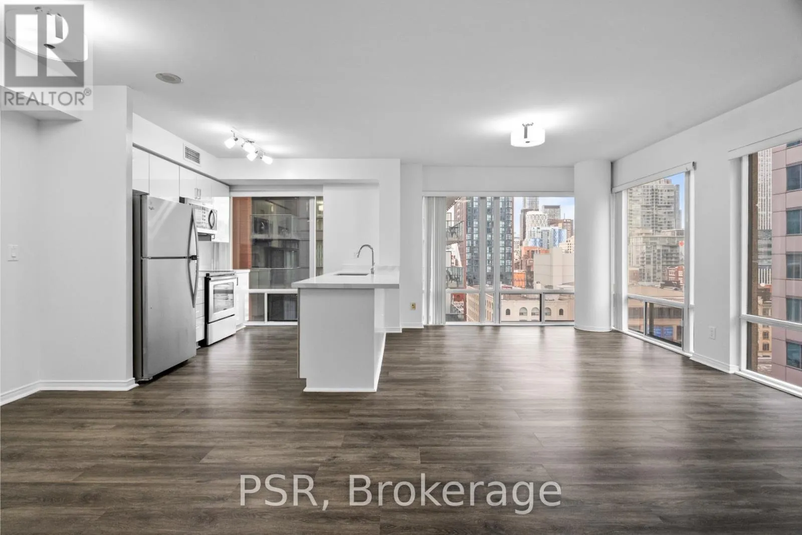 John St & King St W This Spacious Two-Bedroom Corner Suite Offers 1230 Square Feet Of Thoughtfully Designed Living Space. The Modern, Open-Concept Kitchen Features A Breakfast Bar That Seamlessly Connects To The Living And Dining Areas, Surrounded By Large Windows That Floor The Space With Natural Light! The Primary Bedroom Features An Ensuite Bathroom And A Walk-In Closet, While The 2nd Bedroom Is Complemented By A Private Balcony. Additional Highlights Include Vinyl Flooring Throughout. Residents Can Enjoy A Variety Of Amenities, Including A Concierge, Gym, And A Rooftop Terrace With BBQs, Along With A Party Room And Lounge, Movie Theatre, And Golf Simulator For Added Entertainment. Situated In The Heart Of The City, This Property Offers Unmatched Proximity To The Subway, Financial District, Entertainment District, And The Lively Neighbourhoods Of King And Queen West, With Easy Access To The Gardiner Expressway. Experience Toronto's Finest Restaurants, Theatre, Shopping, And Vibrant City Life Right At Your Doorstep! (id:27476)