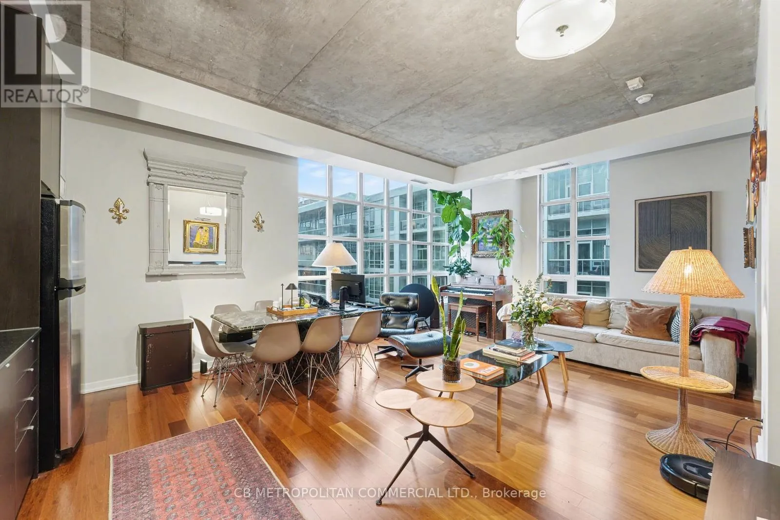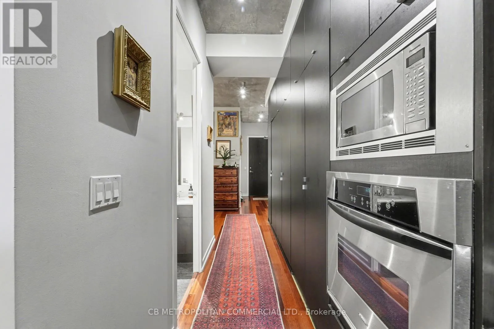 Cross Streets: King & Spadina. ** Directions: Off Brant St, North of King St W. Spacious 1+Den lift at Quad Lofts featuring 10 Ft concrete ceilings, modern finished and bright NW courtyard views. Sleek Kitchen with gas cooktop and ample storage. Open-concept living/dining ideal for entertaining. Generous den perfect for a home office or guest room. Primary bedroom with walk-in closet and sliding barn doors. Parking included. A quiet boutique building steps to Waterworks Food Hall and King West shops & Transit. (id:27476)