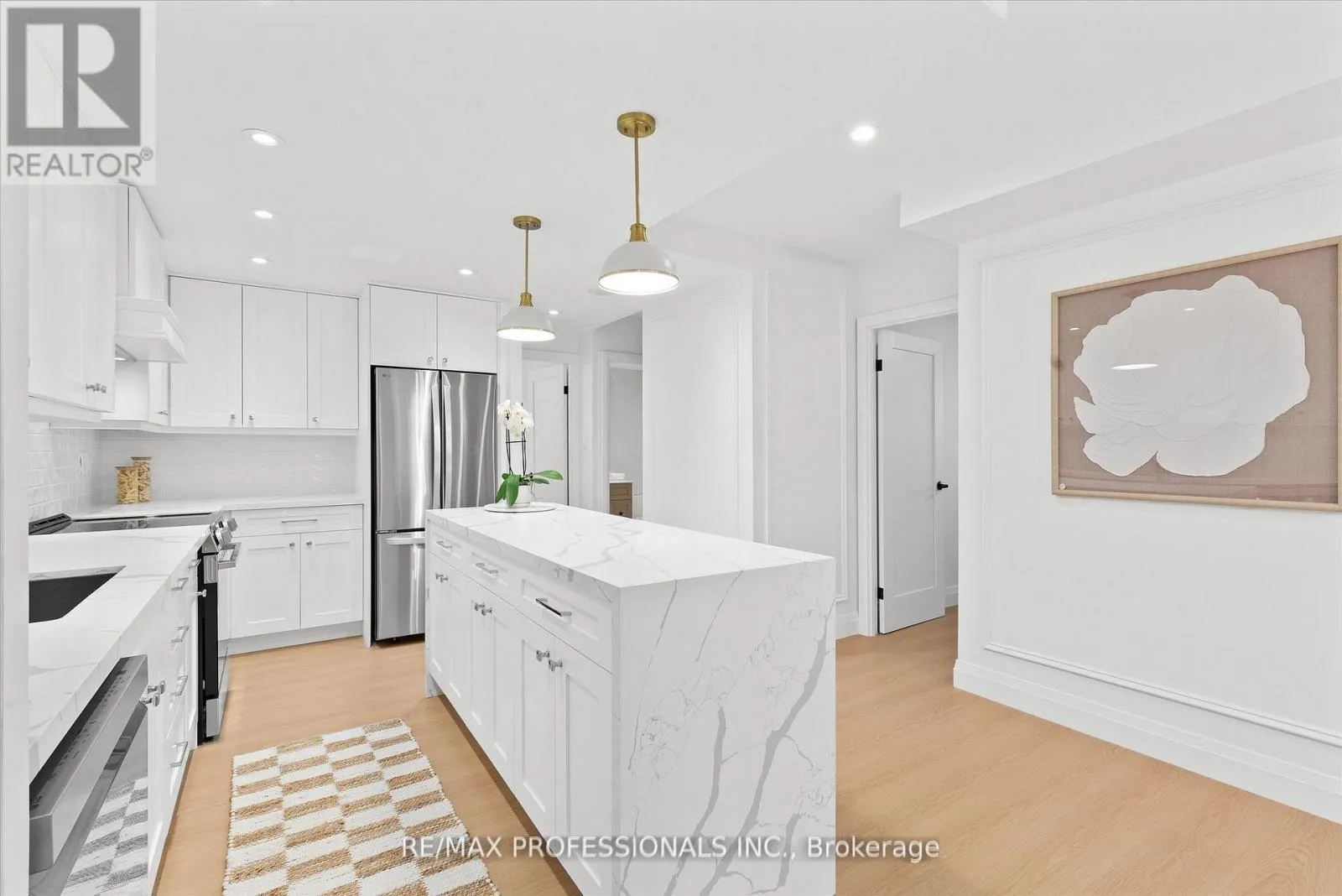 Burnhamthorpe/Mill Welcome to this beautifully renovated, boutique-like 3-bedroom, 2-bathroom corner unit, offering over 1,100 square feet of modern living space. Flooded with natural light from multiple exposures, the layout feels open and airy the moment you walk in. The home features Canadian-made laminate floors throughout, elegant wainscoting, sleek pot lighting, and custom-built closets that maximize storage. The custom-designed, open-concept kitchen with a waterfall island is a true showstopper, complete with all-new appliances and refined quartz countertops-perfect for cooking, entertaining, and everyday living. Luxury is redefined in both bathrooms, featuring Italian-made tiles and tasteful modern finishes. Every room feels bright, spacious, and inviting. Fully updated from top to bottom, this move-in ready unit truly redefines luxury and comfort. Maintenance fees are all-inclusive, covering hydro, heat, water, air conditioning, Rogers cable, and high-speed unlimited internet. The building offers an impressive array of amenities, including indoor and outdoor pools, sauna, a newly renovated recreation center with gym, ping pong, squash court, golf simulator, party room, outdoor playground, basketball court, and tennis court. Ideally located next to top-rated schools and Centennial Park, with TTC at your doorstep and quick access to Highways 427, 401, and QEW, airport, shopping, golf, and more-just move in and enjoy! (id:27476)