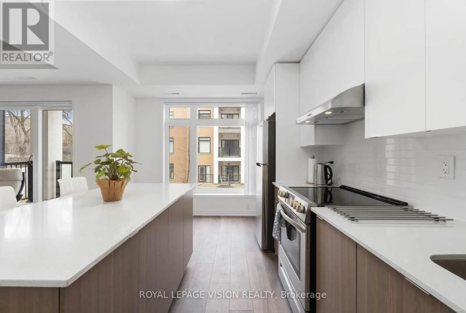 Cross Streets: Eglinton Ave / Keele St. ** Directions: Eglinton Ave W/Keele Street. Bright and spacious 1,140 sq.ft. 3-bed, 2-bath corner suite in the heart of Keelesdale!This modern stacked townhouse features 9' ceilings, hardwood flooring throughout, a sleek quartz kitchen countertop, and a sliding glass patio door that brings in abundant natural light. Enjoy high-end finishes, a large primary bedroom, and beautifully designed modern kitchen and bathrooms.One parking space and one locker included.Conveniently located close to all amenities, shopping, TTC, and the subway. (id:27476)