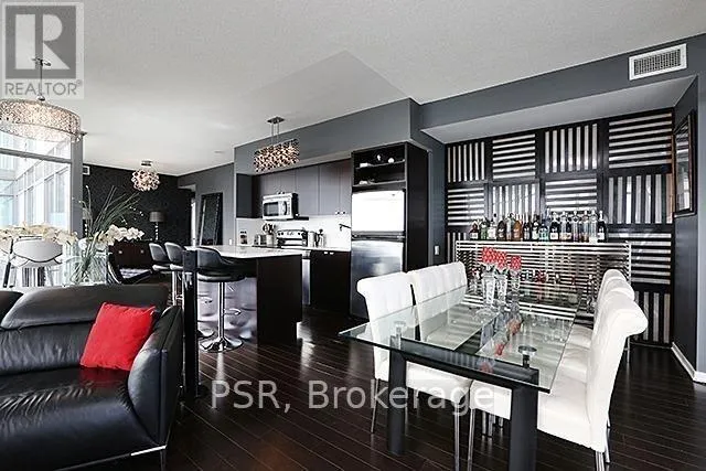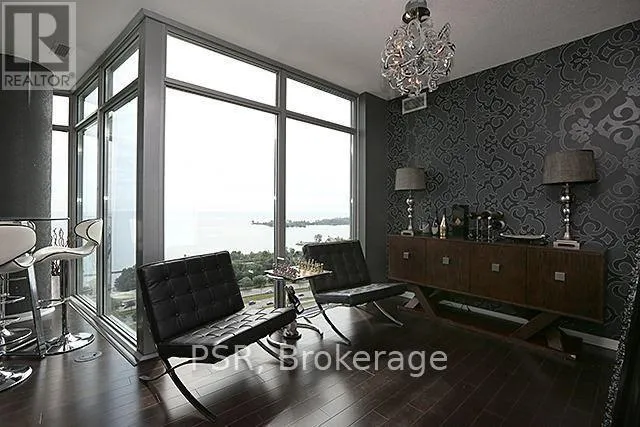 Cross Streets: Lakeshore & Windermere. ** Directions: Lakeshore to Windermere. Modern Elegance Meets Lakefront Living at NXT II- Introducing Suite 2104- a rarely offered2+1 bedroom, 2-bathroom corner residence boasting nearly 1,100 sqft of refined, contemporary living framed by sweeping, unobstructed views of Lake Ontario and the Toronto skyline. From the moment you enter, you're greeted by floor-to-ceiling glass, rich hardwood floors, and a bright open-concept layout that effortlessly blends luxury with comfort. The designer kitchen features sleek cabinetry, stone counters, stainless steel appliances, and an airy flow perfect for entertaining. The expansive living and dining areas spill out onto a wraparound balcony, your private front-row seat to Toronto's waterfront, sunrise views, and the twinkling skyline by night. The primary suite offers a modern ensuite bath, and calming lake vistas. The second bedroom is complemented by a custom Murphy bed for flexible use, and the spacious den makes an ideal home office, reading lounge, or creative studio with the same beautiful lake views throughout. NXT II residents enjoy access to resort-inspired amenities: A state-of-the-art fitness centre; Indoor/outdoor swimming pools; Tennis court; Theatre room & upscale party lounge; 24-hour concierge; a Day Care Centre; Guest suites + ample visitor parking. Set just steps from High Park, the lakefront, and the Humber River trails, this location is a dream for anyone who loves nature- while still being minutes from downtown via the Queensway, Gardiner, or the 501 streetcar. Perfect for executives, downsizers, or anyone seeking lifestyle, luxury, and convenience in one of the West End's most prestigious condo communities. Available furnished. A truly breathtaking suite- inside and out. (id:27476)
