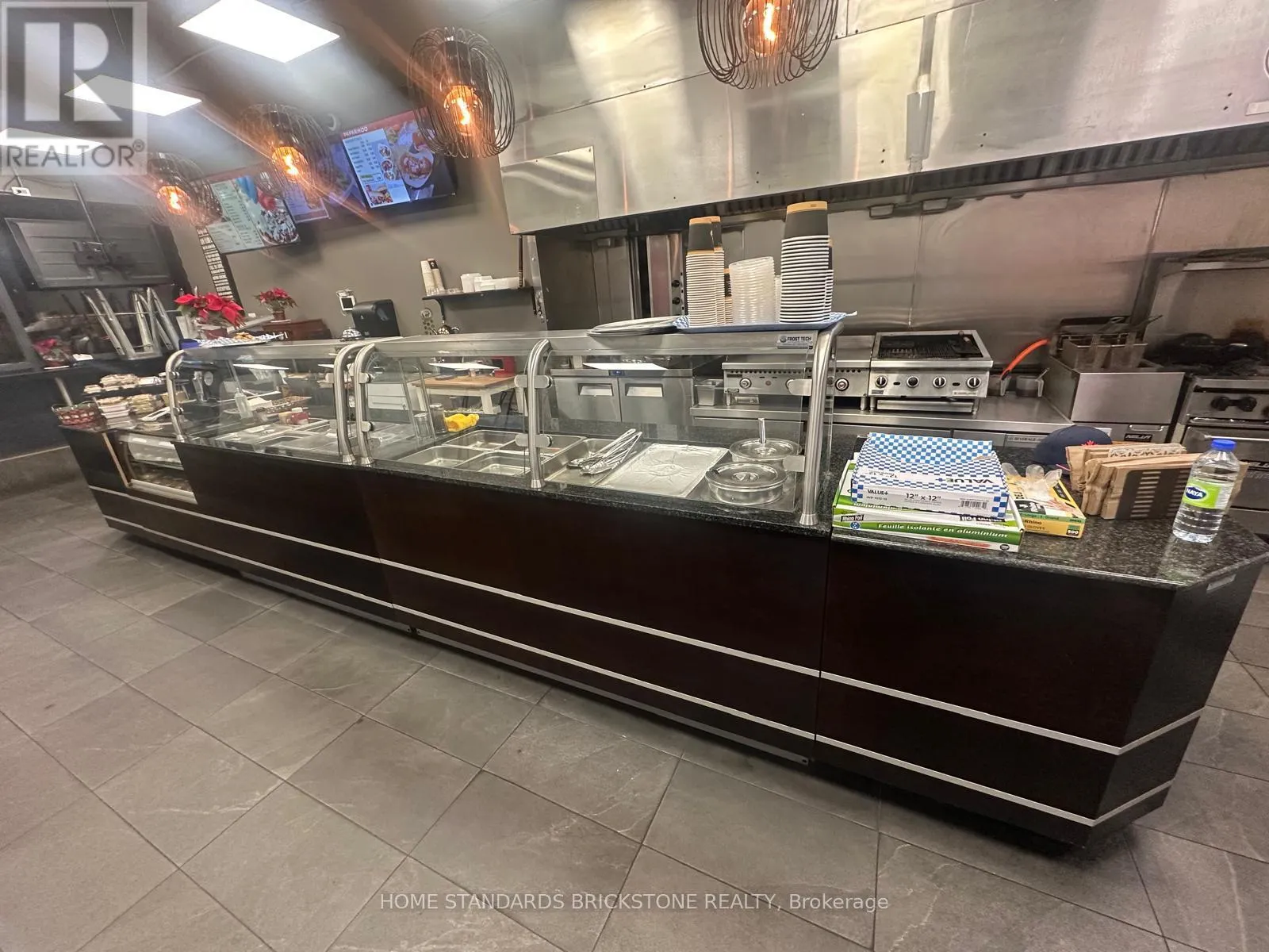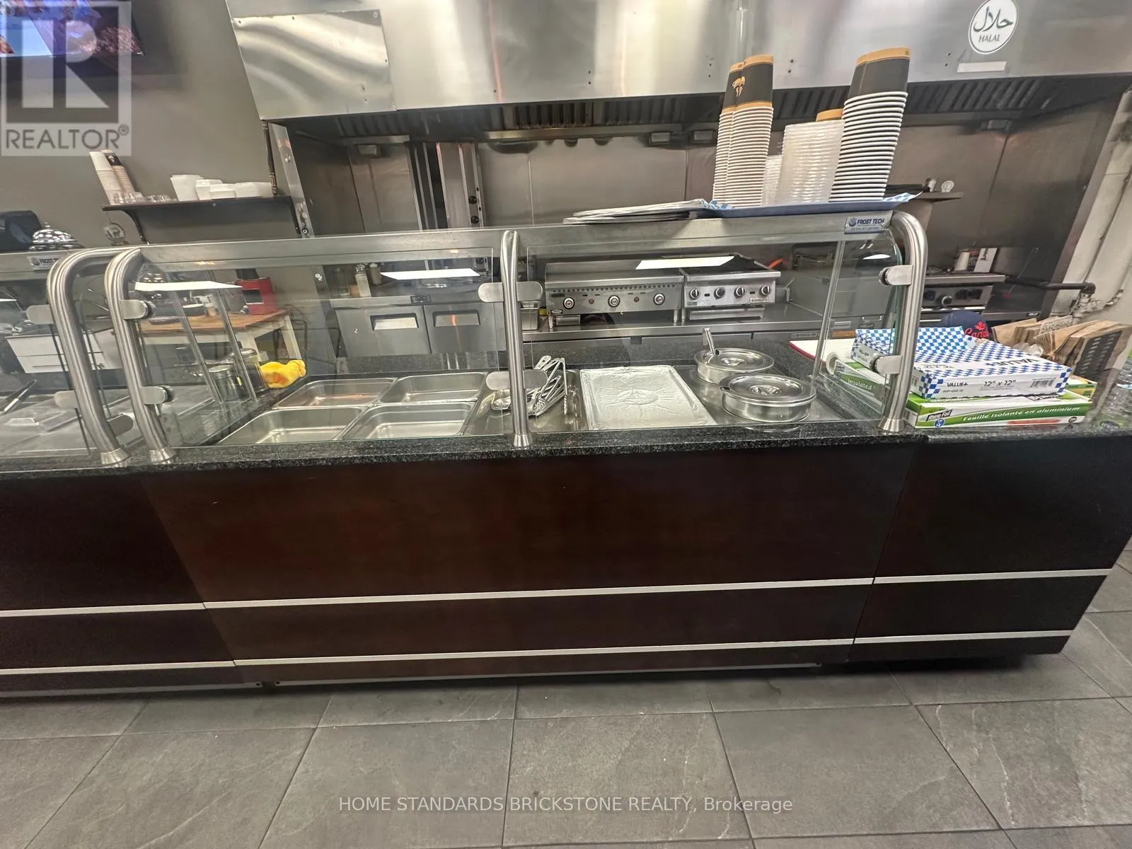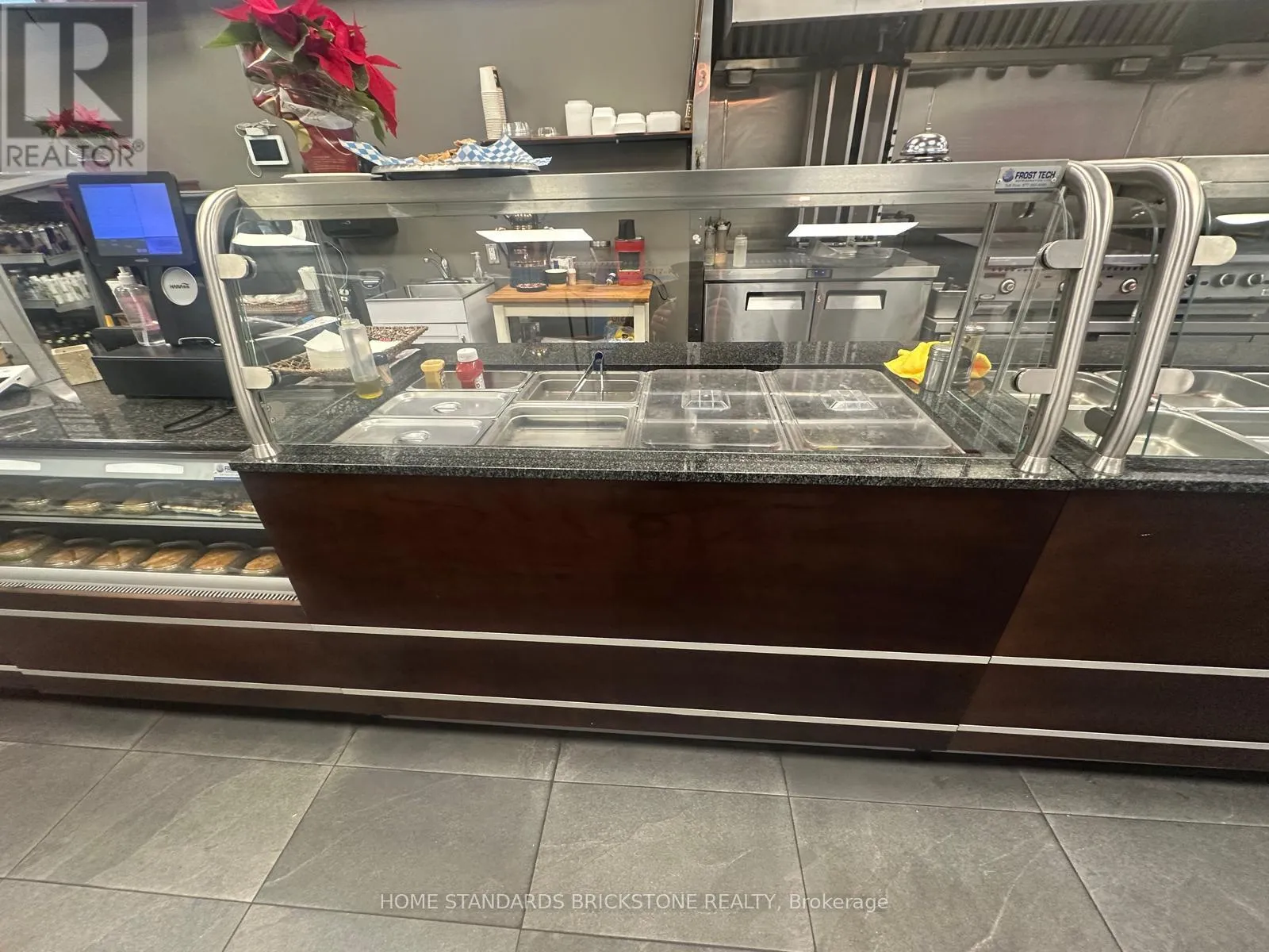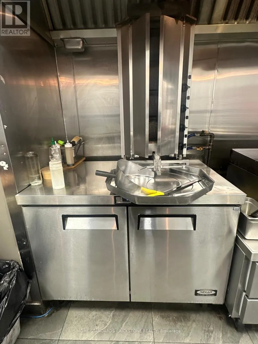 The Queensway & Kipling A prime turnkey restaurant opportunity in a fast-growing corridor. This beautifully set-up restaurant was fully renovated approximately four years ago and has been maintained in excellent condition ever since. The space offers a modern, efficient layout featuring a rare 16-foot commercial hood, shawarma grills, and many more well-kept kitchen components, all in immaculate clean condition, along with a large walk-in fridge and generous prep and storage areas. This provides a turnkey-ready setup that allows a new owner to begin operating immediately. Surround yourself with an established, vibrant food strip featuring Burrito Boyz, K&B Sushi, Scotty Bon's Caribbean Grill, and North of Brooklyn Pizzeria, in a rapidly growing corridor supported by strong surrounding businesses, new high-rise residential developments, and a major Longo's opening directly across the street. This combination drives consistent foot traffic and offers exceptional exposure for fast-food and quick-service restaurant concepts, as well as takeout and delivery operations through Uber Eats and such. The new owners have the flexibility to introduce an entirely new menu and brand, or to continue the existing concept with complete A-to-Z training for a seamless takeover. The infrastructure and equipment support a wide range of culinary operations, making this an adaptable and practical choice for both established operators and those looking to expand. (id:27476)