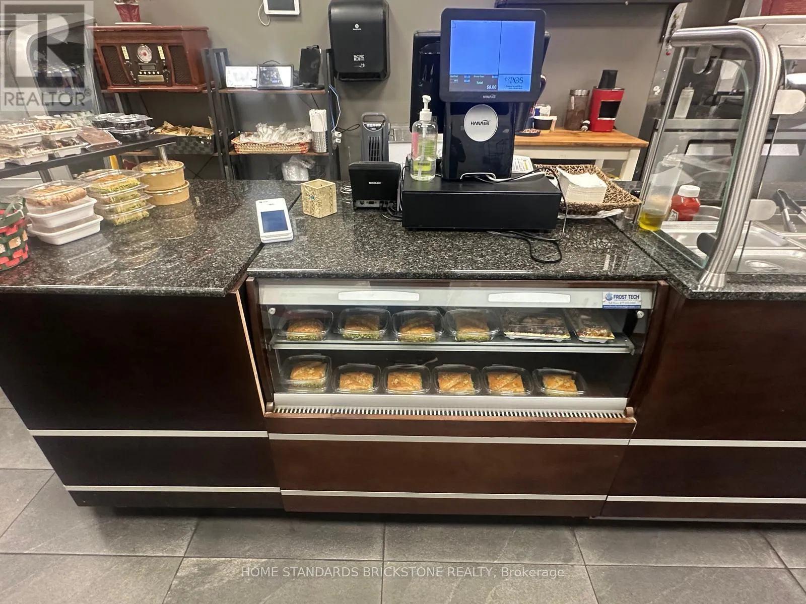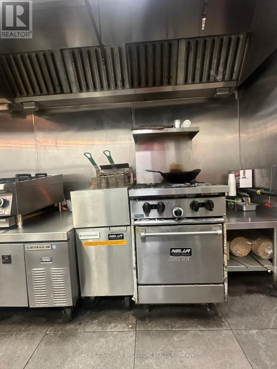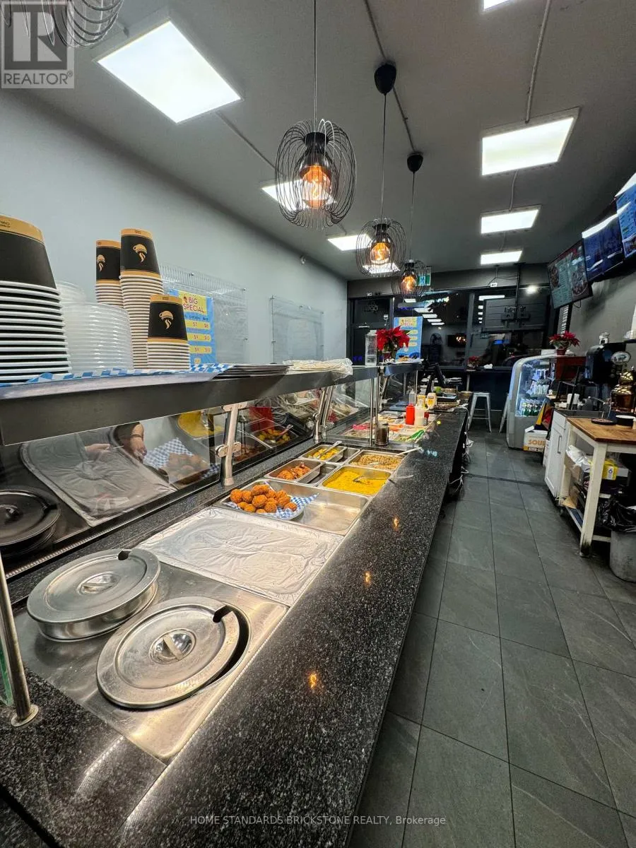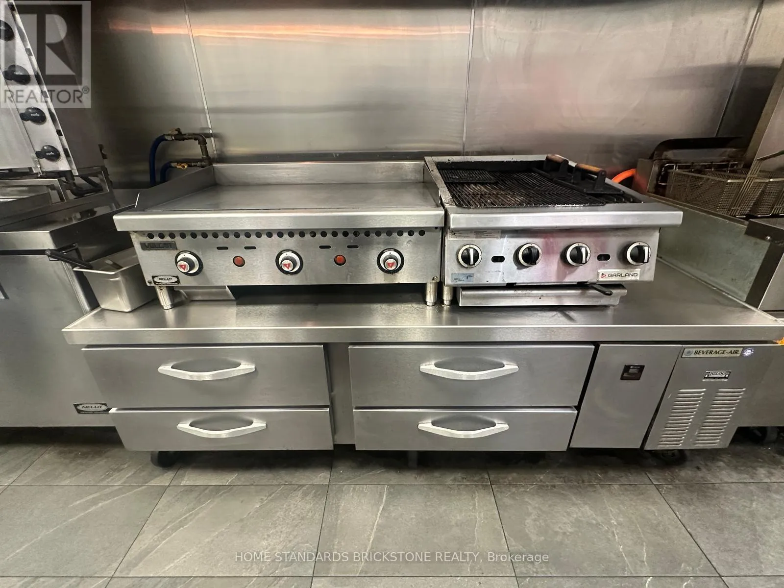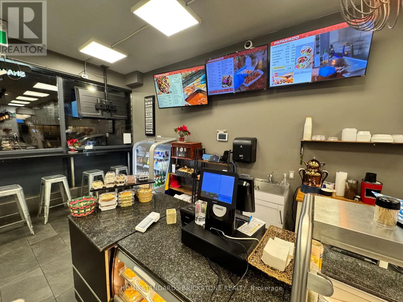 The Queensway & Kipling A prime turnkey restaurant opportunity in a fast-growing corridor. This beautifully set-up restaurant was fully renovated approximately four years ago and has been maintained in excellent condition ever since. The space offers a modern, efficient layout featuring a rare 16-foot commercial hood, shawarma grills, and many more well-kept kitchen components, all in immaculate clean condition, along with a large walk-in fridge and generous prep and storage areas. This provides a turnkey-ready setup that allows a new owner to begin operating immediately. Surround yourself with an established, vibrant food strip featuring Burrito Boyz, K&B Sushi, Scotty Bon's Caribbean Grill, and North of Brooklyn Pizzeria, in a rapidly growing corridor supported by strong surrounding businesses, new high-rise residential developments, and a major Longo's opening directly across the street. This combination drives consistent foot traffic and offers exceptional exposure for fast-food and quick-service restaurant concepts, as well as takeout and delivery operations through Uber Eats and such. The new owners have the flexibility to introduce an entirely new menu and brand, or to continue the existing concept with complete A-to-Z training for a seamless takeover. The infrastructure and equipment support a wide range of culinary operations, making this an adaptable and practical choice for both established operators and those looking to expand. (id:27476)
