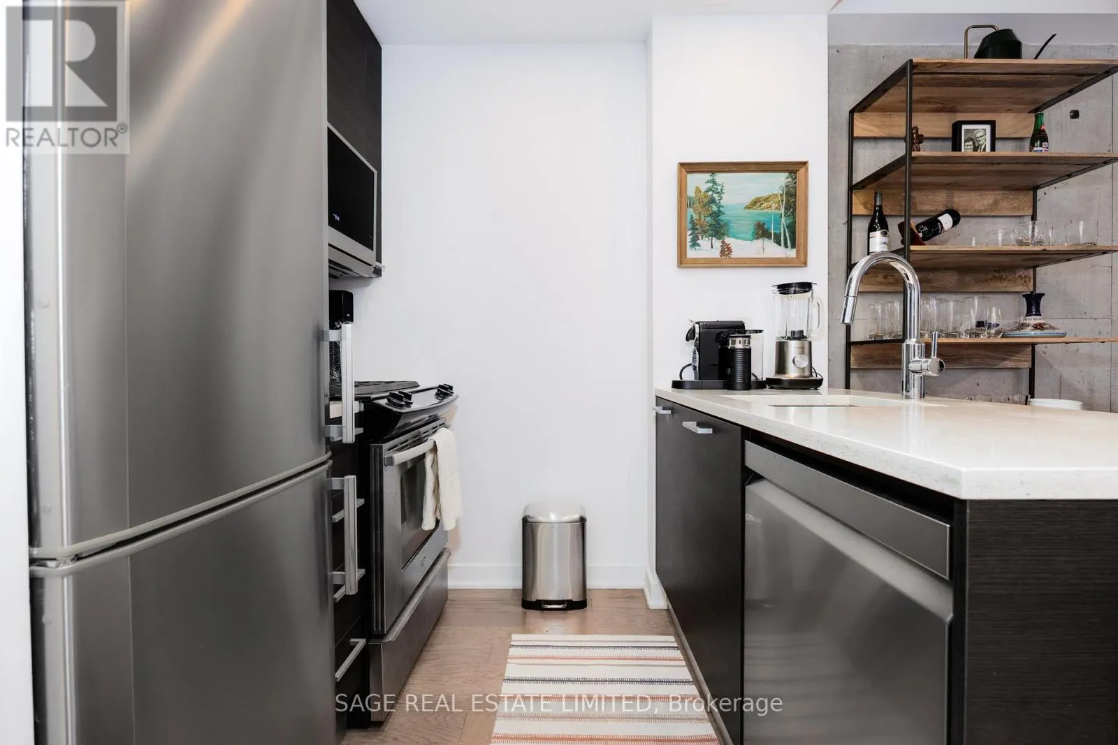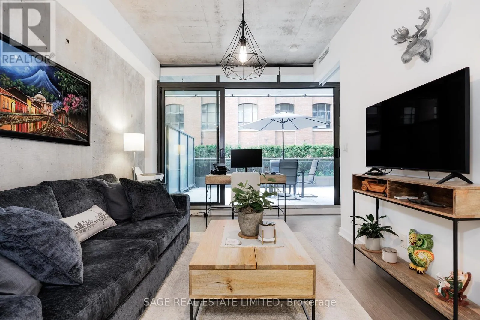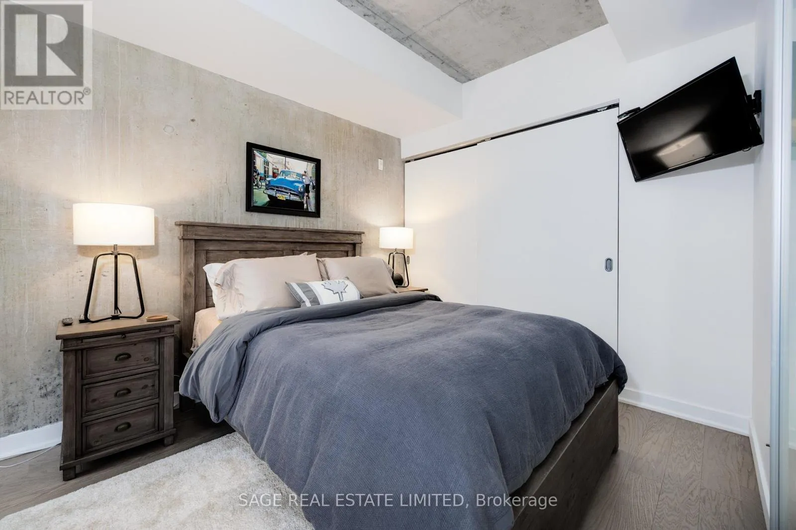 Cross Streets: Between Queen and Eastern. ** Directions: South of Queen on west side of Broadview. Fully furnished, turn-key, rare opportunity. With one of the largest terraces at The Ninety, this impeccable 1br loft has it all. Engineered hardwood floors, concrete ceilings and feature wall, updated kitchen with gas stove, wall-to-wall windows and a huge 250sf south-facing terrace with a direct gas line for a bbq. Great layout with no wasted space and plenty of storage. One underground parking space rounds out the list. All inclusive, including internet. Available February 1st, 1 year minimum. (id:27476)