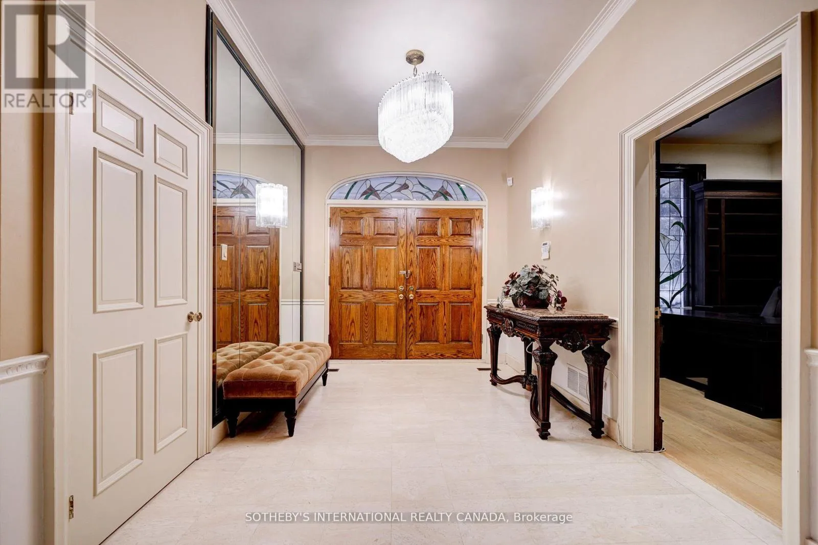 Cross Streets: York Mills / Bayview. ** Directions: NW. Welcome to discover this extraordinary Georgina Revival hallmark. Quietly situated on a private enclave of the prestigious St. Andrew-Windfields neighborhood, this magnificent residence boasts approximately 6,348 sq ft above grade and features five (5) bedrooms, each with a full ensuite upstairs. The expansive central layout announces a formal entrance and graceful symmetry. Tasteful architectural refinements and recent upgrades throughout. An elegant circular stairwell, European oak panelling, splendid mirror walls, hand crafted vanities, and intricate beveled lead designs all mingling to create artistic and sensational aroma for the home. The main kitchen is equipped with a secondary kitchenette, offering a variety of cuisine options. Two sets of appliances plus a freezer in the lower level are all included. A wealth of sash windows and glass entrances, thoughtfully proportioned to provide abundant natural light. L-shape courtyard, lash backyard, and ample side yard provide a high level of privacy and comfort for garden gathering and family relaxation. A spectacular underground multi-purpose sport court and enormous game room is well-loved for year-round recreational activities. Extra large three-car garage, six additional ground parking spaces, and a basketball stand conveniently appointed at the north end of the building. Hot Water Tank owned. Partially furnished. The entire property and furniture presented are included, with the exception of the covered indoor pool wing, which is locked for safety. The location features a perfect proximity to top public and private schools, Granite Club, Sunnybrook Hospital, Hwy 401, golf courses, fine dinings and upscale shoppings. 27 Junewood Cres proudly enhances this exclusive community which is known for its sophisticated executive living and unparalleled social connectivity. (id:27476)