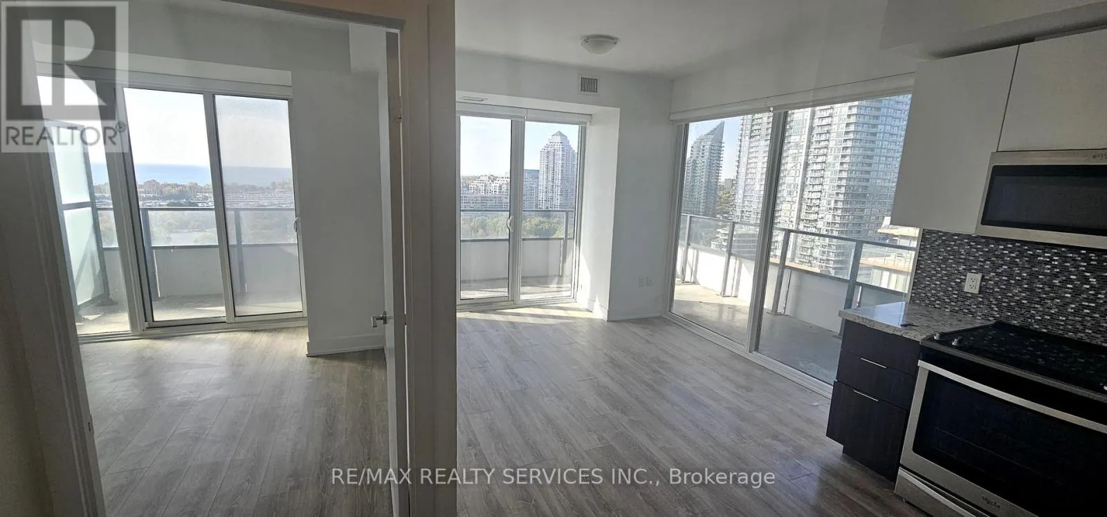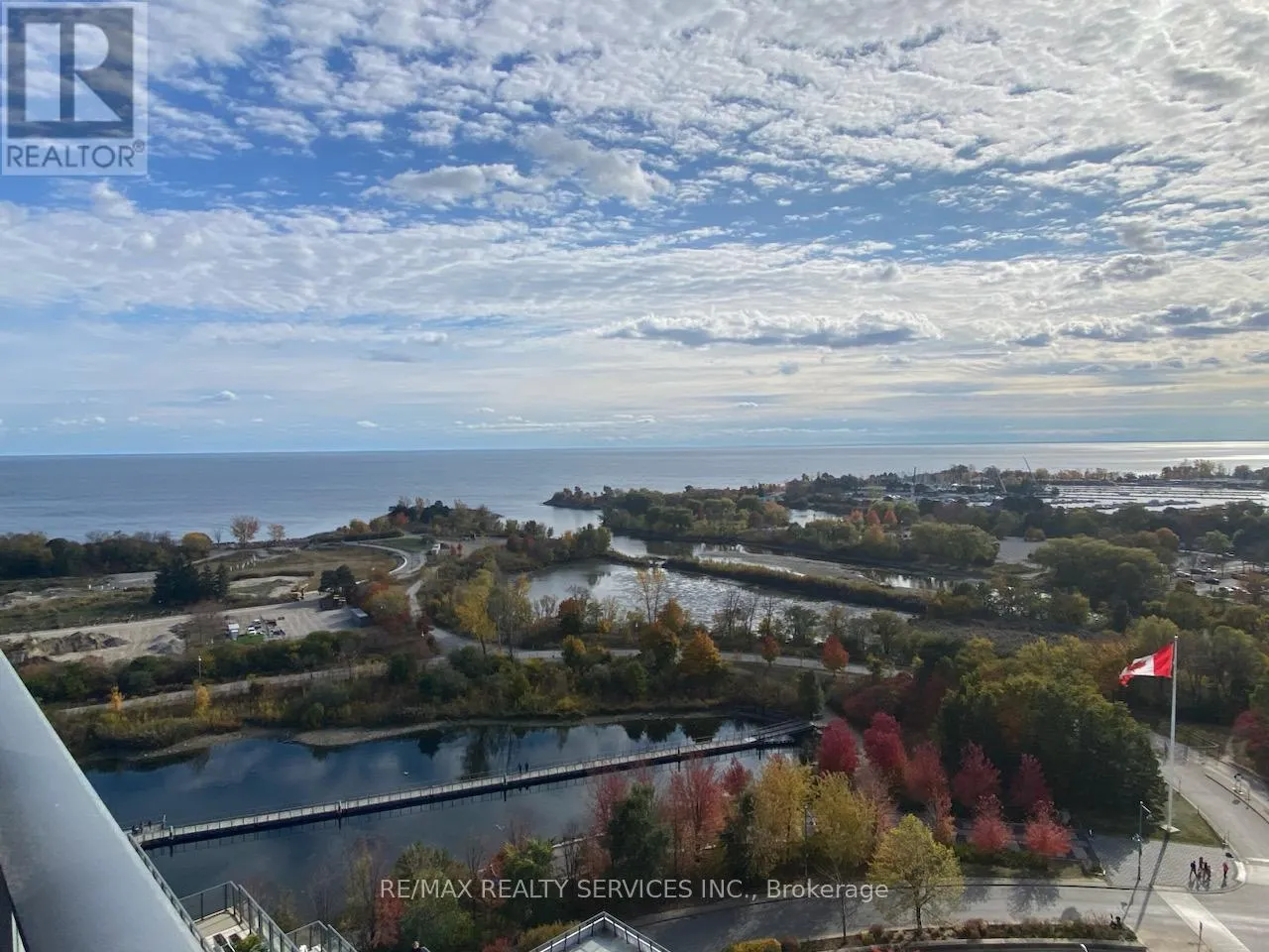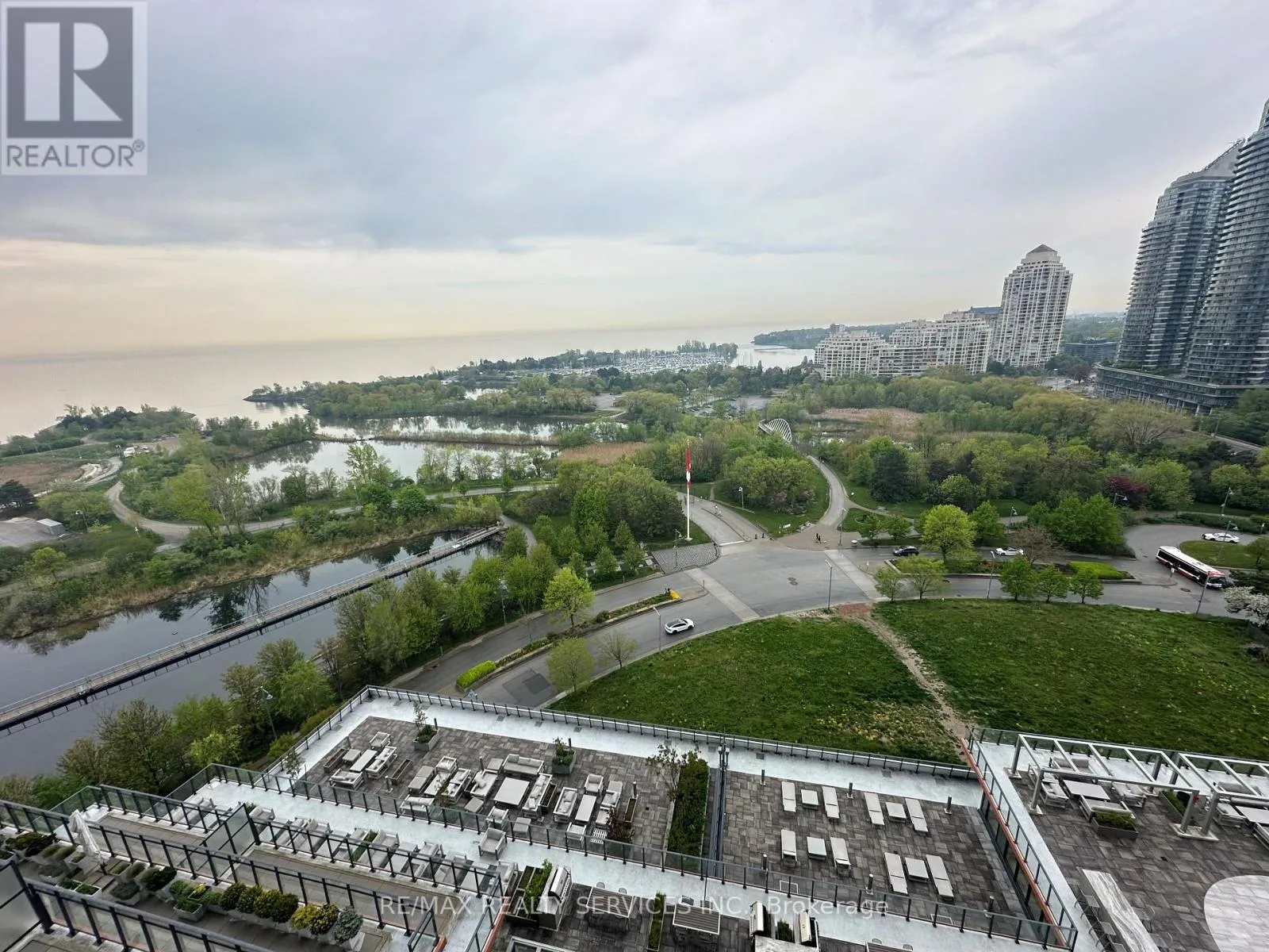 Parklawn & Lakeshore Waterfront Resort Style living in Luxurious 2 bedrooms corner unit with walkout to wrap around balcony. 9 ft smooth ceilings, engineered wood floors, quartz counter tops, floor to ceiling windows. Modern kitchen 5 star amenities w/spectacular lake Views include salt water pool, sauna, gym, yoga, & pilates studio, terrace, BBQ, party lounge, theater room, guest suites, walk to lake. Mins to transit, downtown & Hwys. (id:27476)