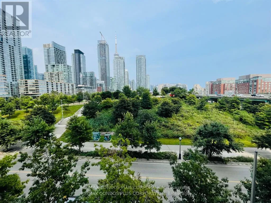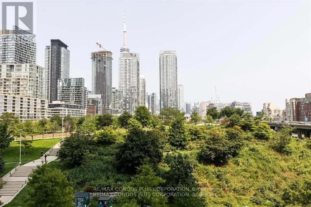 Fort York / Bathurst A Stunning Functional Suite In Downtown Toronto Overlooks 8-Acre Canoe Landing Park and Terry Fox Jogging Track. Enjoy a view of CN Tower from your own balcony. 828 Sf living space Including 61 Sf Covered Balcony. Walk To Rogers Center, Cn Tower, Ripley's Aquarium, Lake Ontario, King St Entertainment District, Island Airport. Loblaws, Shoppers Drug Mart, Tim Hortons, Public Library, Community Centre, Daycare, 2 schools, soccer field just steps away. TTC streetcar to Union Station & CNE. One-of-a-kind trendy "Stackt" market place nearby. Large Den with door and closet used as 2nd bedroom from Day 1. (id:27476)