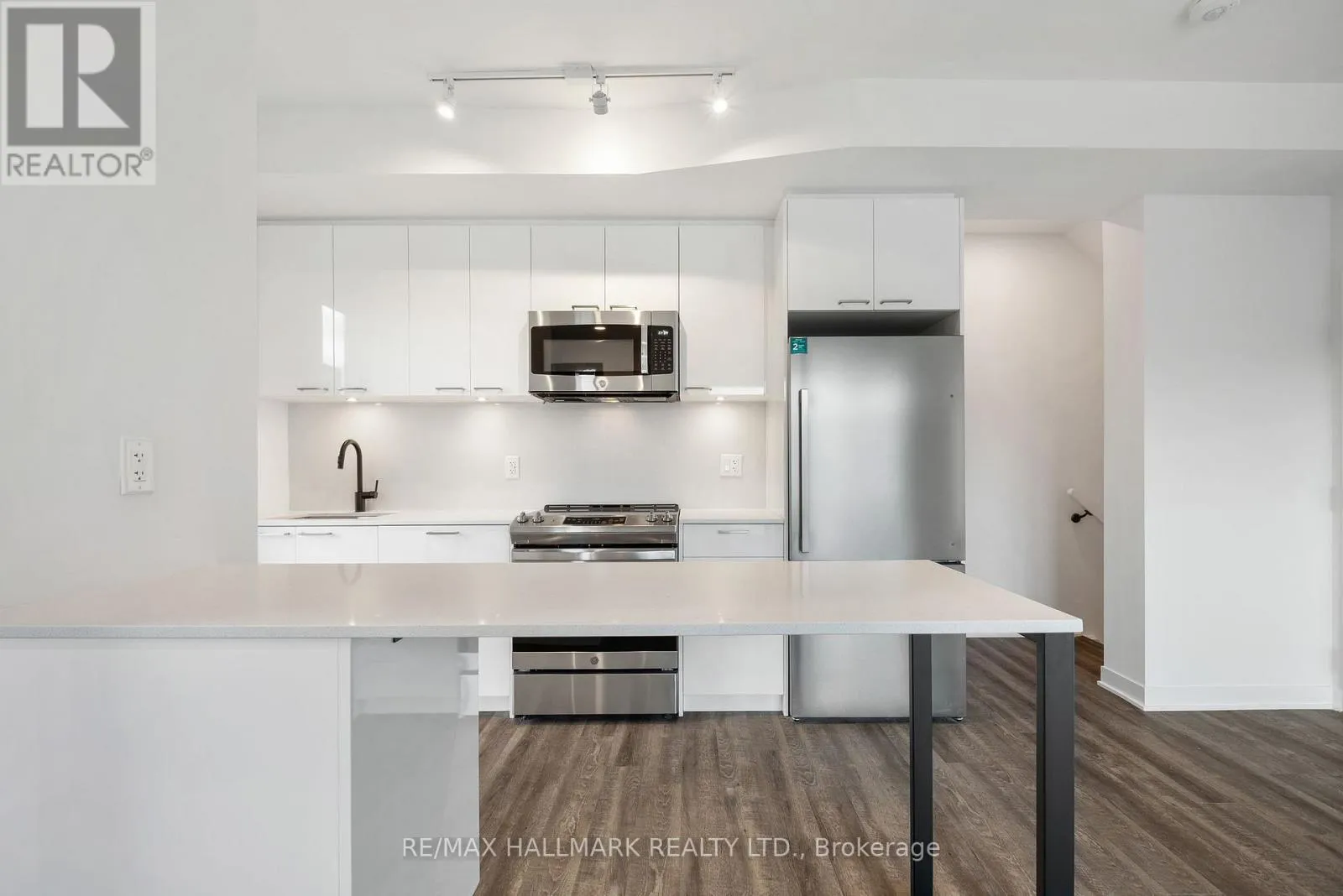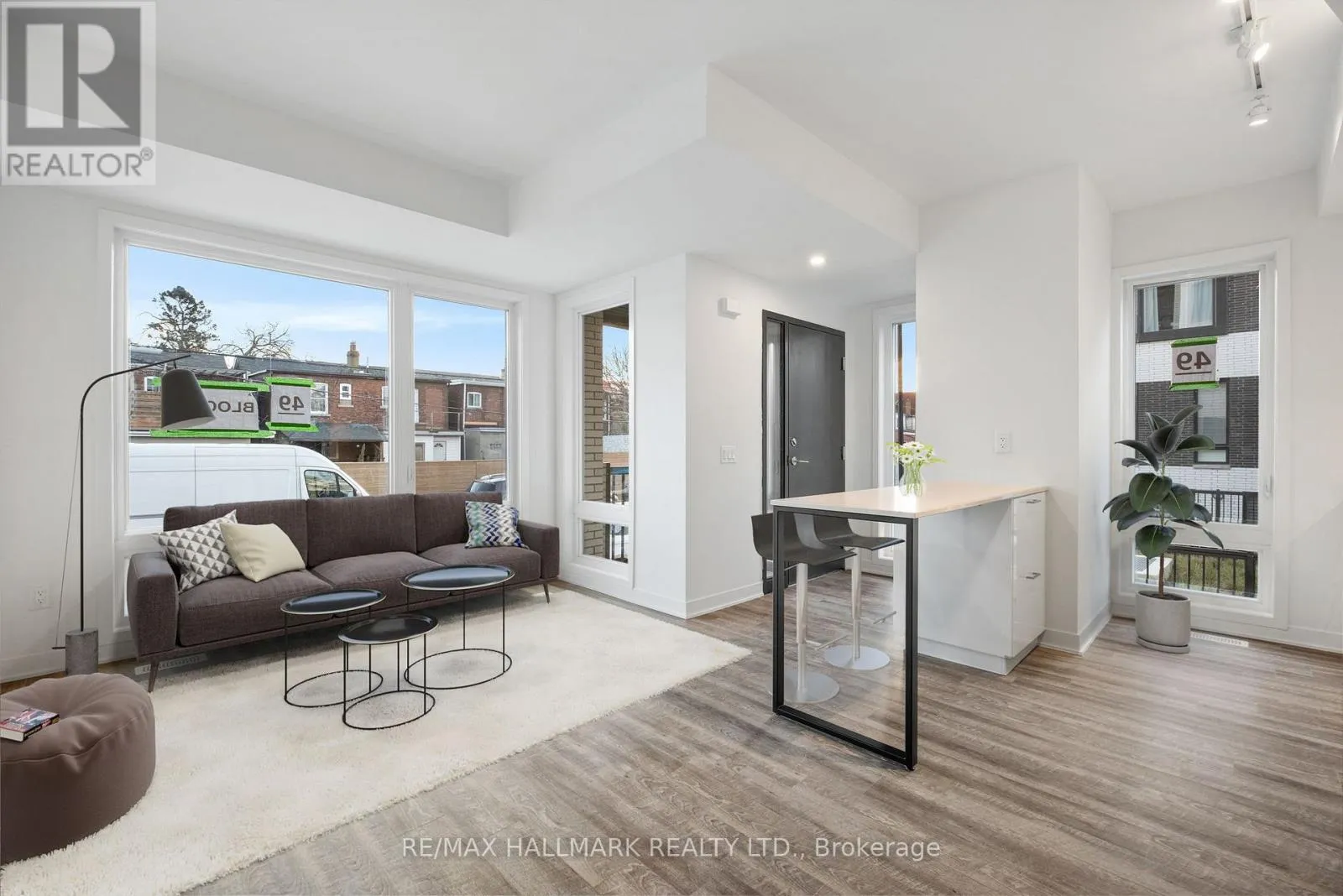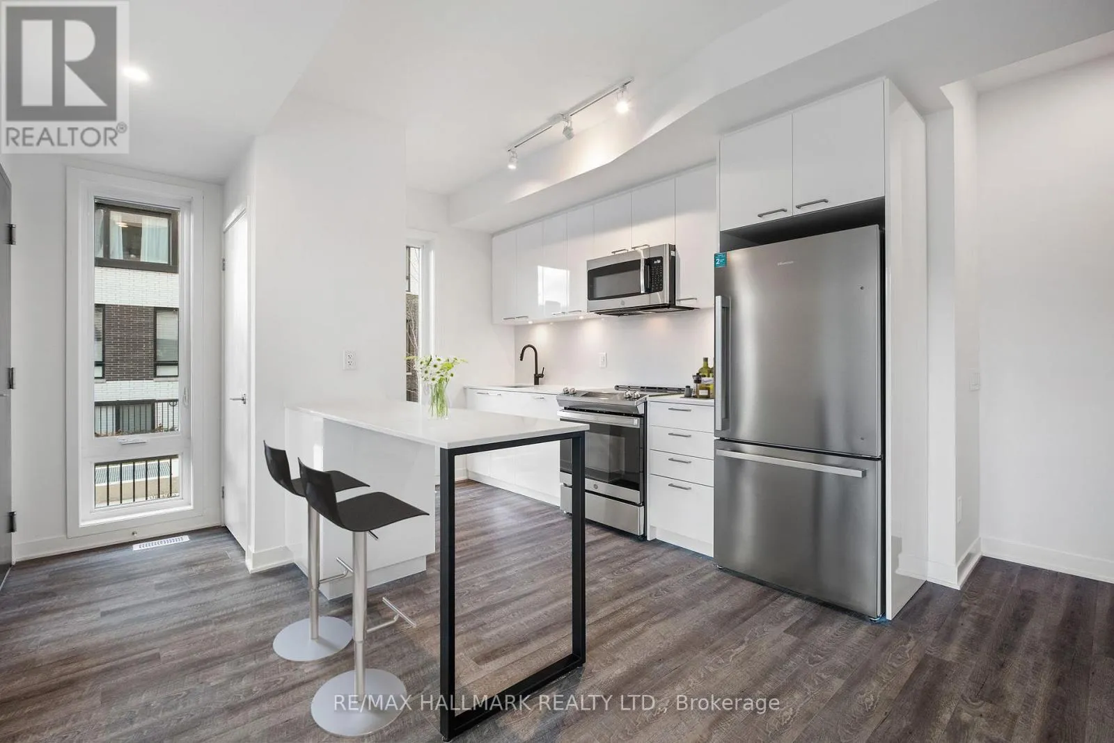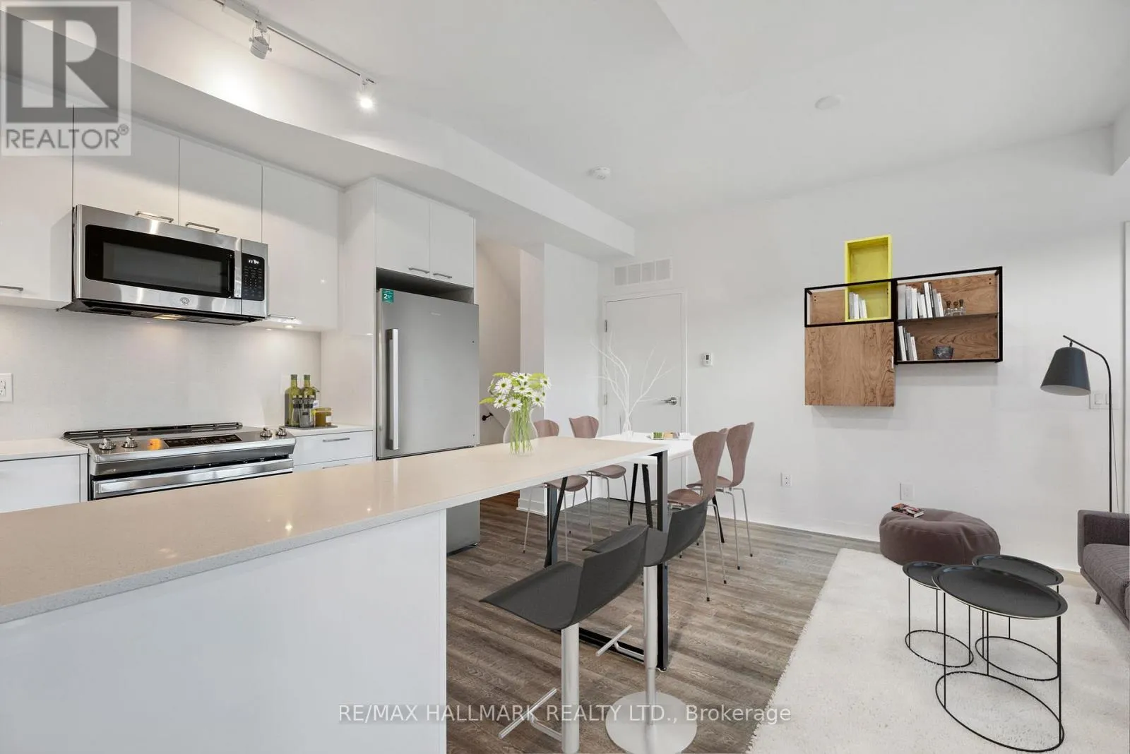 St. Clair / Old Weston Rd Welcome to this bright modern end unit townhouse, tucked away on a quiet, newly landscaped street. The open-concept living and dining area is filled with natural light from windows on two sides, overlooking a modern galley-style kitchen with new appliances and 9' ceilings. Featuring three spacious bedrooms with plenty of closet space, private 116 sqft. South-facing patio accessed from outside and inside. Includes access to a fitness centre, lounge, urban garage/workshop, pet spa, and a landscaped courtyard with BBQ. Minutes to the Stockyards, Junction, Corso Italia, restaurants, cafe's, groceries, parks and TTC routes to St. Clair W Station, Dundas West subway, Bloor GO and the UP Express. This home includes a premium parking spot located by the elevator, complete with an EV charger, plus a tandem 11' x 8' storage room. (id:27476)
