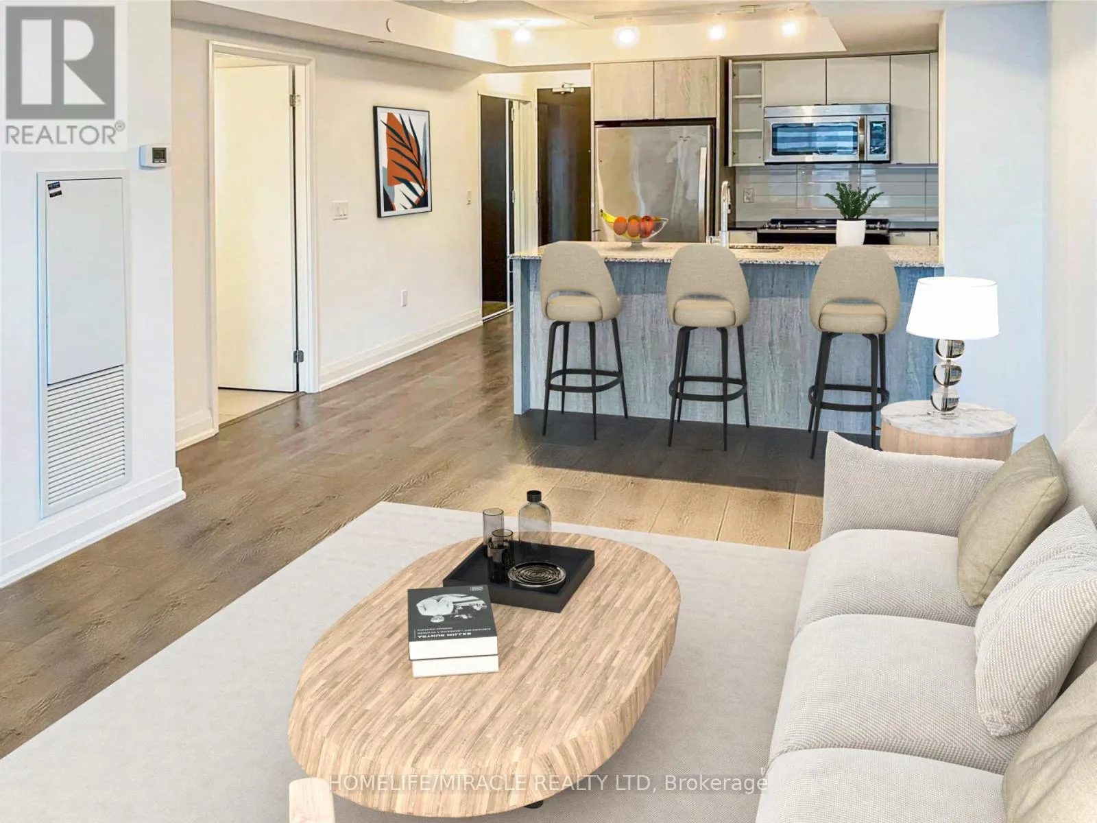 Cross Streets: HWY 427 / Burnhamthorpe. ** Directions: Burnhamthorpe rd / the East Mall. Welcome to Triumph at Valhalla. A well-designed 541 sq ft 1 bedroom condo on the 8th floor with north exposure overlooking the tranquil courtyard, offering excellent value in Etobicoke. This bright and functional suite features an open-concept layout with a modern kitchen equipped with stainless steel appliances, granite countertops, and ample cabinetry, flowing seamlessly into the living area with a Juliette balcony that brings in natural light and fresh air. The spacious bedroom offers excellent closet space, complemented by a contemporary 4-piece bathroom with a floating vanity and modern finishes. Stacked laundry in the unit and one owned conveniently located underground parking space provide everyday convenience. Residents enjoy resort-style amenities including a fitness centre, indoor pool, sauna, theatre room, party rooms, BBQ terrace, guest suites, and 24-hour concierge in a professionally managed building. Ideally located just minutes to Sherway Gardens Mall, with quick access to Highways 427, 401 & QEW, TTC transit, Pearson Airport, and downtown Toronto. With strong rental potential, low-maintenance living, and long-term growth appeal, this condo is an excellent opportunity for first-time buyers or investors in one of Toronto's most connected neighbourhoods. (id:27476)