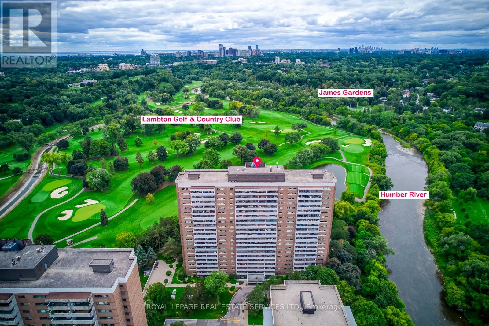 Scarlett Rd & Edenbridge Dr The Lambton Square condominium community consists of four distinct towers, each forming a separate condo corporation with its own dedicated recreation facilities. This condo is ideally situated at 240 Scarlett Rd and offers exceptional access to a wide range of amenities. Public transit is steps away, with multiple bus routes along Scarlett and easy connections to Runnymede Station on the Bloor subway line. Daily conveniences are nearby: grocery stores, European bakeries, and local shops. For nature lovers, the building backs onto the Humber River trails and is a short stroll to James Gardens-perfect for walking, cycling, or simply enjoying the outdoors. Golf enthusiasts will appreciate having the prestigious Lambton Golf & Country Club next door. Unit 405 offers exceptional value for those seeking spacious & functional living. The unit offers a family-sized kitchen with a cozy breakfast nook, a proper dining room, and a generous sunken living room with an electric fireplace. When you step out onto the oversized private balcony, the first thing you notice is the Humber River flowing just right there. Surrounded by mature trees, it feels less like a condo and more like your own private home. Beautiful flooring runs through the main areas, with wood parquet in the bedrooms. The primary bedroom includes a large closet and a 4-piece ensuite. The second bedroom works beautifully as a guest room or home office. Both bathrooms are 4-piece, featuring built-in cabinetry, a shower enclosure, and a soaker tub. An ensuite laundry room with additional storage completes this well-designed space. The building offers top-tier amenities: outdoor pool, fitness centre, sauna, party/meeting rooms, car wash bay & bike storage. Whether you're looking to downsize or upsize into space that finally feels like home, you may want to consider this property. Relax by the pool, stroll or cycle the trails, or hit the gym - lifestyle, comfort, and value all in one place. (id:27476)