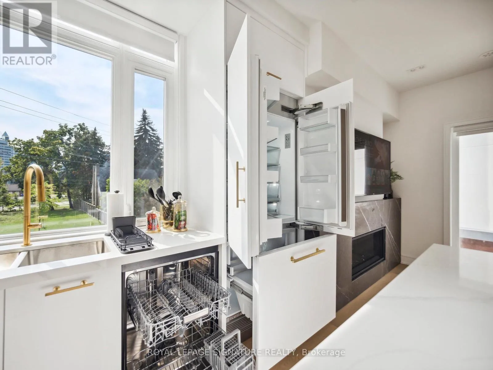 Yonge-Sheppard/Finch Indulge in the pinnacle of luxury living within this newly constructed townhouse nestled in the highly coveted Willowdale neighborhood. Boasting a generous 2600 sq ft floor plan, the largest in the complex, this corner unit features an elevator and abundant natural light, making it a showcase of exceptional craftsmanship and unmatched elegance spread over three expansive levels.Step inside to discover a harmonious fusion of sophistication and comfort, defined by premium features such as rich hardwood flooring, a state-of-the-art white kitchen replete with quartz countertops and luxury appliances, and a charming gas fireplace that adds warmth to theambiance.Experience tranquility in each of the five generously sized bedrooms, with the primary suite serving as a private retreat complete with a dual vanity, a luxurious soaker tub, and a spacious standing shower.Outside, the picturesque patio beckons with awe-inspiring vistas of the surrounding nature and the mesmerizing city skyline. (id:27476)