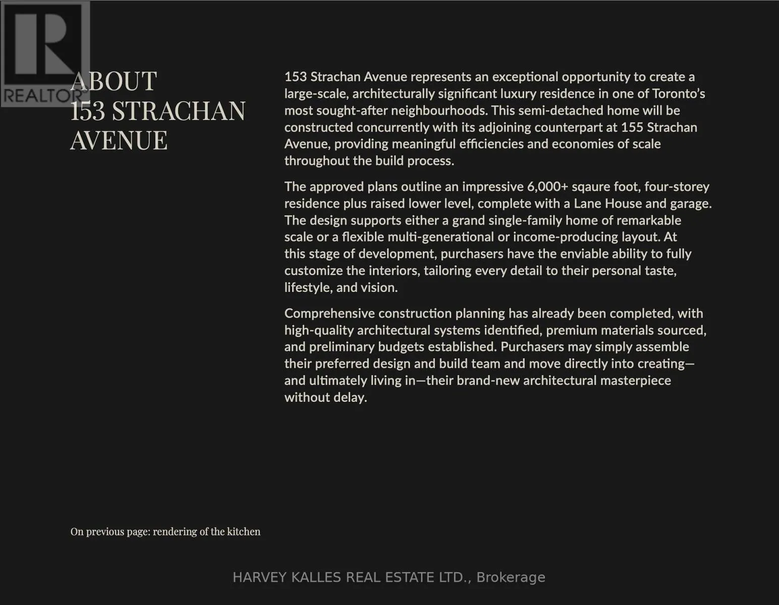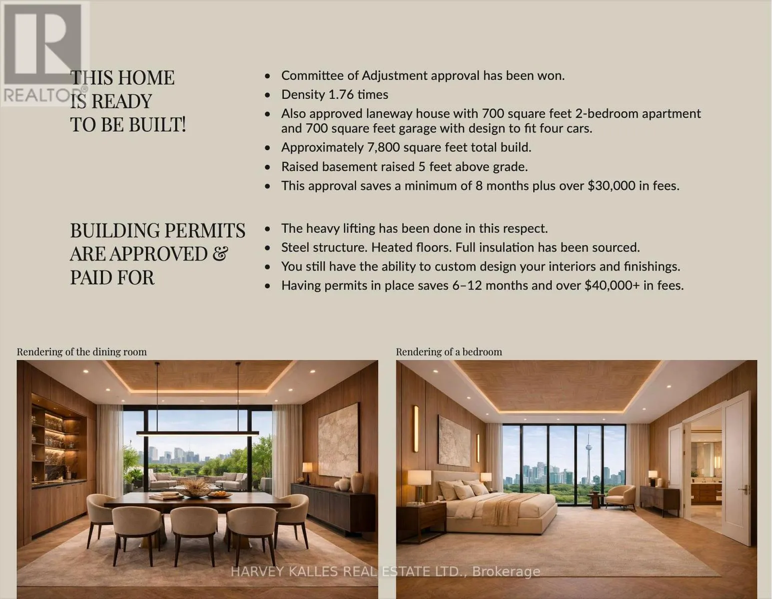 Cross Streets: Queen / Strachan. ** Directions: Between King & Queen. Presenting a once-in-a-generation opportunity in the heart of Downtown Toronto: Permits in place to build the tallest home in all of Toronto at 18 meters (59 feet)! This is the future home of an architectural landmark that will redefine luxury, exclusivity, and urban stature. With unprecedented approvals for a four-storey, five-level freehold residence featuring voluminous 11.5-foot ceilings on every level, along with a sixth-level rooftop terrace offering spectacular 360-degree views of the Downtown skyline and Trinity-Bellwoods Park, this site provides an unparalleled platform for creating a world-class statement of scale, design excellence, and global prestige. An opportunity like this is exceptionally rare -- a true unicorn -- and genuinely unrepeatable! Set on a 24 x 120 foot lot with a wide rear lane, this property includes approved permits for a total build of approximately 7,800SF. Plus potential for a 1,000SF rooftop terrace. The main residence offers approximately 5,200SF above grade across four floors, a 1,340SF raised lower level with dramatic entry with double height ceilings, a 700 SF second-level Lane House, and a 700SF pull-through garage with parking for up to four vehicles. Construction can begin immediately, with full plans and budgeting available and established builders standing bye. The approved design supports a flexibility of uses including a 2,680SF + 1,000SF rooftop multi-level owner's residence with elevator access, alongside separate 1,340SF and 2,680SF suites ideal for multi-generational living or strong rental income potential. Structural steel and concrete construction with heated floor throughout-rare in residential builds-provides exceptional sound, fire, and vibration performance. Located beside $7,000,000+ homes and minutes to Trinity-Bellwoods Park, Ossington, Queen West, King West, the Financial District, Lake Ontario, the Gardiner, and Billy Bishop Airport. See feature sheet for further details. (id:27476)