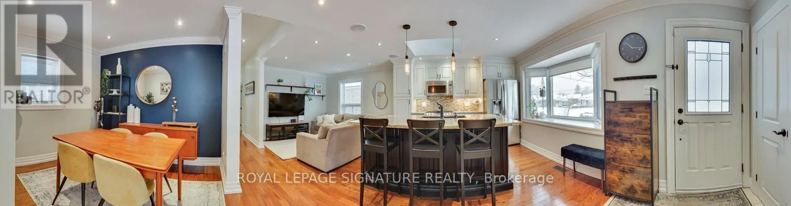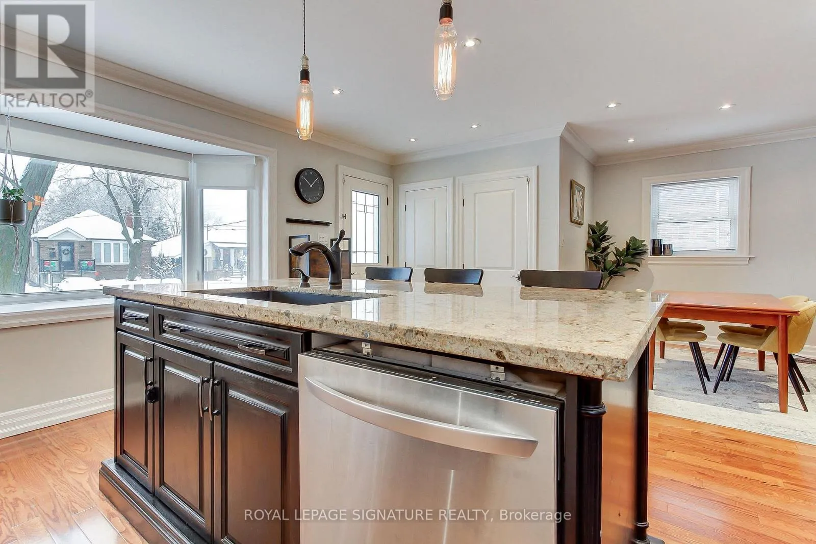 Warden Ave/Lawrence Ave E Welcome to this 3+1 bedroom detached bungalow located at 9 Rosemarie Drive, in the heart of Wexford, Scarborough.Step inside and feel instantly at home. The spacious open-concept main floor flows beautifully, showcasing rich hardwood floors, elegant crown moulding, and recessed pot lights throughout. A generous living and dining room provides the perfect setting for both formal gatherings and everyday relaxation.The heart of the home is the gorgeous eat-in kitchen, bathed in natural light from a large skylight and bay window. A sprawling center island with breakfast bar, stainless steel appliances (including a coveted gas stove), sleek pendant lighting, and ample cabinetry make this kitchen as functional as it is beautiful.Three well-proportioned bedrooms grace the main floor, including a tranquil primary bedroom with direct walkout to the sunny rear deck.The fully finished lower level adds incredible living space with a warm and inviting recreation room perfect for movie nights or a play area for the kids, a spacious fourth bedroom, a 4-piece bathroom and a stacked washer and dryer in the laundry area. A separate side entrance provides easy access and added flexibility.Outside, enjoy summer barbecues on the expansive deck overlooking the fully fenced backyard. Single attached garage plus private drive with parking for multiple cars.Perfectly located just minutes to top schools, parks, restaurants, Costco, Walmart, Parkway Mall, TTC, and quick access to the DVP and 401.Move-in ready, flooded with light, and brimming with updates-this charming bungalow truly checks every box. Come see it before it's gone! (id:27476)