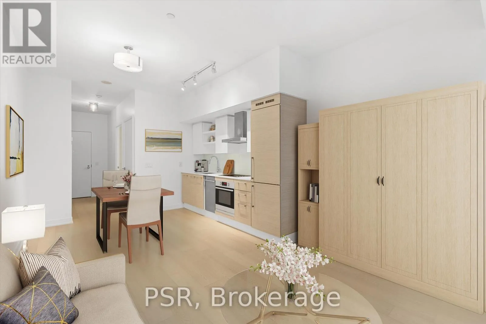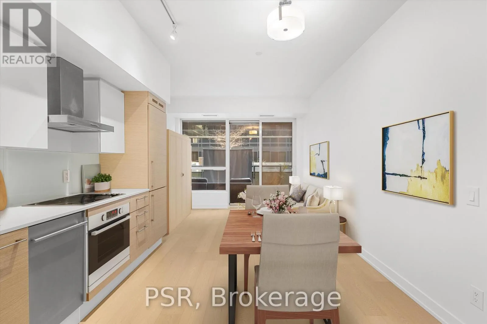 King Street West & Shaw Street Refined and fully refreshed studio residence at the highly regarded DNA3 Condos, set in the heart of King West. This thoughtfully designed suite showcases floor-to-ceiling windows, brand new wide-plank vinyl flooring, fresh paint throughout, and new contemporary window coverings. The sleek, modern kitchen is outfitted with a new Fulgor Milano wall oven and cooktop, delivering both style and performance.A private terrace extends the living space outdoors, offering an ideal setting for entertaining or quiet moments. Residents of DNA3 enjoy premium amenities including a fully equipped fitness centre, rain room, private movie theatre, rooftop terrace with BBQs, party and entertainment lounge, concierge service, and visitor parking.Street-level retail provides everyday convenience with a grocery store and Tim Hortons at your doorstep. Exceptional connectivity with public transit immediately outside the building, seamless access to major highways, Liberty Village, and the downtown core. Well-managed building with low maintenance fees.An excellent opportunity for a discerning end-user or investor seeking a sophisticated urban lifestyle in one of Toronto's most dynamic neighbourhoods. (id:27476)