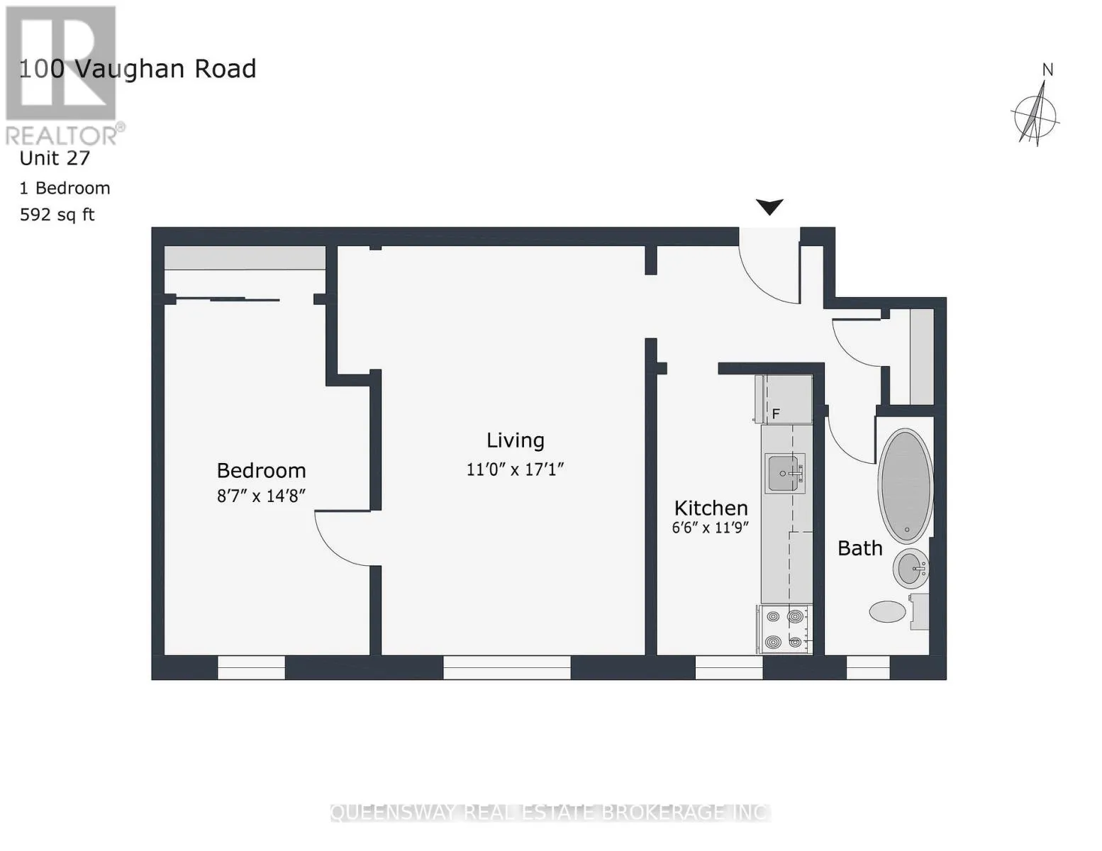 St. Clair Avenue West & Vaughan Road Classic Charm Meets Comfortable Midtown Living. Located in the sought-after Humewood-Cedar & St. Clair West Village, this spacious Art Deco-inspired one-bedroom offers approximately 592 sq. ft. of thoughtfully laid-out living space, freshly painted and move-in ready. Original dark hardwood floors bring warmth and timeless appeal throughout the home. The generous living room is designed to accommodate both living and dining areas with ease and includes a versatile closet buffet, perfect for entertaining or creating a functional work-from-home setup. A large window fills the space with natural light, while an automatic, remote-controlled ceiling fan adds year-round comfort. A separate kitchen features a breakfast nook and comes equipped with a fridge and stove, providing excellent functionality without encroaching on the living space. The spacious bedroom includes a large sliding-door closet and its own oversized window, while the clean 3-piece bathroom is highlighted by a distinctive cast-iron tub that adds a touch of vintage character. Additional conveniences include dedicated entry storage, shared on-site laundry, and heat and water included in the lawful rent-making this an ideal choice for young professionals seeking space, style, and value. Just steps from boutique shops, major retailers, fine dining, grocery stores, parks, direct subway access, Casa Loma, and St. Michael's College, this home offers a perfect balance of location, character, and affordability. Freshly updated. Well located. Ready to enjoy. (id:27476)