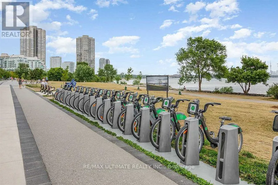 Cross Streets: lakeshore/parklawn. ** Directions: north. Welcome to Lago...Its black and white structure, recognizable from a distance and as impressive when you walk thru the elegant, ultra modern lobby. State of the arts amenities extensively equipped gym, yoga room, indoor pool, sauna, elegant fully equipped party room, guest rooms and the most efficient and courteous staff. The stunning one bedroom +den follows thru with the elegance of the building..with many upgrades and elegant touches. Open concept, modern design, with wall to wall windows in both living room and bedroom. customized Island will comfortably sit 4 people and offers extra storage space. The bedroom has a w/i closet ..Plus...2 custom mirrored closets..the unit also offers an extra storage locker (2)...what else could you possibly ask for!!!!!! perhaps...walk out to cafes, gelaterias, high end eateries, beaches, miles of scenic trails, breathtaking TO skyline TRULY RESORT STYLE LIVING!!!!!! (id:27476)
