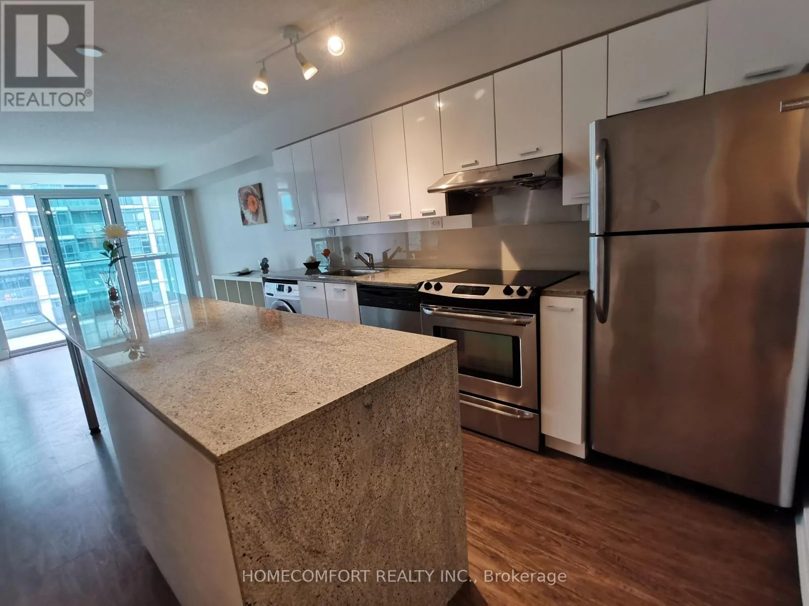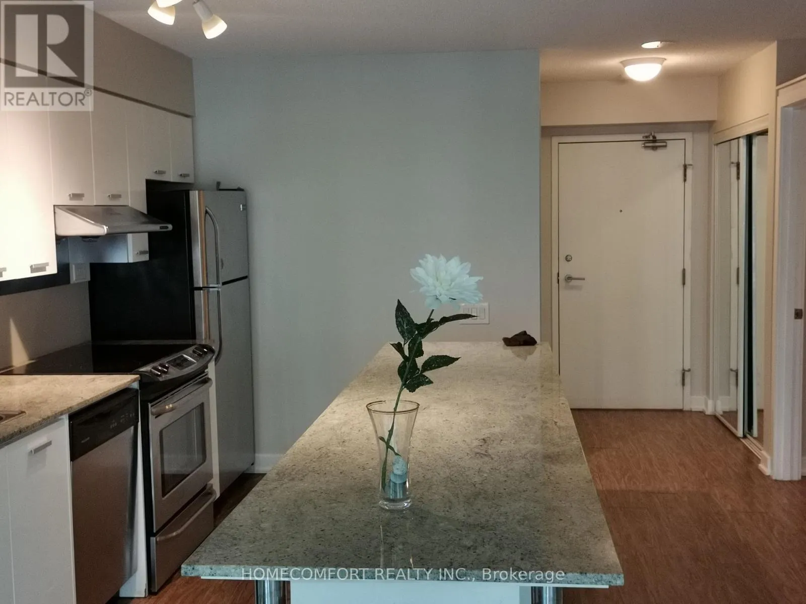 Cross Streets: Sheppard And Leslie. ** Directions: south west corner of Sheppard and Leslie. Fantastic Location in the Heart of North York! Spacious and bright 1 Bedroom + Den suite in the highly sought-after Discovery Condos. The enclosed den with door is ideal as a second bedroom or home office. Features a modern upgraded kitchen with large granite centre island, open-concept living space, and south-facing exposure overlooking the quiet courtyard. Steps to TTC subway, GO transit, parks, shops and everyday conveniences including IKEA, Canadian Tire, McDonald's, North York General Hospital and more. Minutes to Hwy 401/404 for easy commuting. Not furnished unit . (id:27476)