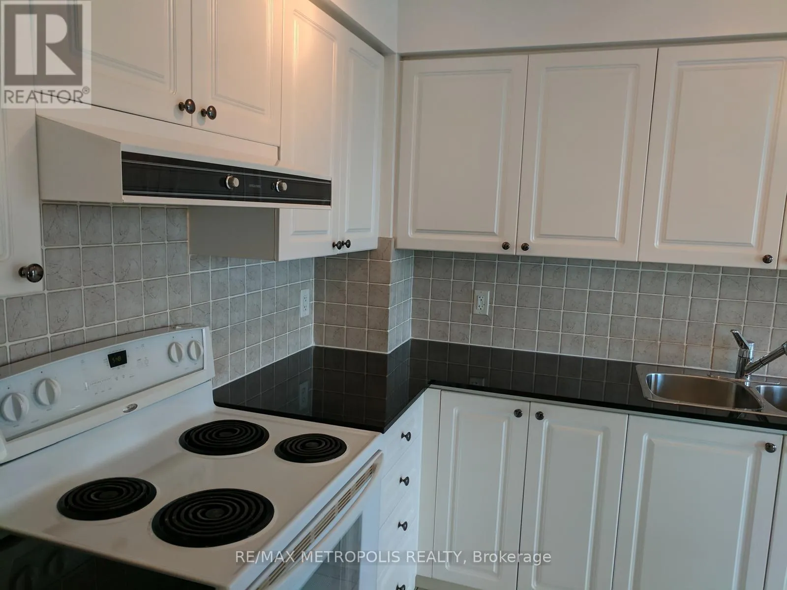 Brimley/Ellesmere Spacious and well-appointed condo offering a functional 2-bedroom plus den layout with approximately 1,027 sq. ft. of thoughtfully designed living space. Open-concept living and dining areas feature laminate flooring and large windows that invite natural light throughout. The eat-in kitchen is equipped with granite countertops and a walk-out to an open balcony, ideal for enjoying city views. The primary bedroom includes a walk-in closet and a private 4-piece ensuite, while the second bedroom offers generous closet space and a large window. A versatile open-concept den provides flexibility for a home office or additional living area. Two full bathrooms and ensuite laundry add everyday convenience. Enjoy southwest exposure, one owned parking space, and access to a well-managed building with concierge service and a full suite of amenities, including an indoor pool, gym, sauna, party/meeting room, and rooftop deck/garden. Located in a transit-accessible area close to parks, community centres, hospitals, and everyday amenities. A comfortable and practical place to call home in a connected urban setting. (id:27476)