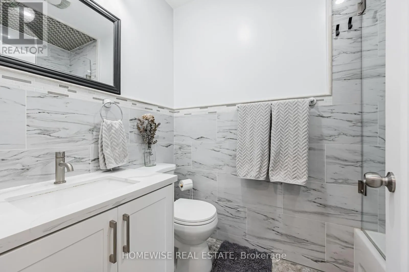 Cross Streets: Dufferin and Eglinton. ** Directions: Just north of Eglinton, East of Dufferin. This fully renovated main-floor two-bedroom suite boasts a bright and functional layout. Travertine-style tile and hardwood flooring are featured throughout. The unit includes two large bedrooms with ample custom-made cabinetry, including his and hers closets in the primary bedroom. The modern bathroom features a tub/shower combination and quartz countertops. The updated kitchen is equipped with full-sized appliances and modern finishes, while the convenience of in-suite laundry adds to the unit's functionality. The property also includes a double car garage, with one parking space included in the rental price and an additional space available for $100 per month. Ideal for those seeking comfort and accessibility, this unit is conveniently located near transit, shops, and everyday amenities. Utilities are extra at a flat rate of $150 per month. (id:27476)