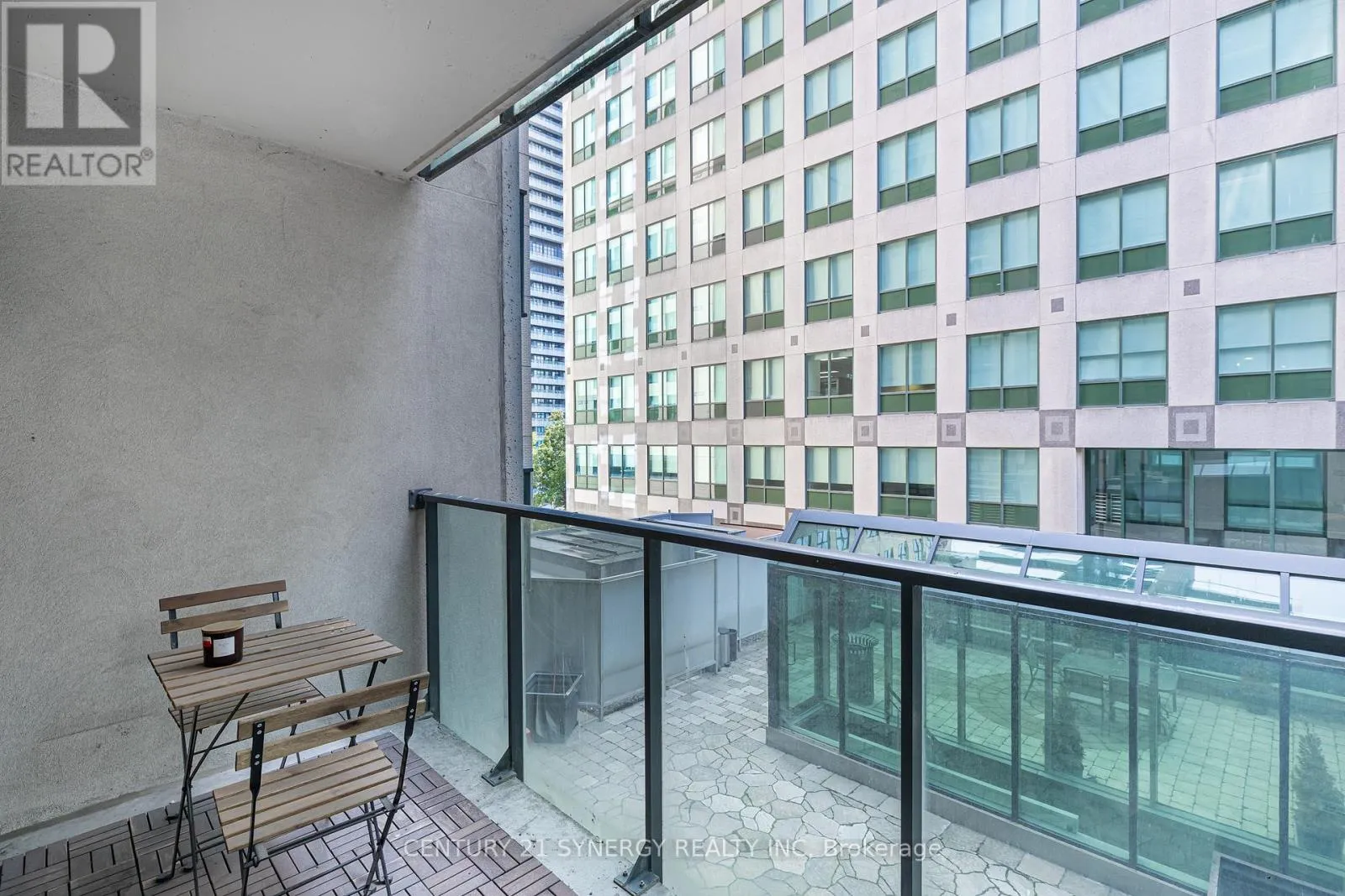 Wellington and Blue Jay Way Ideally situated just steps from Toronto's vibrant Entertainment and Financial Districts, this rarely offered corner suite presents an exceptional opportunity in a well-maintained boutique mid-rise building. Offering approximately 830 sq. ft. of thoughtfully designed living space, this meticulously cared-for one-bedroom plus den residence combines functionality, comfort, and timeless style.The spacious and versatile den easily accommodates a second bedroom, home office, or guest retreat, making the layout ideal for today's flexible lifestyle needs. Elegant hardwood and marble flooring extend throughout the suite, while expansive floor-to-ceiling windows flood the interior with natural light and enhance the airy, open feel. Brand-new designer roller blinds add a refined touch while providing both privacy and comfort.The open-concept living and dining area is perfect for everyday living and entertaining, seamlessly flowing out to a private balcony overlooking peaceful terrace views-an ideal setting to unwind in the heart of the city.Offering generous square footage, sophisticated finishes, and an unbeatable downtown location, this rare corner residence is perfectly suited for professionals, investors, or discerning buyers seeking refined urban living just moments from world-class dining, entertainment, transit, and financial hubs. (id:27476)