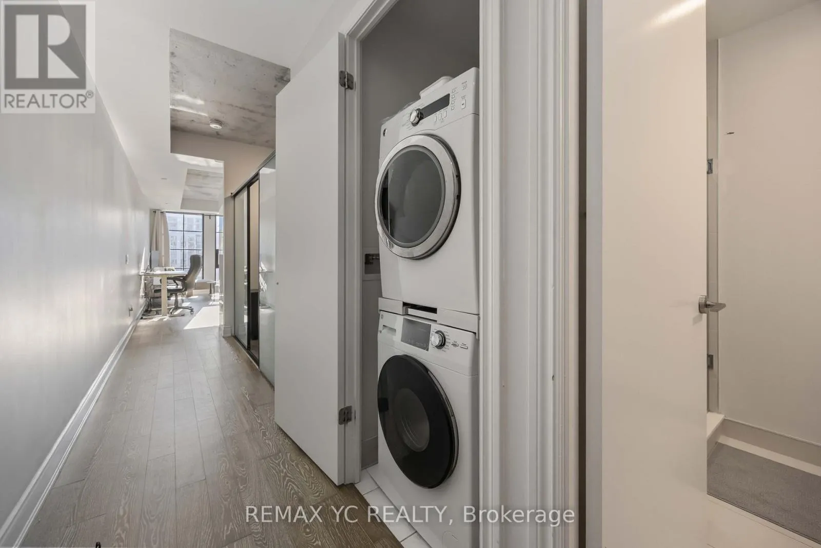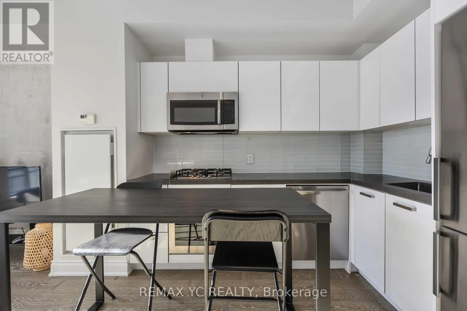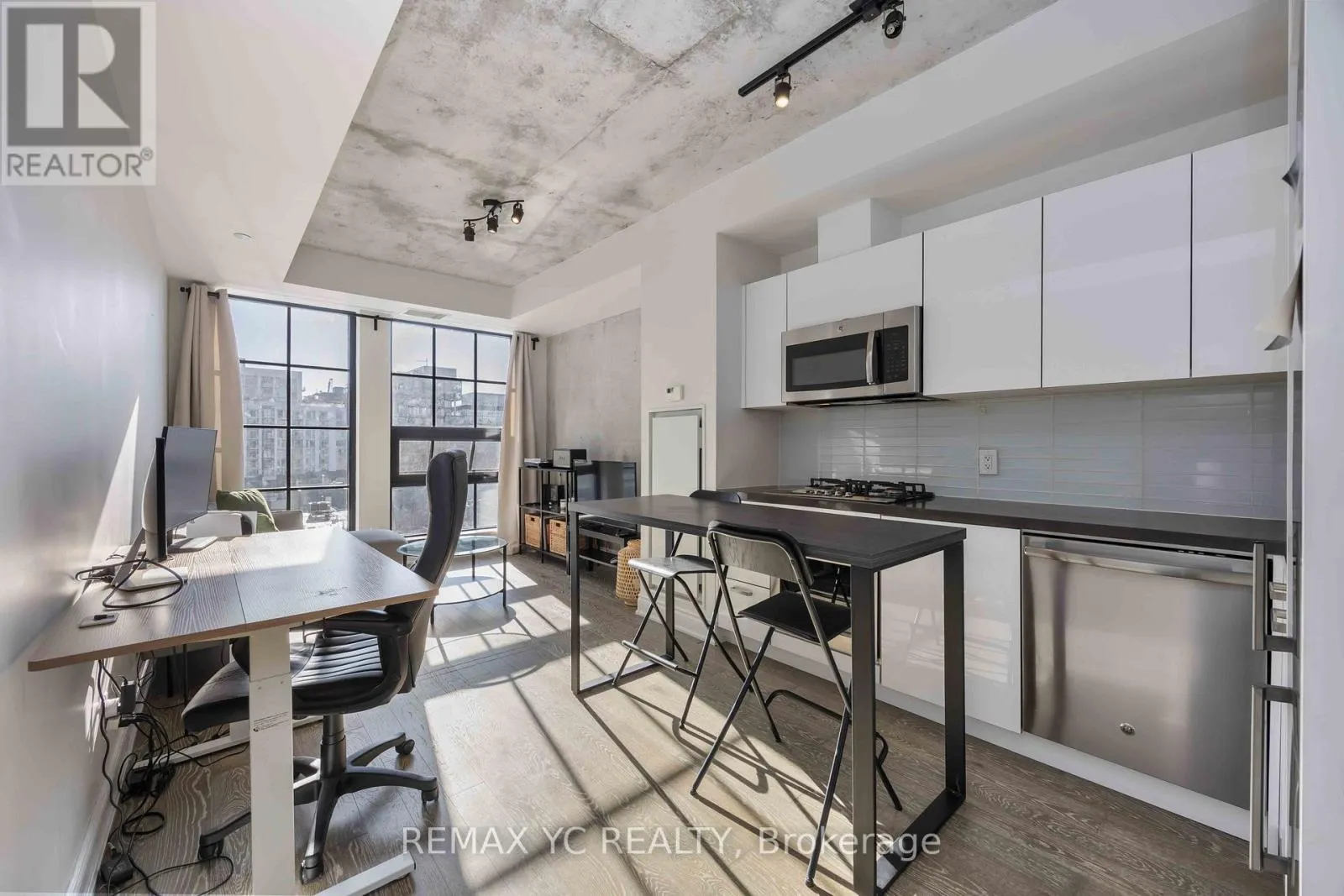 Queen St W / Bathurst Welcome to The Harlowe Lofts! A rare opportunity to live in a true New York Style soft loft in the heart of Toronto's most vibrant neighbourhood. This bright, south-facing suite features 9-ft exposed concrete ceilings, floor-to-ceiling windows, and a spacious open-concept layout filled with natural light. Meticulously maintained with hardwood floors throughout, a modern white kitchen with stainless steel appliances and a gas range, and a generously sized bathroom. One locker included for additional storage. Optional furnishings available upon request, including sofa, bed, kitchen table, and two (2) kitchen stools. Prime location between Queen West and King West, steps to top restaurants, cafés, nightlife, wellness studios, and TTC at the door. 98 Walk Score / 100 Transit Score. Don't miss this opportunity to call this iconic address home. (id:27476)
