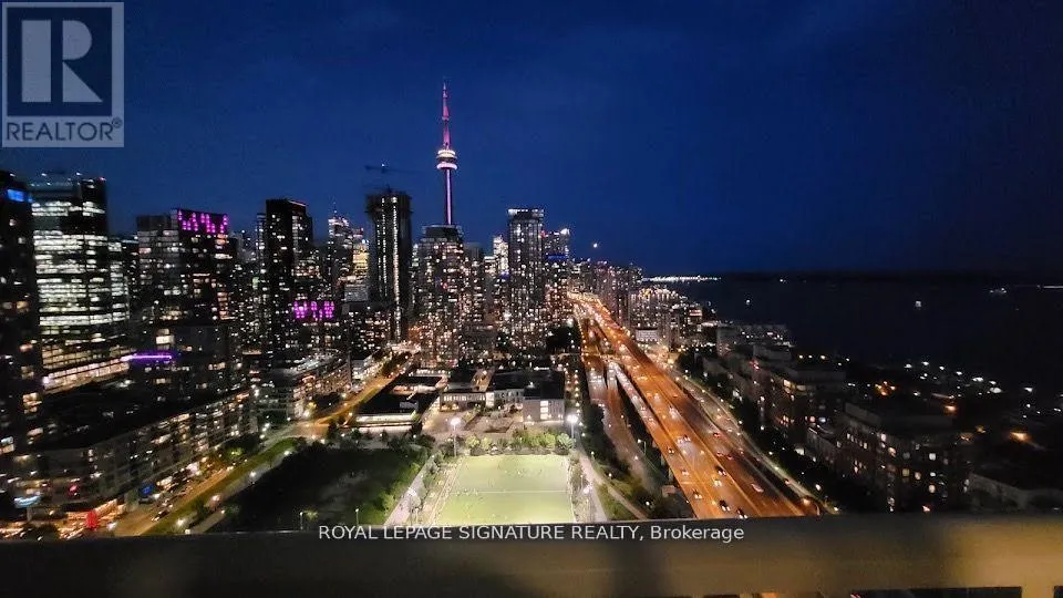 Spadina/Lakeshore Executive 3-Bedroom Corner Suite with Unparalleled Lake Views Experience luxury living in this high-floor premium corner suite at 75 Queens Wharf, where all three bedrooms showcase stunning, unobstructed views of Lake Ontario. Wake up to breath taking water vistas from every room, complemented by bright floor-to-ceiling windows that flood the home with natural light. Enjoy a seamless open-concept kitchen and living area, sleek laminate flooring throughout, and panoramic east-facing city views, including the iconic CN Tower. Building Amenities24/7 concierge & security State-of-the-art fitness centre Indoor swimming pool & sauna Hot tub & steam room Yoga & dance studio Rooftop garden terrace & BBQ area Theatre/media room Party room & private dining lounge Guest suites for visiting friends and family Children's playroom & games room Business centre & study/library Location Perks Perfectly situated in Toronto's vibrant waterfront community, you're just steps to TTC transit, Loblaws supermarket, restaurants, coffee shops, banks, and the waterfront trail. Easy access to the Gardiner Expressway, DVP, and major highways makes commuting simple, while Toronto Pearson Airport is within reach. Entertainment, sports, and cultural attractions are all nearby, from Scotiabank Arena to the Rogers Centre. Extras Parking & locker included In-suite washer & dryer (2022)Unfurnished for your personalized touch The property is currently tenanted. Pardon the mess as the tenants are currently packing. (id:27476)