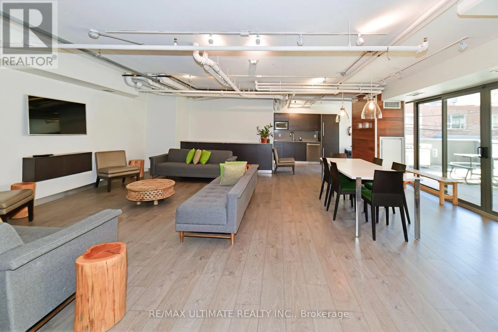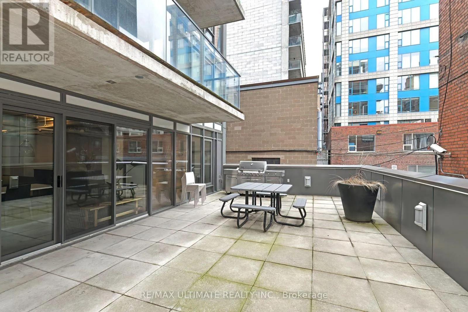 Cross Streets: Adelaide & Spadina. ** Directions: South on Spadina, west on Camden St. Welcome to this boutique condo In Heart Of King St W offering the perfect blend of modern luxury and convenience. this spacious 674 sf one bdrm + den is ideal for those seeking a sophisticated urban lifestyle with easy access to amenities and transit. Step inside and see this sleek and contemporary design with 9ft ceilings and lots of light. Excellent Floor Plan. Large Balcony. Building Amenities: Gym, Outdoor Terrace w/ BBQ, Social Room, Security. No Rental Parking Available. (id:27476)