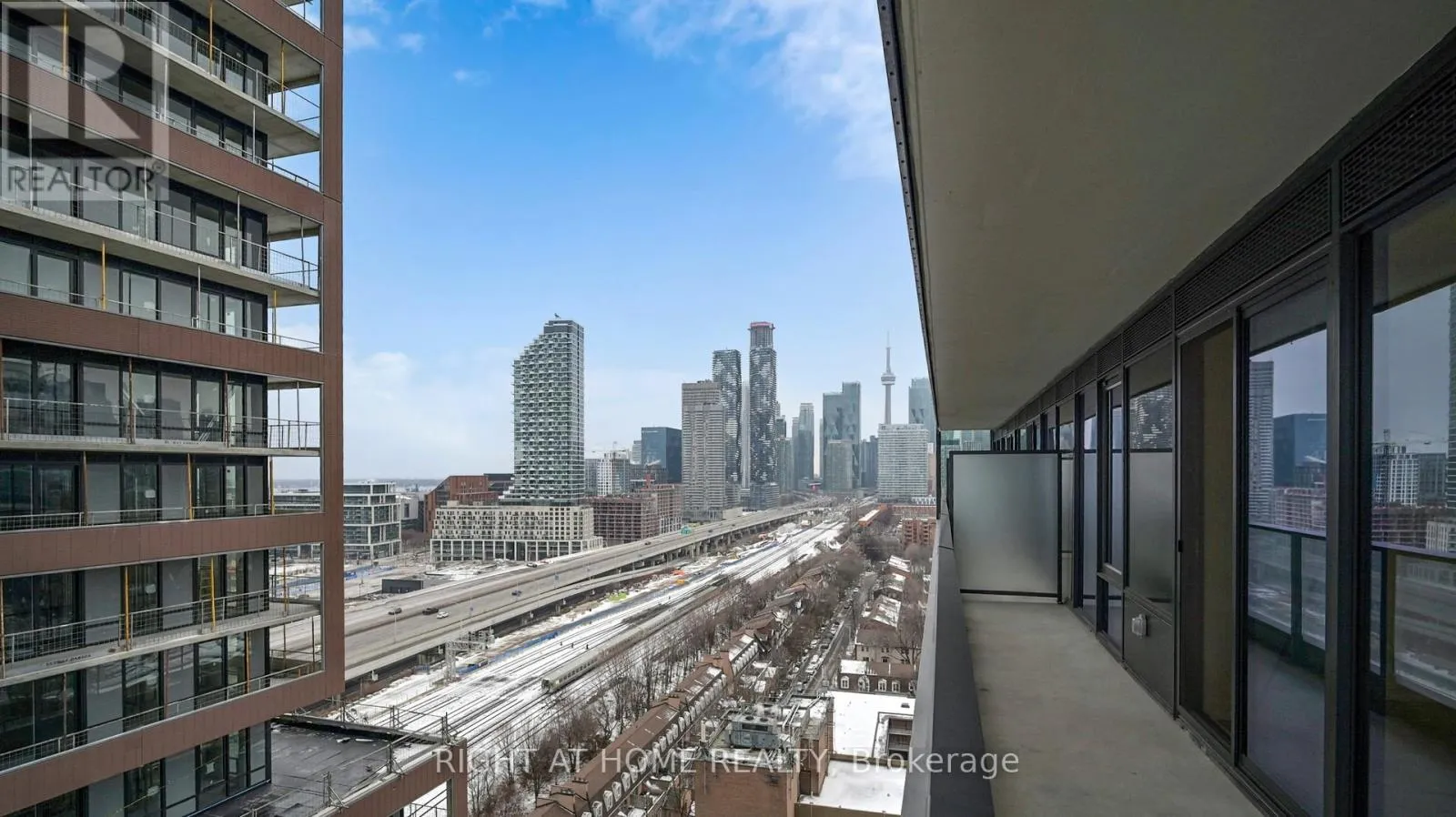 Parliament Street and Front Street Welcome to Unit 1702 at The Goode Condos, a beautifully designed 2-bedroom, 2-bathroom corner suite offering a rare wrap-around balcony with breathtaking city skyline and lake views, including the Distillery District. This bright and spacious residence features a functional split-bedroom layout, floor-to-ceiling windows, and a modern open-concept living space ideal for both everyday living and entertaining. The contemporary kitchen is equipped with integrated appliances, sleek cabinetry, and stone countertops, flowing seamlessly into the living and dining area. Both bedrooms are generously sized, with the primary bedroom featuring a private ensuite and excellent closet space. Step outside to your expansive wrap-around balcony, perfect for morning coffee, evening sunsets, or hosting guests.Located in the heart of the Distillery District, residents enjoy unparalleled access to boutique shops, top-rated restaurants, cafés, transit, waterfront trails, and St. Lawrence Market. Building Amenities Include: 24-hour concierge, Outdoor pool, Fully equipped fitness centre & yoga studio, Co-working and lounge spaces, Visitor parking.An exceptional opportunity to live in one of downtown Toronto's most vibrant and historic neighbourhoods. (id:27476)
