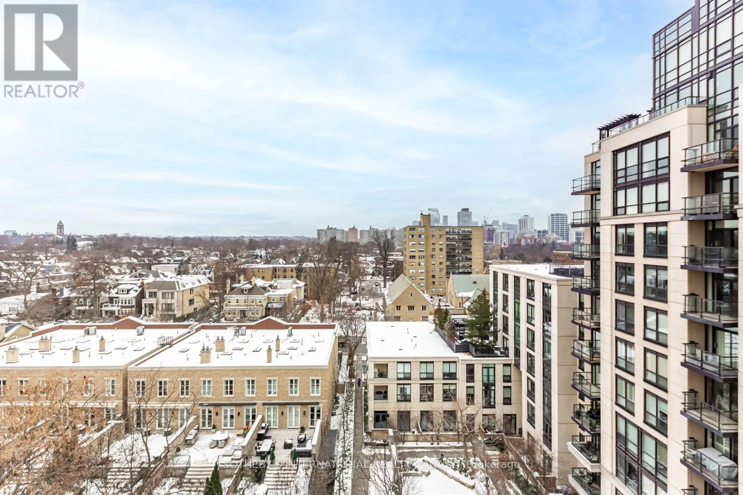 Cross Streets: Yonge/St. Clair. ** Directions: Use GPS. Welcome to Suite 907 at The St. Clair, a well-appointed 1,104 sq.ft. west-facing residence offering an exceptional blend of space, light, and location in the coveted Yonge-St. Clair neighbourhood. This thoughtfully laid-out two-bedroom, two-bathroom suite showcases an expansive living and dining area with hardwood floors, picture windows, and a walk-out to an open balcony, offering unobstructed views, capturing sweeping city and sunset views.The renovated kitchen is generously proportioned and highly functional, seamlessly connected to the main living space and perfectly suited for both everyday living and entertaining. The primary bedroom serves as a calm retreat, complete with a walk-in closet and a private four-piece ensuite. The second bedroom offers excellent flexibility for guests, a home office, or den, and is complemented by a separate three-piece bath. Ensuite laundry, underground parking, and an exclusive locker add to the suite's everyday convenience.Residents enjoy access to a full-service 24-hour concierge, fitness and media rooms, party and meeting spaces with walk-outs to a landscaped patio and parkette, and Green P visitor parking. Just steps to the St. Clair subway, Loblaws, fine dining, cafés, and boutique shopping, with Yorkville and downtown minutes away. A rare and refined offering in a landmark building-a private urban oasis in one of Toronto's most connected neighbourhoods. (id:27476)