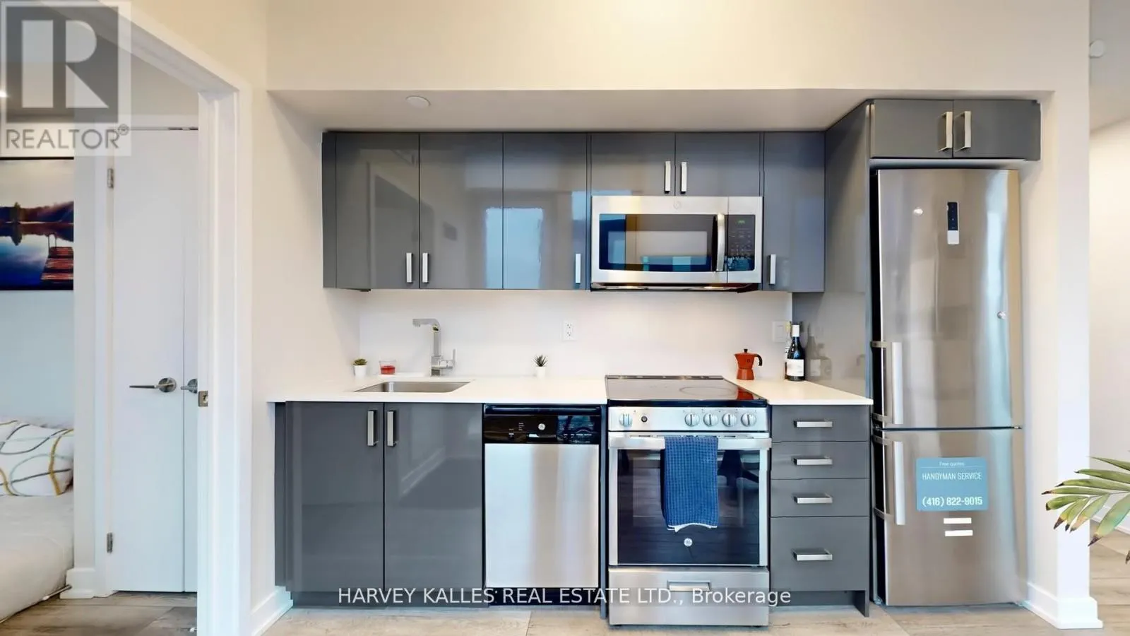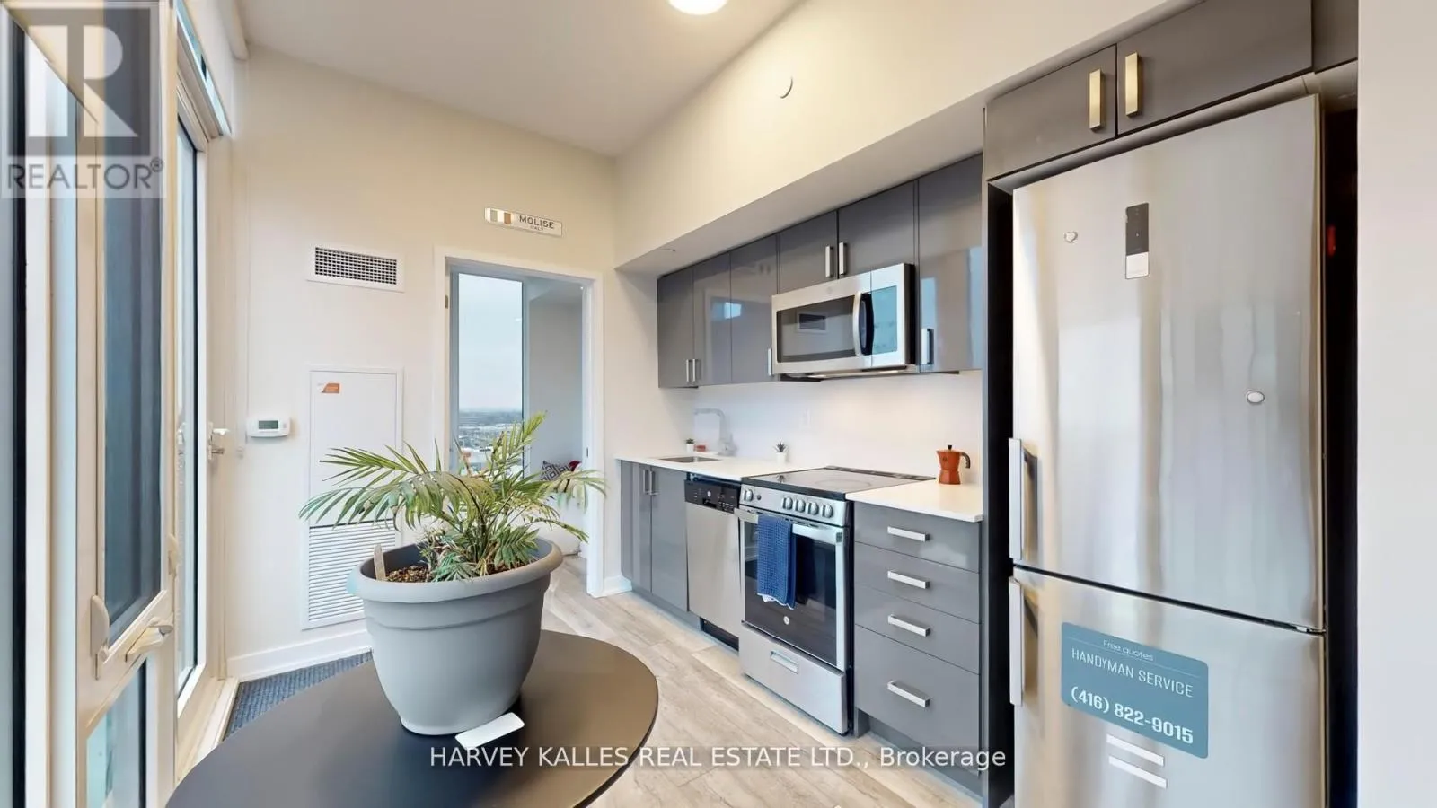 Wilson Ave & Allen Road Experience elevated living at Penthouse 1406 in The Rocket Condos - a rarely available, sun- drenched penthouse crafted for those who appreciate refined urban style. This sophisticated, south-facing 2-bedroom residence soars with over 9' ceilings and sweeping east-to-west panoramic views, creating a luminous, airy ambiance that sets it apart from anything else in the building. Inside, the suite has been thoughtfully upgraded with premium luxury vinyl flooring, an enhanced designer kitchen complete with upgraded cabinetry, quartz counters, and a full-height slab backsplash. Stainless steel appliances, ensuite laundry, sleek pot lighting, and floor-to-ceiling windows with modern roller shades all contribute to a polished, contemporary feel. Residents enjoy an impressive array of amenities, including a 24-hour concierge, a fully equipped fitness centre with yoga and aerobics studio, a chic party lounge with private catering kitchen, an outdoor terrace with BBQs, and beautifully landscaped grounds designed for relaxation. Perfectly positioned with TTC access quite literally at your doorstep, steps from Wilson Station, and just moments from Yorkdale Shopping Centre, Costco, top dining, and major commuter routes (401, 400 & Allen Rd). High-speed internet is included, with paid visitor parking available. Penthouse 1406 offers the rare blend of comfort, convenience, and elevated style - a standout opportunity in one of Toronto's most connected neighbourhoods. (id:27476)