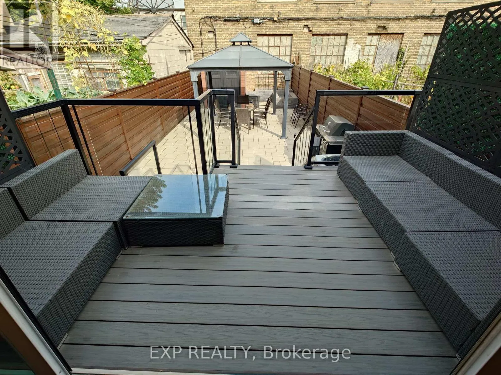 Cross Streets: St Clair Ave And Laughton Ave. ** Directions: South. Executive semi-detached, fully paved driveway & back yard with a composite deck, aluminum rails w/glass& cedar-stained fencing. Step inside from a fiberglass-stained insulated door to a French style decorative wrought iron post & steel picket staircase with a coffered ceiling underneath. A grandiose 5-ft linear gasfireplace with a dreamy sintered smooth stone finish and custom vented cabinetry. 9-in Crown mouldings,8-in baseboards, architraves, & solid-core designer doors w/Emtek handles. Triple paned windows t/o, 90-in glass double doors in kitchen leads to a power room and office/den with a 10-ft 4-panel sliding doorwalk-out to your deck w/powered retractable awning & gazebo perfect for hosting & tranquility. Openconcept basement with large built-ins for shoes & additional closets perfect for coats etc. Contemporary laundry & 3-piece bath. In-wall surround speaker wires in family room & basement. Tech: 200-amp service/panel w/whole home surge protection, ethernet in den to family room for routing, smartthermostat, smart water softener, select smart switches, Nest protect and Nest doorbell. New LG rangew/air fryer and LG fridge w/craft ice, undercounter beverage fridge in island. Massive renovations involvedstructural openings, electrical, HVAC, new roofing, siding, spray foam insulation, sound/fireproofing, plumbing and land/hardscaping to the finishes you see took up to 20 bins of demo/reno. TTC streetcar literally around the corner which takes 25min. to Union Station in rush hour. City planned UP ExpressStation/Stop to be constructed at Old Weston minutes walk. (id:27476)