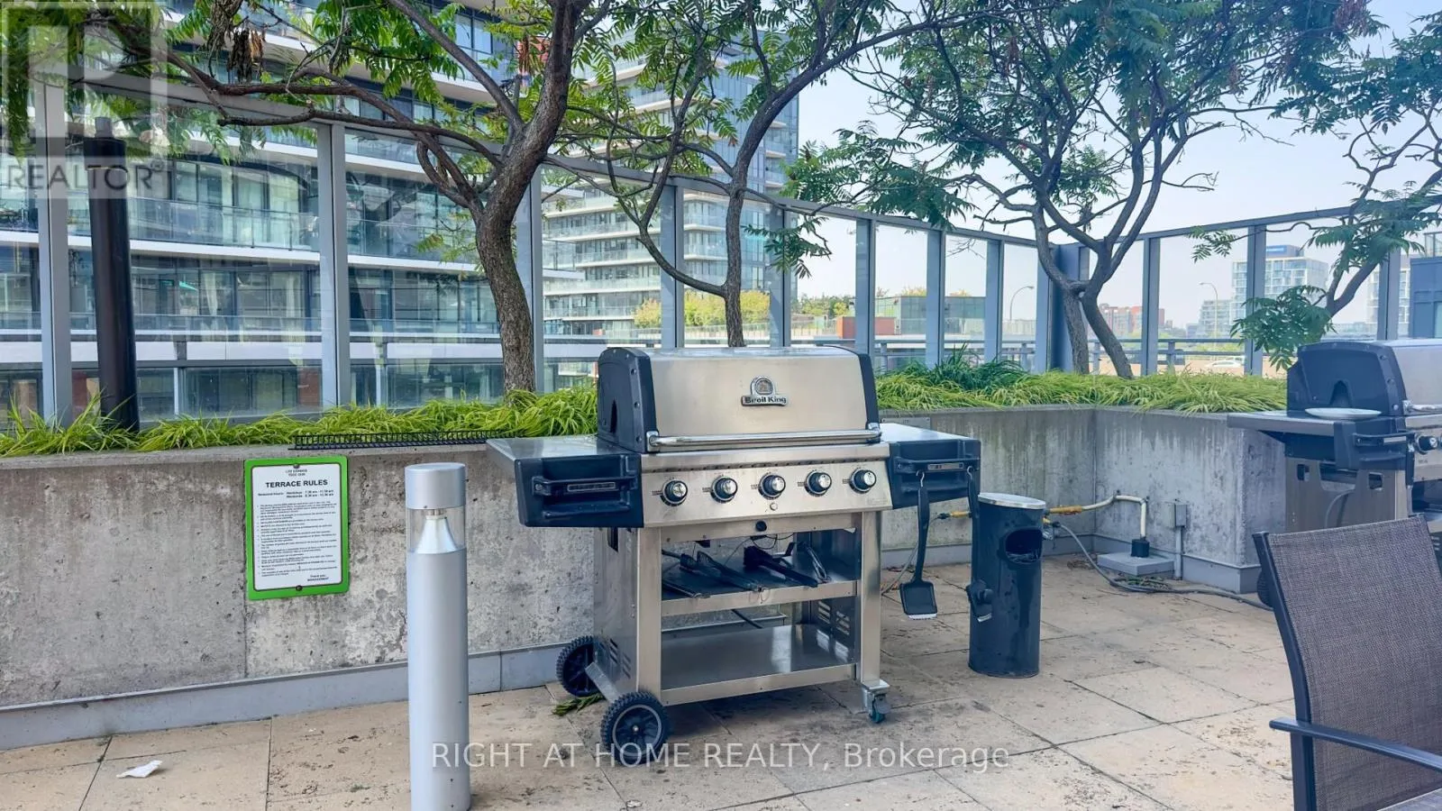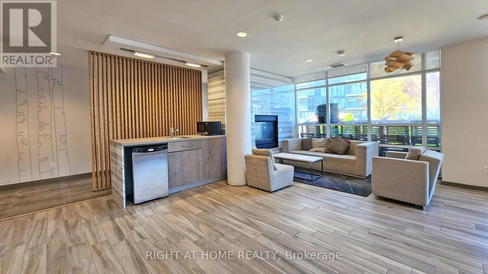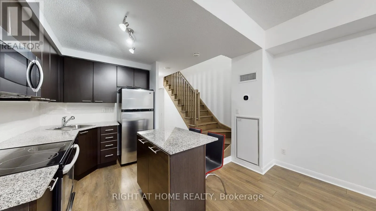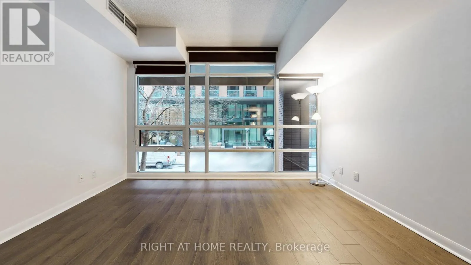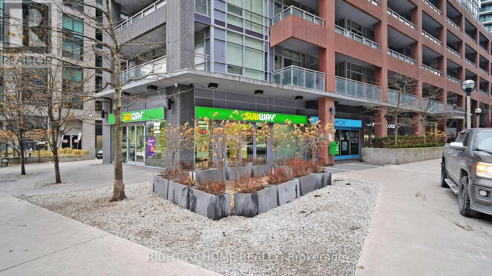 Cross Streets: Bathurst St./Lakeshore BLVD. ** Directions: Bathurst St./Bruyeres Mews. Rarely offered two-storey condo townhouse in the sought-after Fort York/Waterfront neighbourhood. Move-in ready and beautifully maintained. Freshly painted and professionally deep-cleaned, this bright 1+den layout features two full bathrooms and a private patio, perfect for morning coffee or evening downtime. This condo features high ceilings and floor-to-ceiling windows, creating an open feel for everyday living and entertaining. Enjoy the flexibility of a true den that can function as a second bedroom with a custom built-in Murphy bed. The home offers two convenient entrances (street-level and through the building), a tiled building entryway, an open-concept kitchen, and laminate flooring throughout. Notable updates include a new thermostat and heat pump (2021) on the ground level. You'll also love the practicality of your parking spot and locker on the same level, just steps away from the elevator. Well-managed building with semi-annual CAC filter changes, exterior window cleaning once a year, and patio snow/leaf clearing. Amenities include a rooftop patio with BBQ, a guest suite available to rent, bike storage (additional fee), fibre internet availability, and an EV charging station planned within the next year. A contemporary mid-rise with a boutique feel. Moments to Lake Ontario, Harbourfront Centre, transit, shops, dining, entertainment, art galleries, and the Financial District. (id:27476)