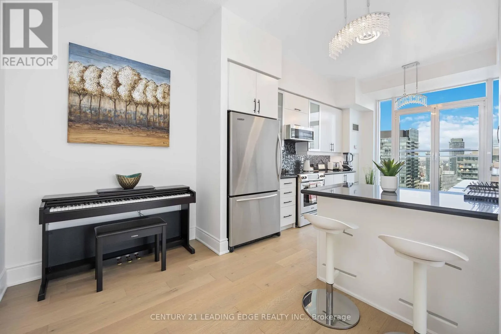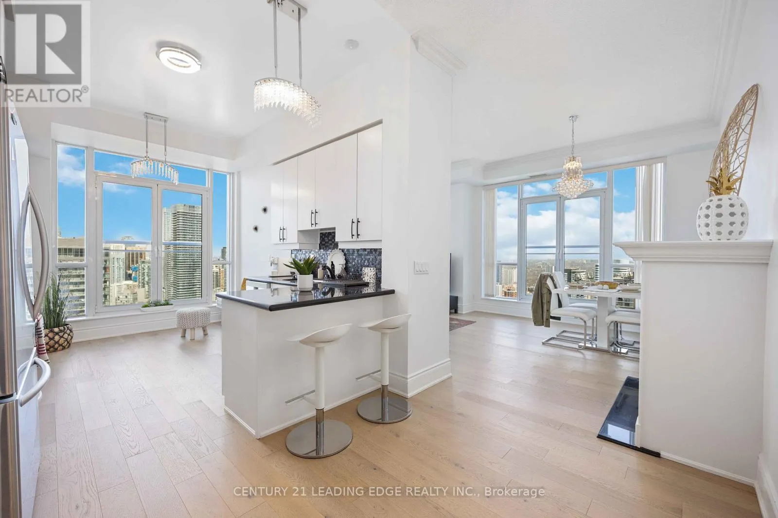 Bay St./College St. Stunning Renovated 2-Bedroom Penthouse in Luxury College Park Residences. This beautifully renovated 2-bedroom penthouse offers a sophisticated living experience in the prestigious Residences of College Park. As a bright corner unit, it boasts an abundance of natural light and an open, airy feel. Key Features - Spacious & Stylish: Generous living space with soaring 10 ft ceilings and elegant hardwood flooring throughout. Fire place, Modern Kitchen: Family-sized, equipped with sleek stainless steel appliances and ample storage. Breathtaking Views: Enjoy unobstructed panoramic vistas of the city skyline and Lake Ontario. Primary Bedroom Retreat: Features a 4-piece ensuite, double closet with organizer, and a serene ambiance. Private 2 car Garage, 2 Lockers [one located in the garage and one in same floor]. All Utilities are included in maintenance fee. Unbeatable Location: Direct indoor access to the subway and College Park Mall, plus an easy walk to U of T, Yorkville, top restaurants, and 24-hour grocery stores. (id:27476)