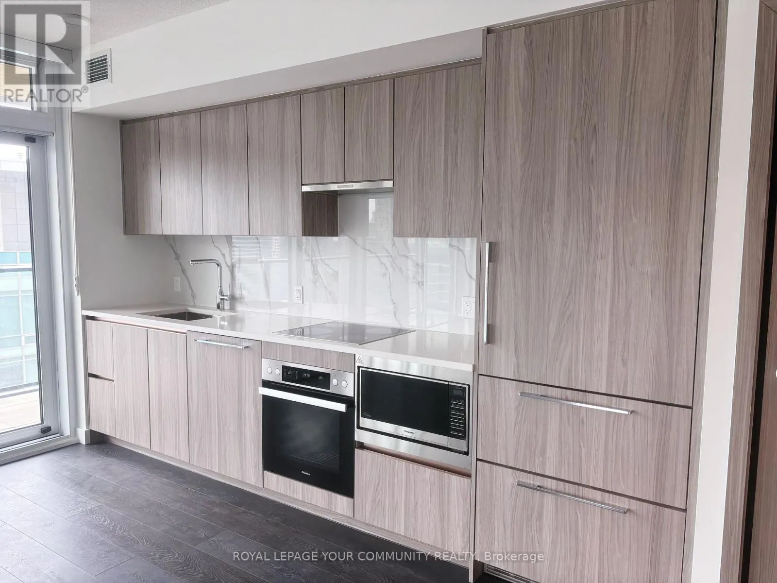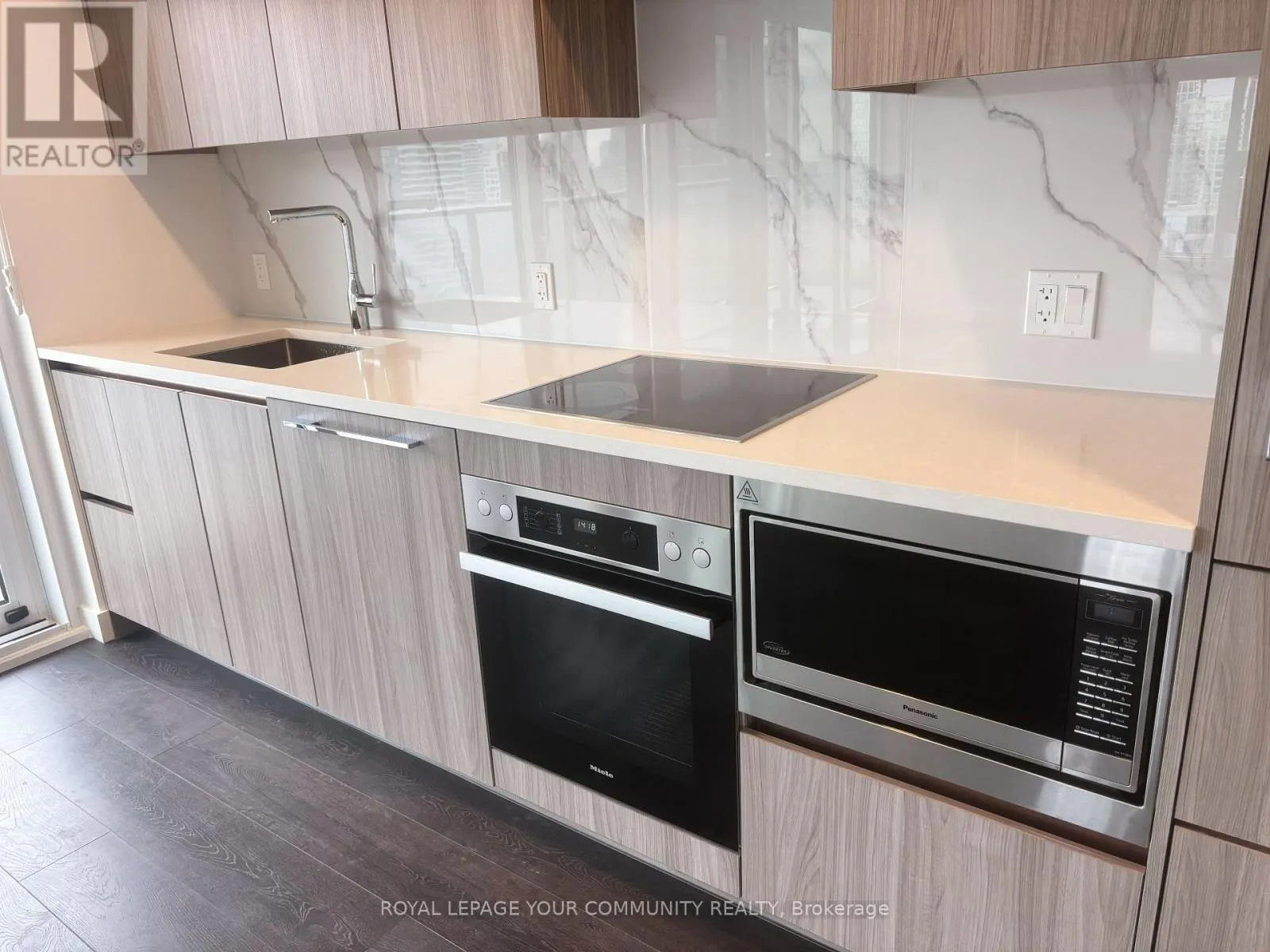 Spadina Ave /Blue Jays Way Canada House is located in the heart of Toronto's waterfront and is an iconic continuation of a Canadian legacy on the shores of Lake Ontario. Brand New, Never Lived-In, Modern, Luxurious 760 Sq. Ft., 2-Bedroom, 2-Spa-like Bath condo unit with Premium Finishes, Floor to Ceiling Windows complement with a Spacious 150 Sq. Ft. Functional, Composite wood decking Balcony for entertainment with A Unique and Breathtaking City Views. * Kitchen features with Miele Appliances (refrigerator, hood fan, dishwasher, electric cooktop, oven) except Panasonic Microwave, Engineered quartz stone countertop, Large-format porcelain Calacatta tile backsplash. * Indulge-in Superb Amenities include but not limited to Sky Gym, Swimming pool, Hot tub, Cold plunge dipping pool, Spinning zone, Yoga zone, Culinary event kitchen, Event dining room, Wine lounge, Entertainment room, Party room and more. * Steps To TTC Transit streetcar (to TTC Subway Stations). Tower at 8 Spadina Ave for INTUIT Canada, FINANCEIT, Toronto Star & more; Office Tower at 120 Bremner Blvd for AMAZON Canada, APPLE Canada, AIG Insurance of Canada, ADVISORSTREAM, MARSH Canada & more; The PATH (Downtown Underground Walkway - Access via Metro Toronto Convention Centre South); Metro Hall, Sobeys Urban Fresh, Loblaws, Farm Boy, Shoppers, Fort York Library, Canoe Landing Park, CN Tower, Rogers Centre & more. * Easy Travel To Toronto Western Hospital, St. Michael's Hospital, University of Toronto, OCAD, Toronto Metropolitan University, Union Station, Billy Bishop Toronto City Airport (YTz), King West, Queen West, Tech Hub, Hospital/Financial/Entertainment Districts, QEW/Gardiner & more. 1 Parking Spot and 1 Locker Included. (id:27476)