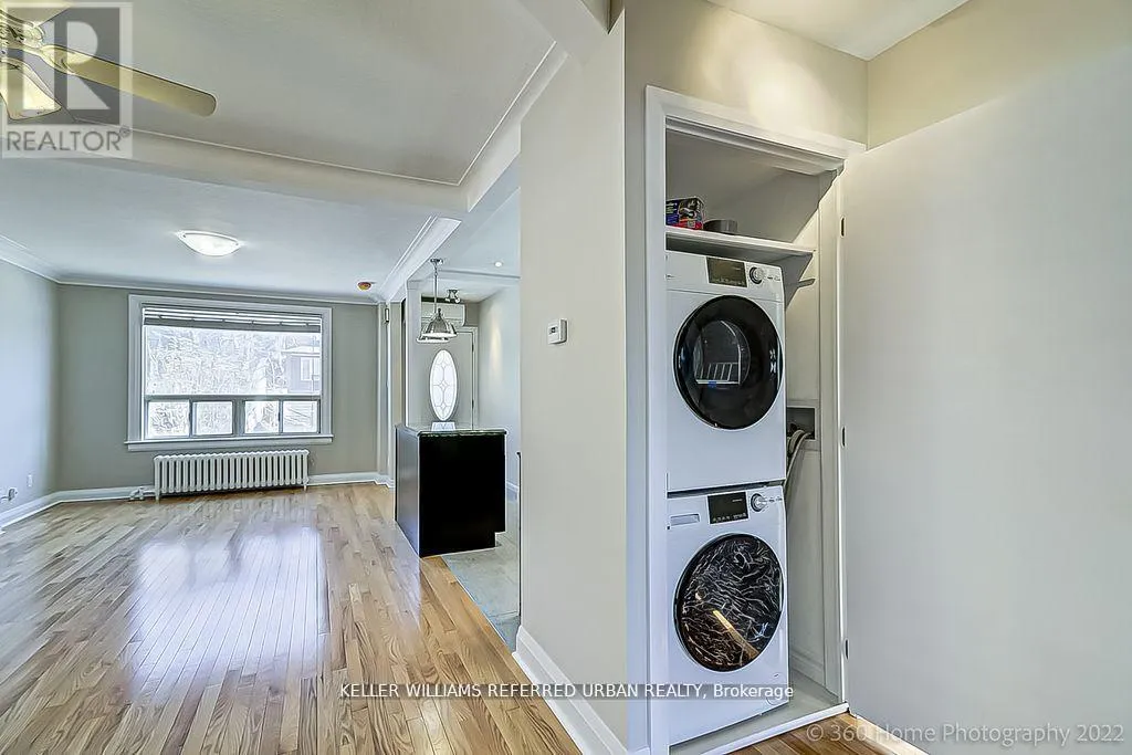 Caledonia & Eglinton Spacious main-floor two-bedroom unit in a high-demand pocket near Caledonia & Eglinton, just steps to the upcoming Eglinton Crosstown LRT! This bright and well-maintained space features hardwood flooring throughout, a spacious living/dining area, and a functional kitchen with ample storage. Both bedrooms offer excellent natural light. Enjoy the convenience of ensuite laundry, dedicated parking, and exclusive-use backyard space-perfect for outdoor relaxation or entertaining. Fantastic location close to transit, parks, shops, grocery, restaurants, and everyday amenities. A great opportunity to live in a growing and well-connected neighbourhood! (id:27476)