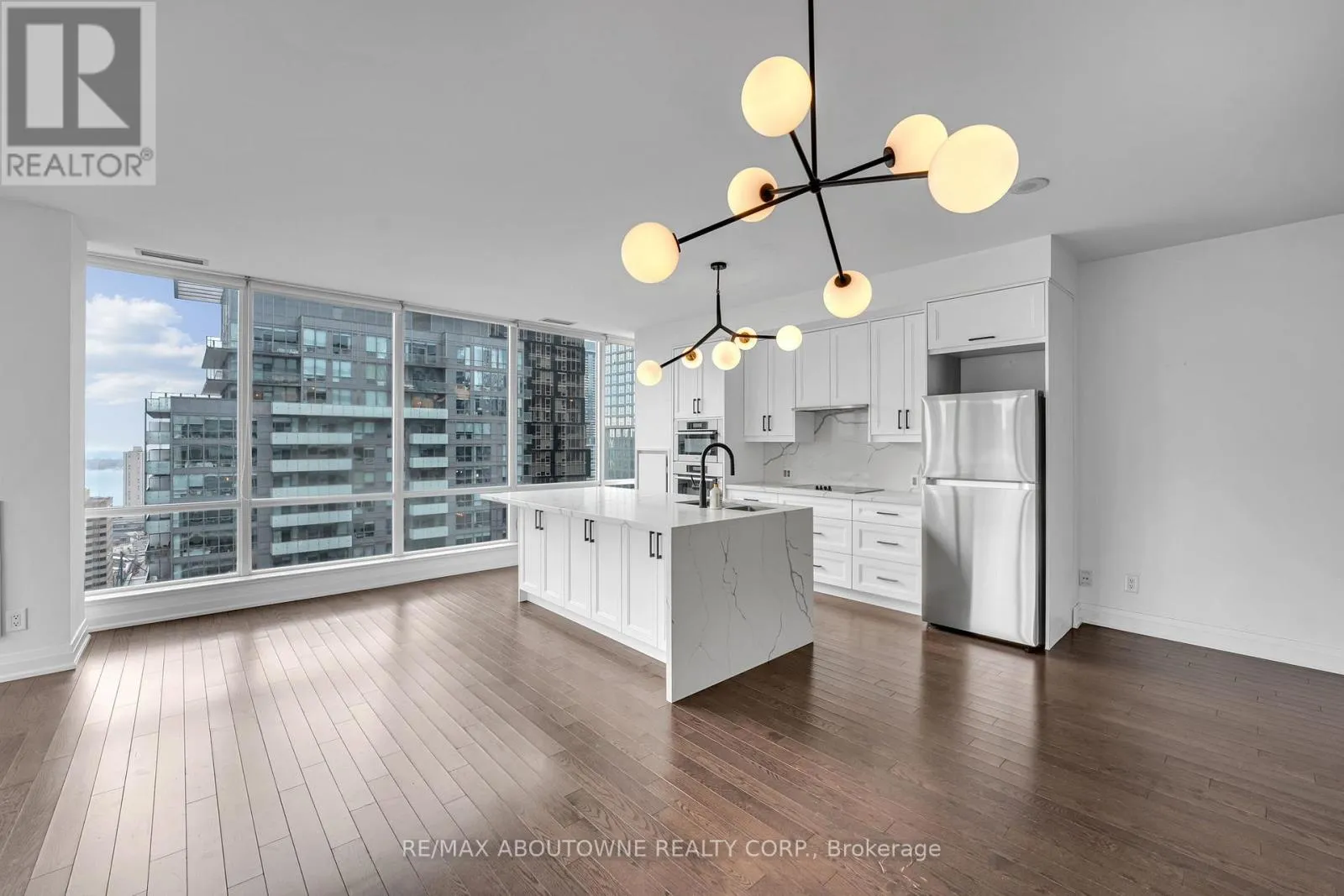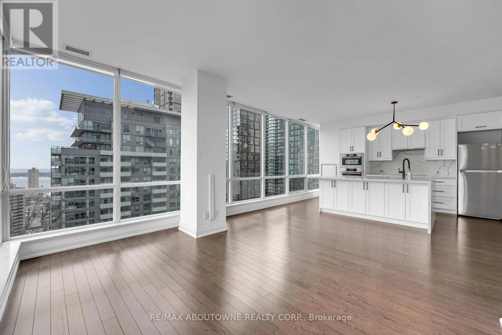 King St W & John St Stunning corner suite in Festival Towers with breathtaking southeast views of the CN Tower, downtown skyline, and a glimpse of the lake. This bright 2-bedroom, 2-bathroom residence features floor-to-ceiling windows, a functional open-concept layout, and a 143 sq ft balcony ideal for enjoying city views. The modern kitchen offers white cabinetry, a waterfall island with built-in storage, and generous dining space, perfect for entertaining. Both bedrooms are spacious, and the bathrooms have been fully updated with contemporary finishes. Includes one parking space and one locker. Residents enjoy exceptional amenities including 24-hour concierge, indoor pool, steam room, sauna, fitness centre, yoga studio, theatre, guest suites, and a rooftop terrace with BBQs. Prime King West location steps to transit, restaurants, shopping, the Financial District, and the PATH. Available on a 6-month lease term. (id:27476)
