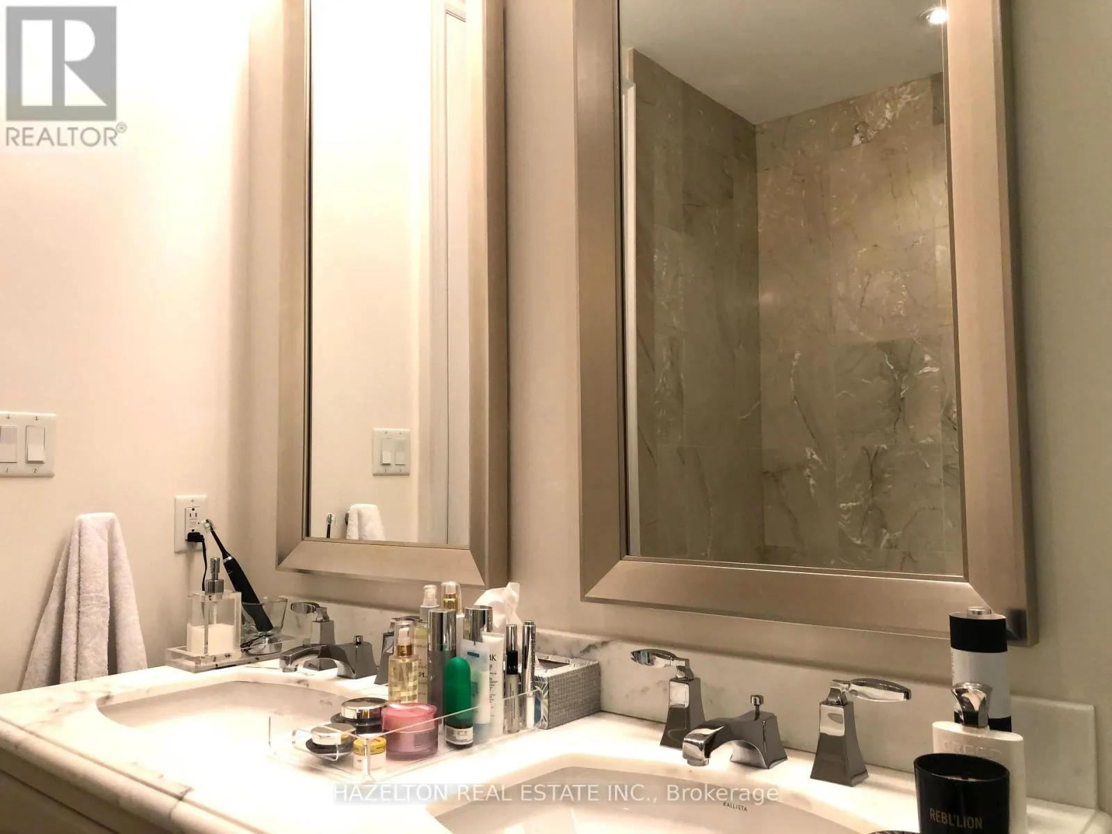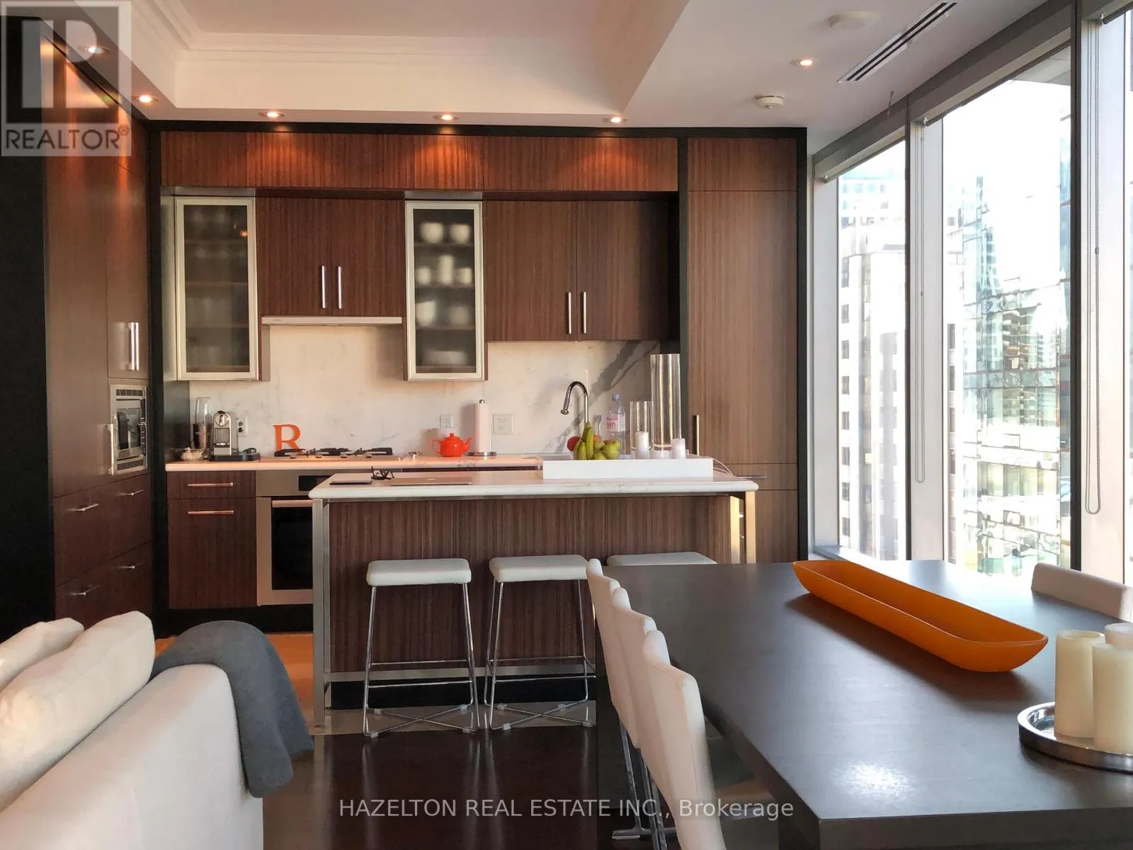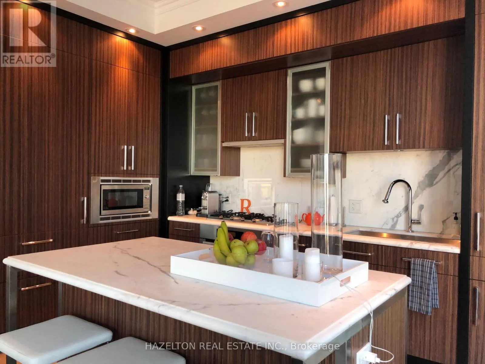 Bay And Yorkville Fabulous Four Seasons Private Residences, in the heart of Yorkville. On the north west corner, approx 1260 sq ft, this bright oversized one bedroom plus den offers generously sized open concept space with 10 ft ceilings and floor to ceiling glass with a long balcony to enjoy sunny afternoons and sunsets. Top of the line built in appliances ,stone countertops and a centre island in the kitchen, open to the living/dining space for terrific entertaining. The separate den is ideal for a home office or occasional guest room. The primary bedroom is a real highlight: enormous space with plenty of room for a king sized bed plus a sitting area, and a walk in closet. Two spa like marble baths (2 piece in foyer plus decadent 6 piece ensuite). This is an ideal space in one of the best buildings in Toronto. **EXTRAS** Full services including valet parking, full concierge services, membership to the exclusive health club featuring an indoor pool and full spa, gym and yoga, signing privileges at the restaurants etc. One parking spot and one locker included (id:27476)