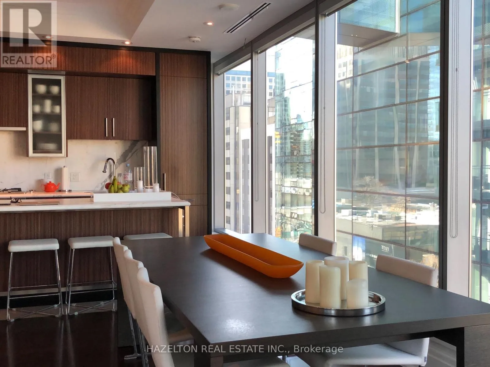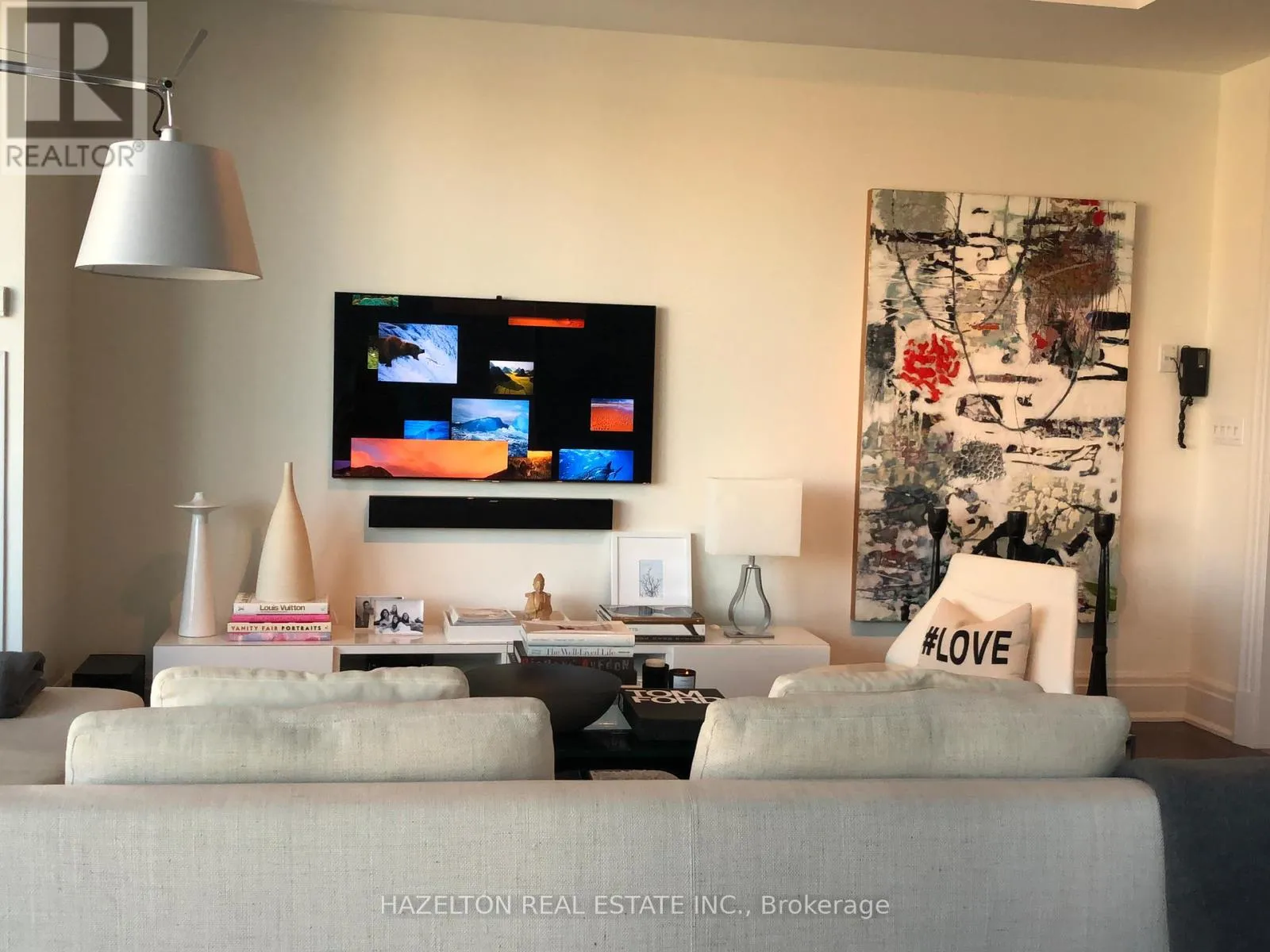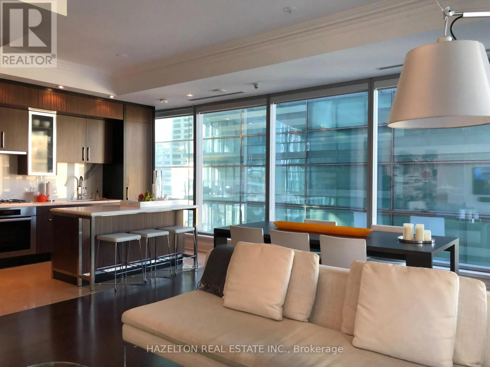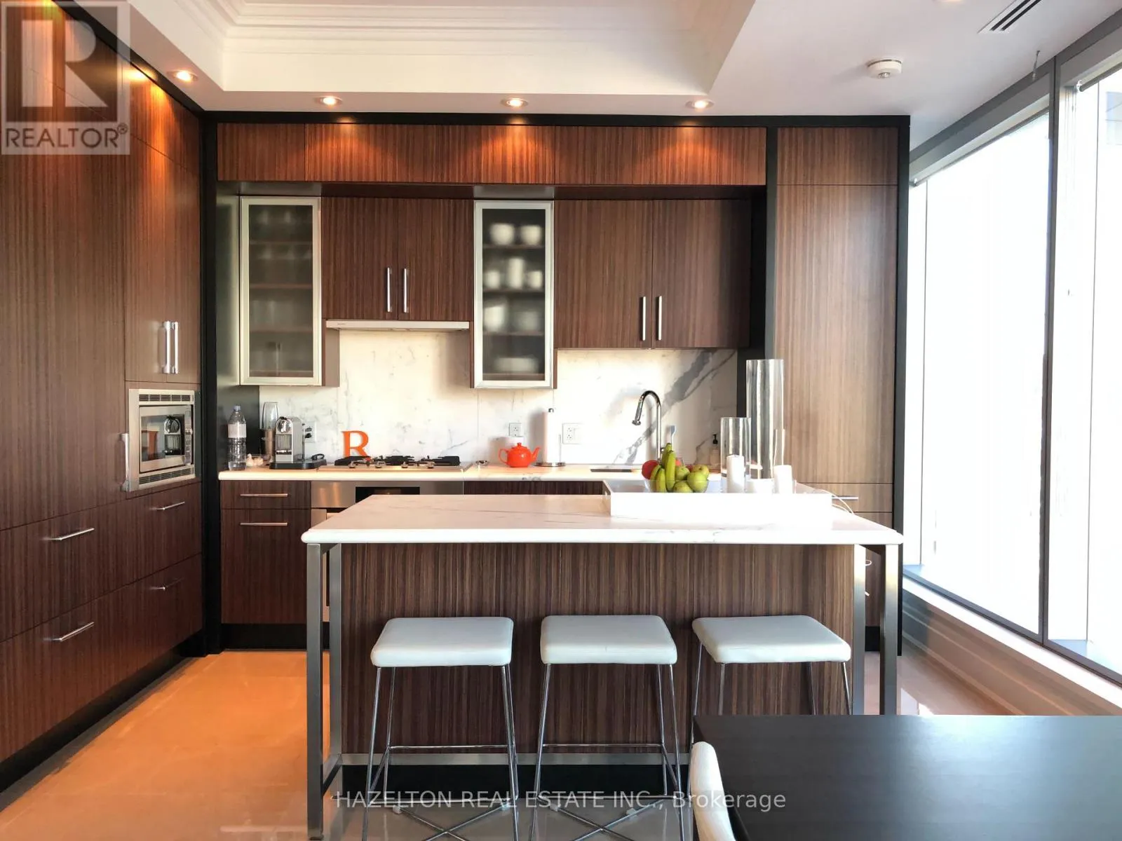 Bay And Yorkville Fabulous Four Seasons Private Residences, in the heart of Yorkville. On the north west corner, approx 1260 sq ft, this bright oversized one bedroom plus den offers generously sized open concept space with 10 ft ceilings and floor to ceiling glass with a long balcony to enjoy sunny afternoons and sunsets. Top of the line built in appliances ,stone countertops and a centre island in the kitchen, open to the living/dining space for terrific entertaining. The separate den is ideal for a home office or occasional guest room. The primary bedroom is a real highlight: enormous space with plenty of room for a king sized bed plus a sitting area, and a walk in closet. Two spa like marble baths (2 piece in foyer plus decadent 6 piece ensuite). This is an ideal space in one of the best buildings in Toronto. **EXTRAS** Full services including valet parking, full concierge services, membership to the exclusive health club featuring an indoor pool and full spa, gym and yoga, signing privileges at the restaurants etc. One parking spot and one locker included (id:27476)