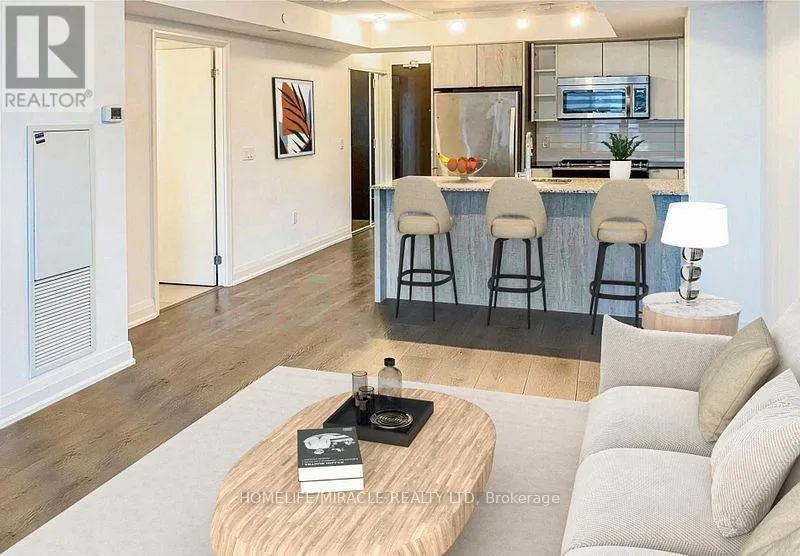 HWY 427 / Burnhamthorpe Welcome to Triumph at Valhalla, available to move in March 1st! This well-designed 541 sq ft 1-bedroom condo is situated on the 8th floor with a quiet north exposure overlooking the landscaped courtyard. The bright, open-concept layout features a modern kitchen with stainless steel appliances, granite countertops, and ample cabinetry, flowing into the living area with a Juliette balcony that provides natural light and fresh air. The spacious bedroom offers excellent closet space and is complemented by a contemporary 4-piece bathroom with a floating vanity and modern finishes. Ensuite stacked laundry and one underground parking space are included for added convenience. Residents enjoy resort-style amenities including a fitness centre, indoor pool, sauna, theatre room, party rooms, BBQ terrace, guest suites, and 24-hour concierge, all within a professionally managed building. Ideally located minutes to Sherway Gardens Mall with quick access to Highways 427, 401 & QEW, TTC transit, Pearson Airport, and downtown Toronto, offering comfortable, low-maintenance living in a highly connected Etobicoke neighbourhood. (id:27476)