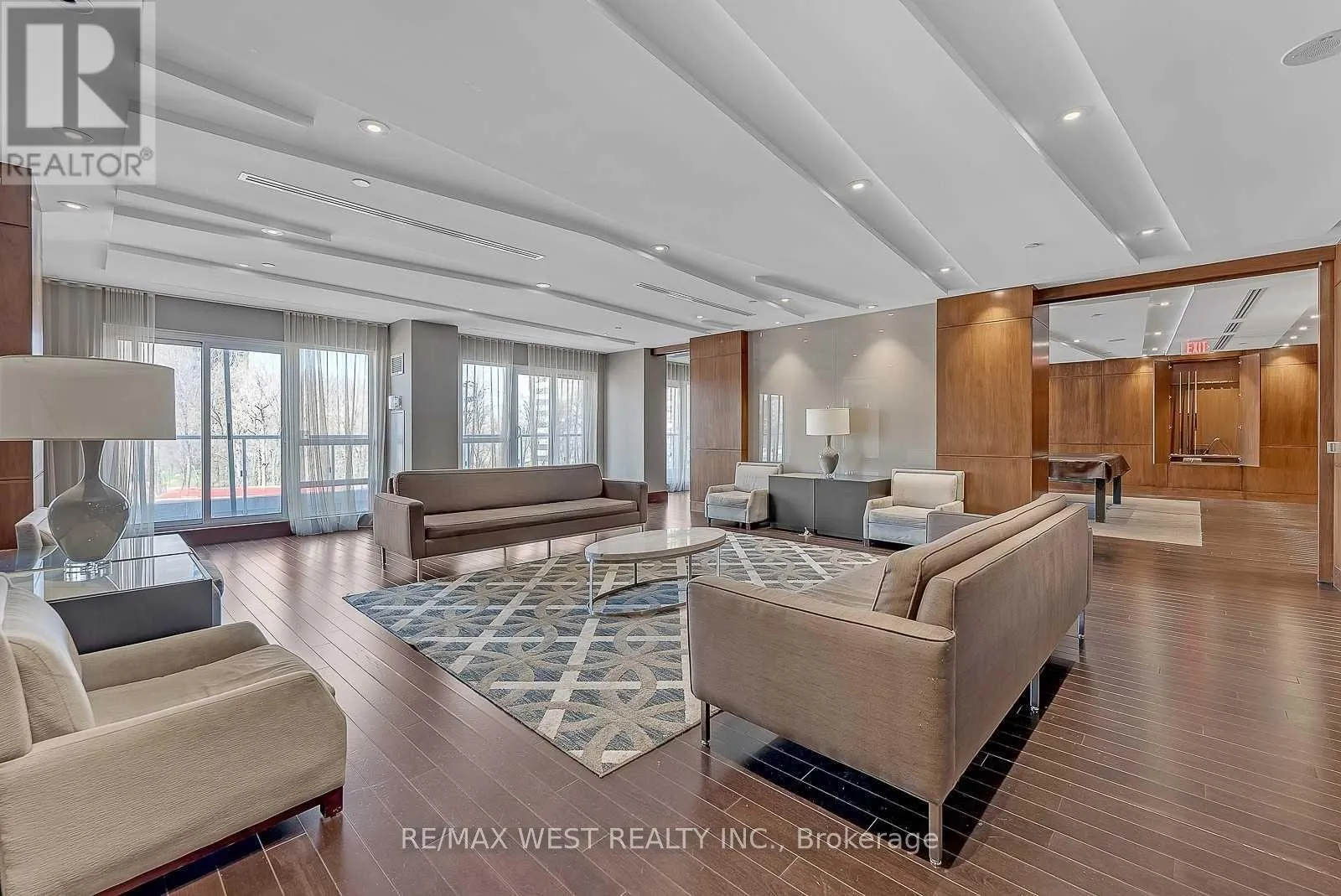 Sheppard/East of 404 This bright and spacious 1+1 bedroom offers a modern kitchen with upgraded stainless steel appliances, granite counters, and a marble backsplash. Laminate and ceramic flooring throughout. Step out from two walkouts onto a huge 22-ft glass-railed balcony with amazing city skyline views. The building has great amenities including a pool, steam room, gym, yoga studio, party room, BBQ deck, and a beautifully landscaped courtyard with waterfalls. Available furnished or unfurnished. (id:27476)