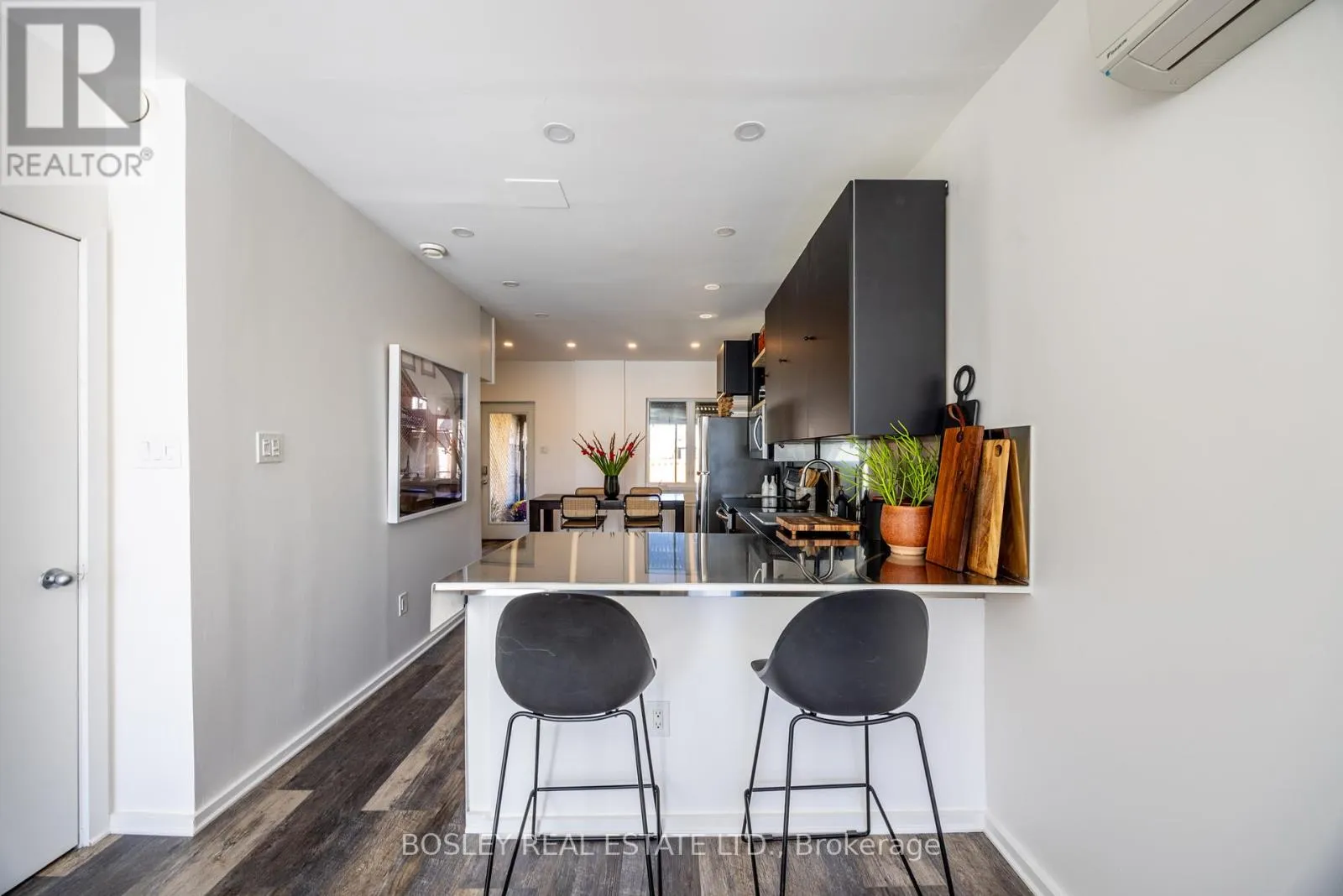 Cross Streets: Eglinton & Weston Rd. ** Directions: park & enter thru rear, use laneway South from Barr Ave. Welcome to this architect-inspired, thoughtfully renovated semi-detached home in the heart of Mount Dennis. Stylish 2 bedrooms + den with 2 full washrooms and parking. Designed for modern living with comfort, efficiency, and flexibility in mind, this bright and stylish residence offers an exceptional opportunity to create a home in this rapidly evolving neighbourhood. Unbeatable location and transit hub: just steps to the Mount Dennis LRT Station, with easy access to GO Transit, the UP Express, buses, and major highways. Walk to Keelesdale Park, York Recreation Centre, the Toronto Public Library, and nearby grocery stores, cafés, and everyday essentials. Enjoy a balance of neighbourhood charm and urban convenience, with quick access to Stock Yards Village shopping and dining. The home features a completely renewed front façade with a custom entry door and updated windows, including UV-reflective film for added privacy and energy efficiency. Inside, enjoy contemporary finishes, modern washrooms, and a distinctive custom kitchen with a handcrafted stainless-steel countertop and breakfast bar-perfect for everyday living and entertaining. Three skylights (two fixed, one operable) flood the home with natural light and offer passive cooling options. All major mechanicals and infrastructure have been updated, providing peace of mind and low-maintenance living. Four heat pumps allow for efficient, zoned heating and air conditioning throughout the home. Convenient second-floor laundry. The lower level includes a covered separate entrance and flexible bonus space ideal for storage. Rear lane parking adds everyday convenience. This is a home that delivers modern comfort, flexibility, and a designer aesthetic in a well-connected, community-oriented location. (id:27476)