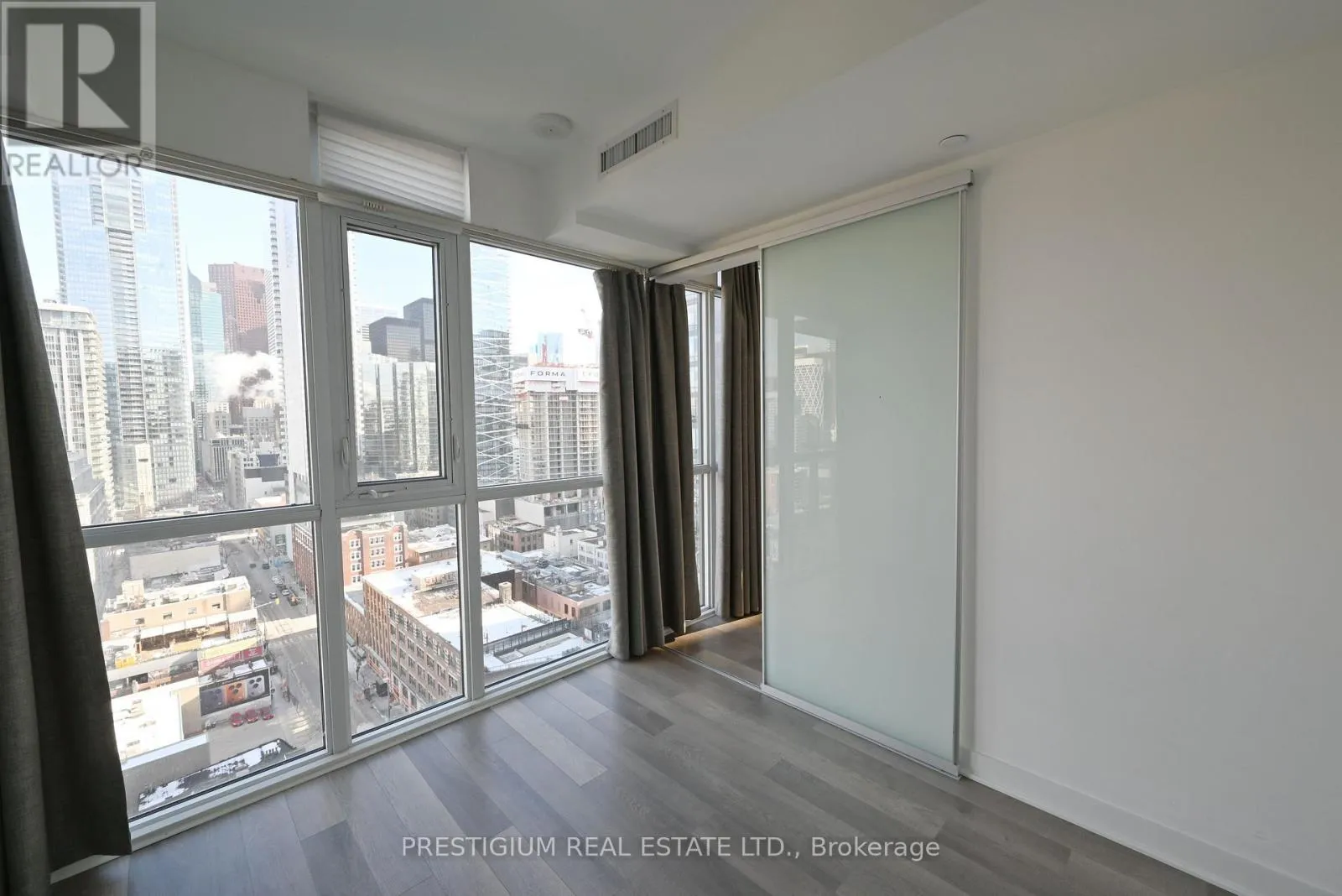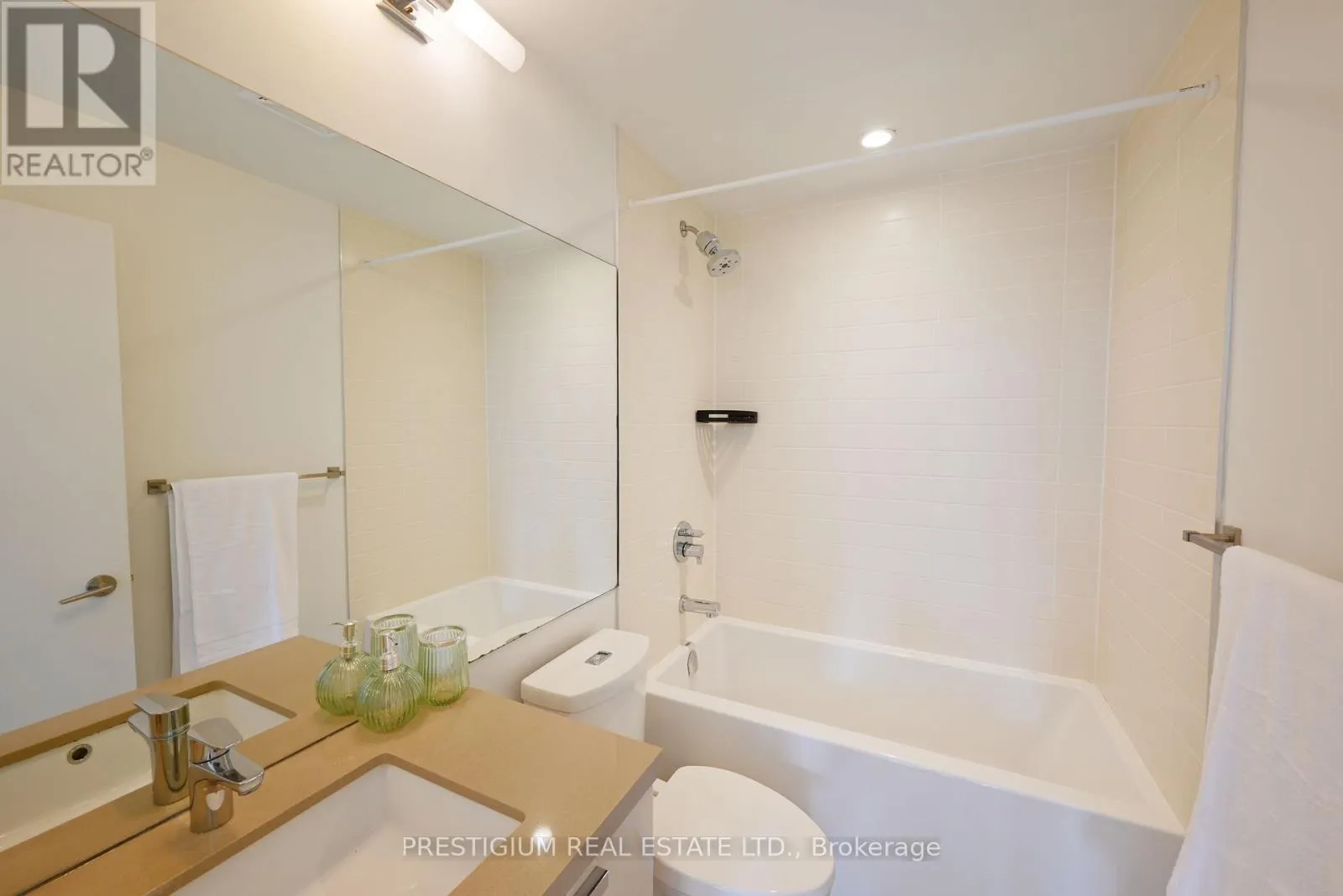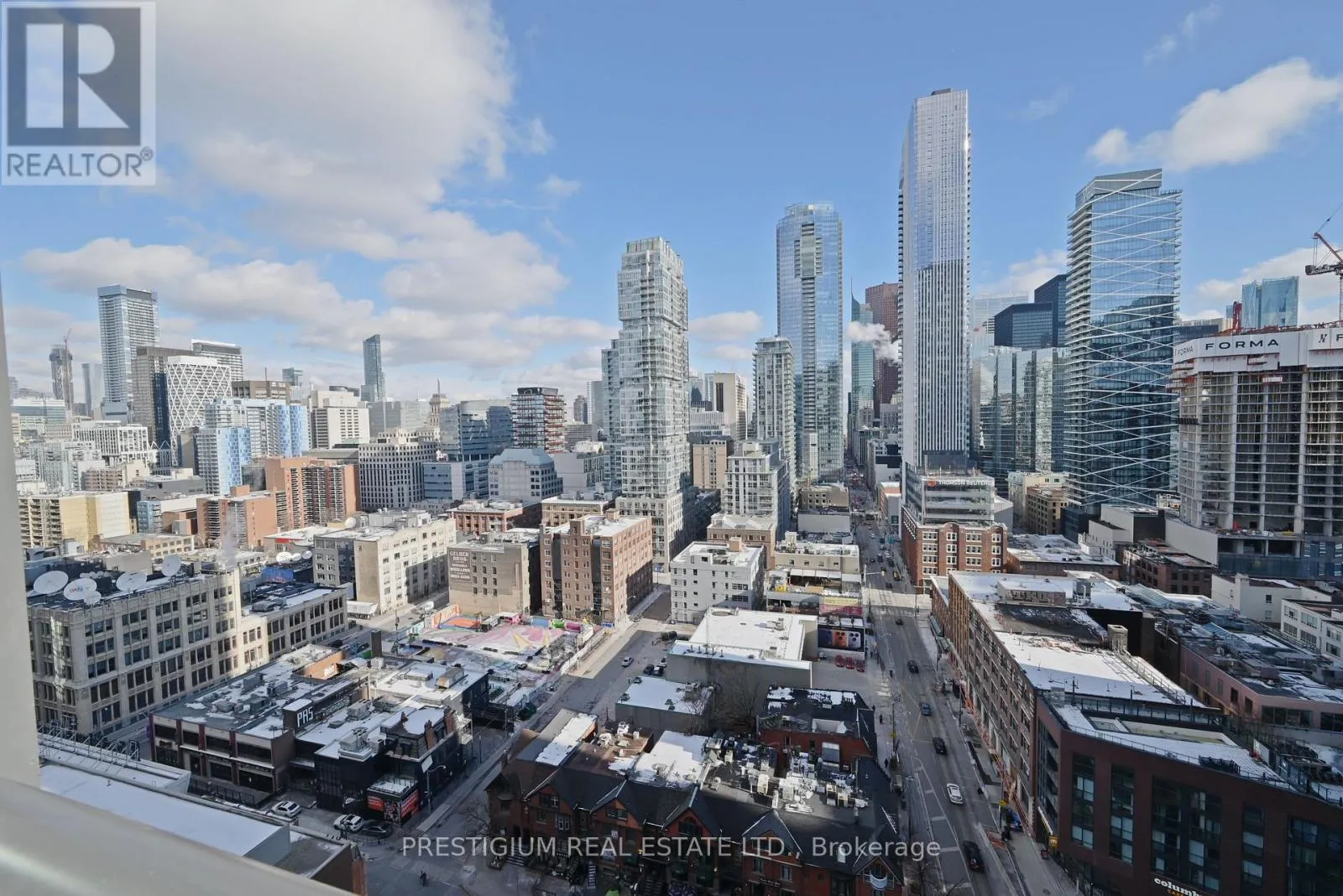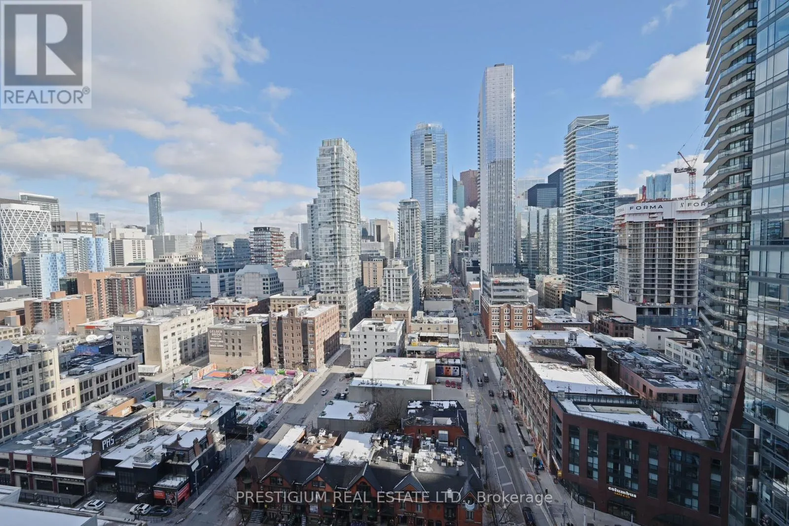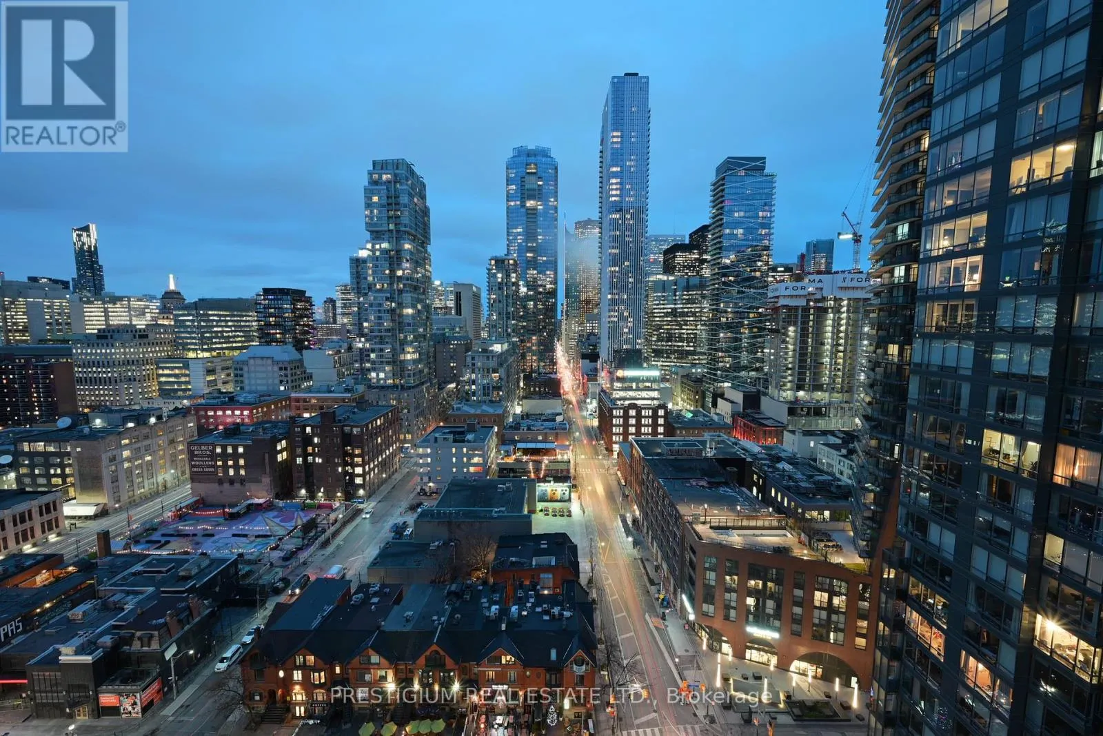 Adelaide St W/John St Welcome to this stunning southeast-facing corner suite offering over 800 square feet of bright, beautifully designed living space. Floor-to-ceiling windows wrap the unit, filling it with natural light and showcasing spectacular city views. Every detail reflects modern elegance - from the 9-foot ceilings and contemporary cabinetry to the designer bathrooms and sleek finishes throughout.The gourmet kitchen features premium stainless steel appliances, quartz countertops, and an undermount sink, perfect for both entertaining and everyday living. The open-concept layout creates a seamless flow, maximizing functionality with no wasted space.Located steps from Toronto's most iconic landmarks, the Financial District, premier dining, world-class entertainment, and effortless transit access, this residence captures the essence of sophisticated downtown living. (id:27476)