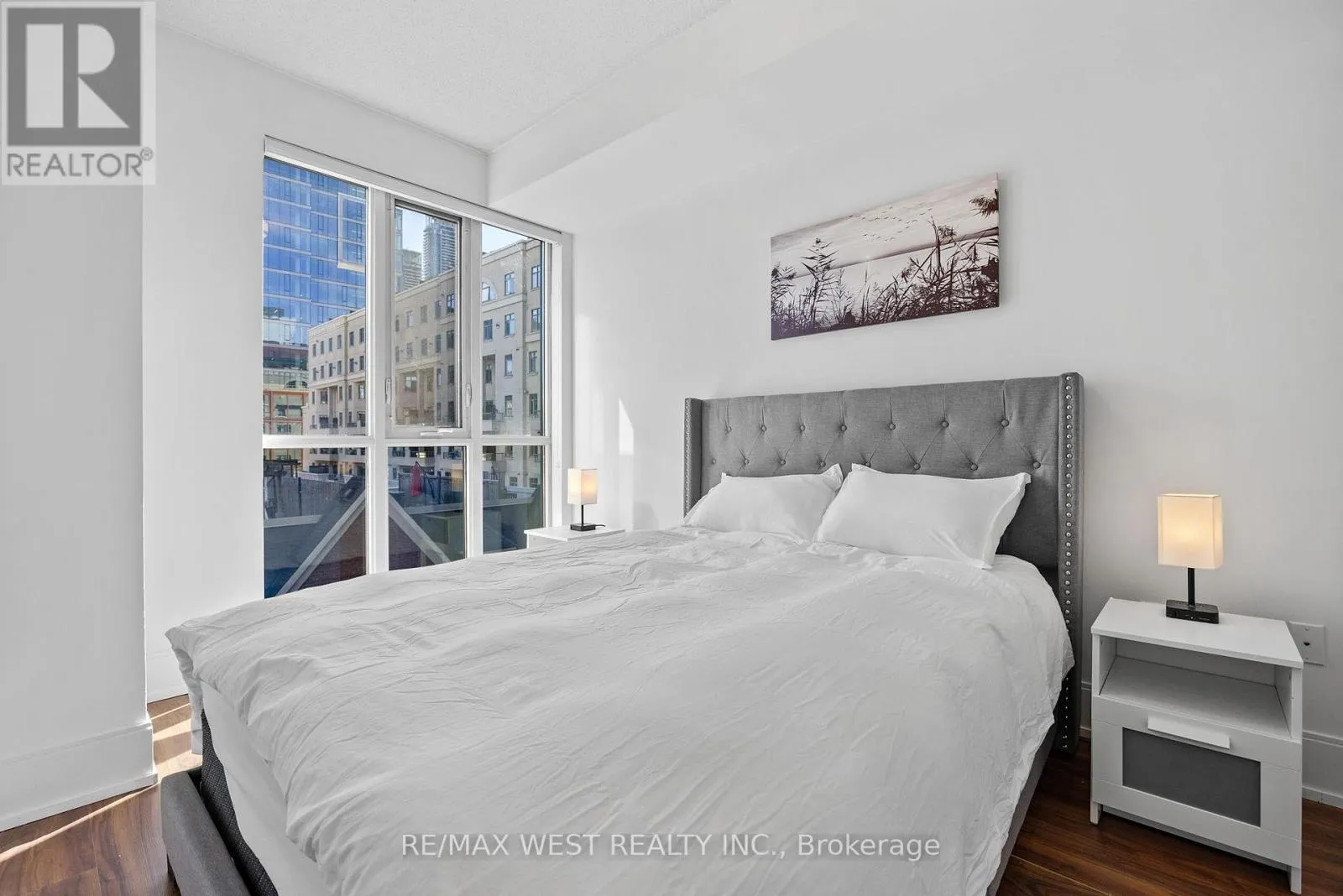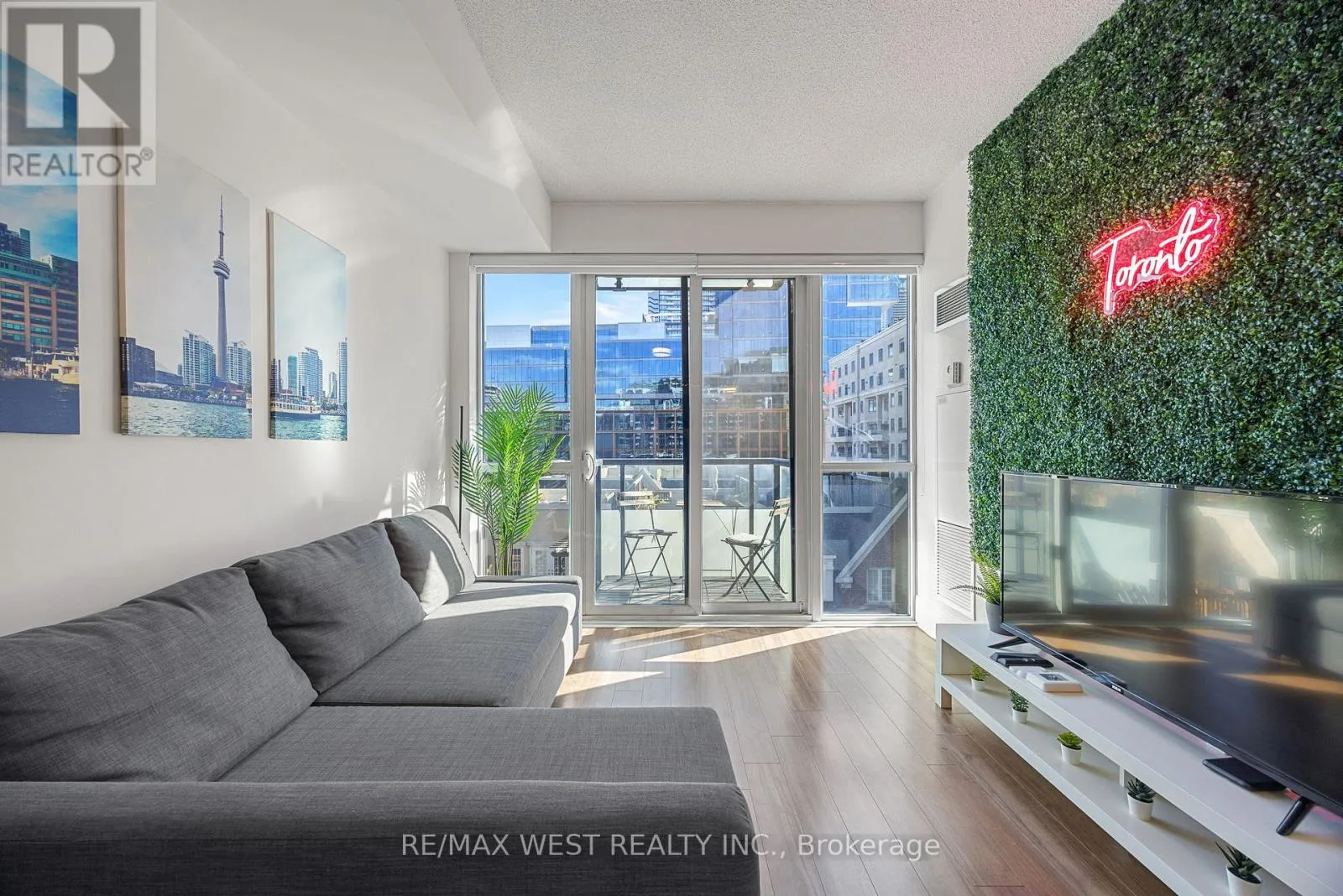 Front and Bathurst Best lease opputunity for a fully furnished 1 bedroom plus den in a Tridel building, offers approximately 645 sq ft of efficient, open-concept living. Floor-to-ceiling windows provide abundant natural light throughout, including the primary bedroom with excellent storage. The sleek, functional kitchen offers ample counter space for both daily living and entertaining. East-facing balcony overlooks a quiet courtyard. Steps to King West dining, cafés, and nightlife, with easy access to Stackt Market, The Well, transit, parks, and everyday amenities. (id:27476)