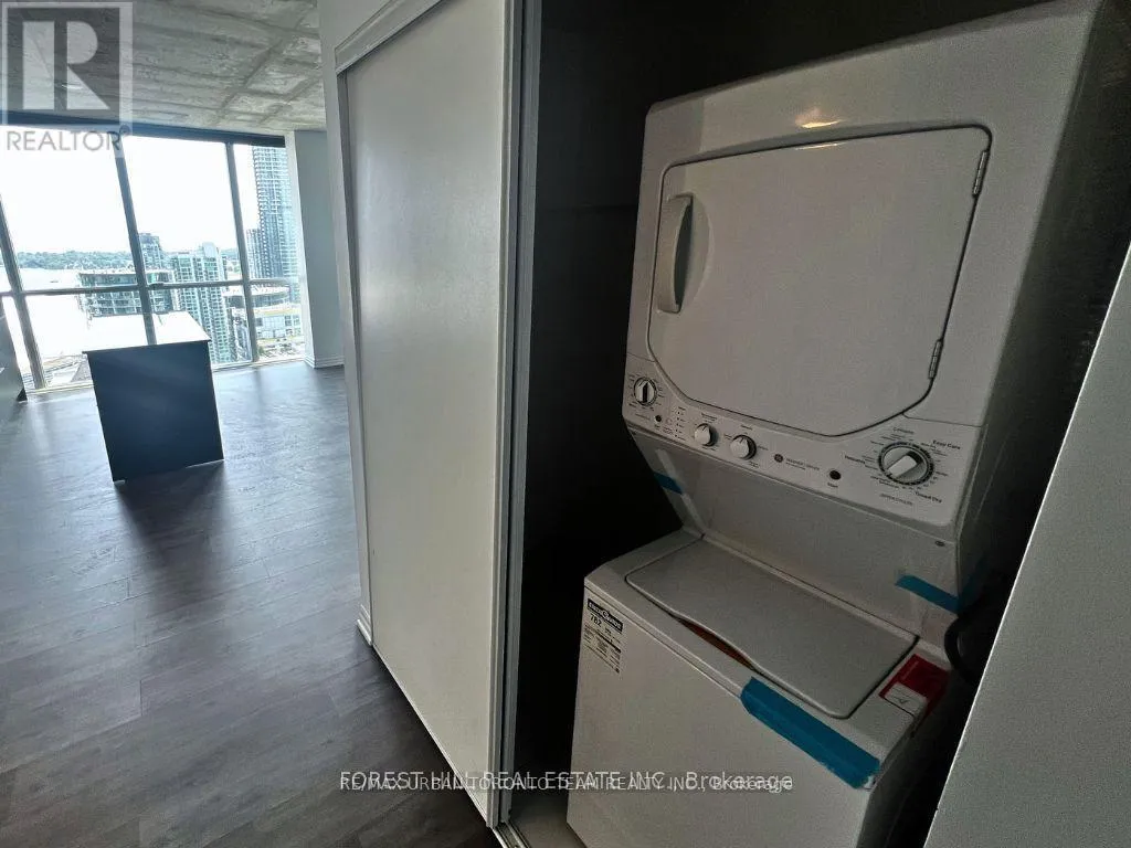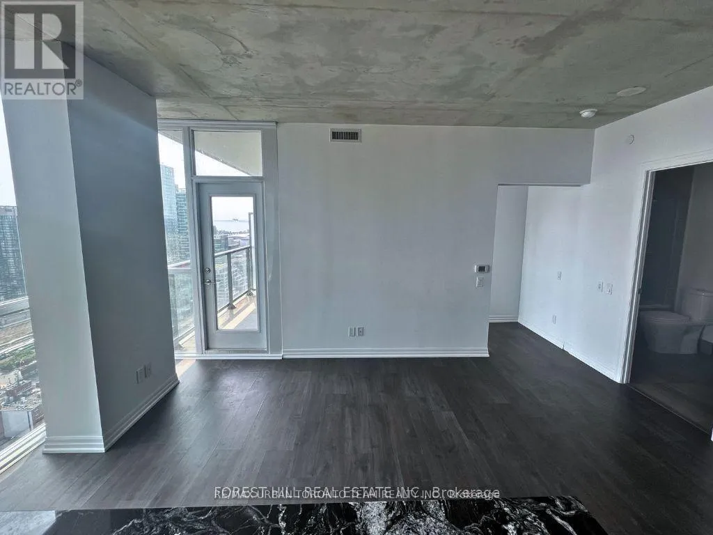 King St./Blue Jays Way Experience luxury living at its finest in this stunning, bright, and spacious South-facing unit at the prestigious Bisha Hotel Residences. Offering panoramic views of the Lake Ontario, CN Tower, and Air Canada Centre, this one-of-a-kind condo is the perfect blend of style and sophistication.Step inside this 1+Den suite, featuring an enclosed den that provides the perfect space for work or relaxation. With 9-foot exposed concrete ceilings and an open-concept layout, the unit feels airy and expansive. The modern kitchen is equipped with top-of-the-line built-in appliances, and sleek remote-controlled blinds add a touch of convenience and privacy. The spacious living area opens up to a private balcony - ideal for enjoying breathtaking views of downtown Toronto.Enjoy unparalleled luxury with exclusive access to the Bisha Hotel's world-class amenities, including a rooftop pool, stunning views of the city skyline, and a 24-hour concierge. Need parking? This unit includes a prime parking spot right across from the elevators on P1 for ultimate convenience.Situated in the heart of the Entertainment District, you'll be steps away from Toronto's finest dining, vibrant nightlife, and cultural attractions. Union Station, the Financial District, and a variety of 5-star restaurants, including some right within the hotel, are all just minutes away. (id:27476)
