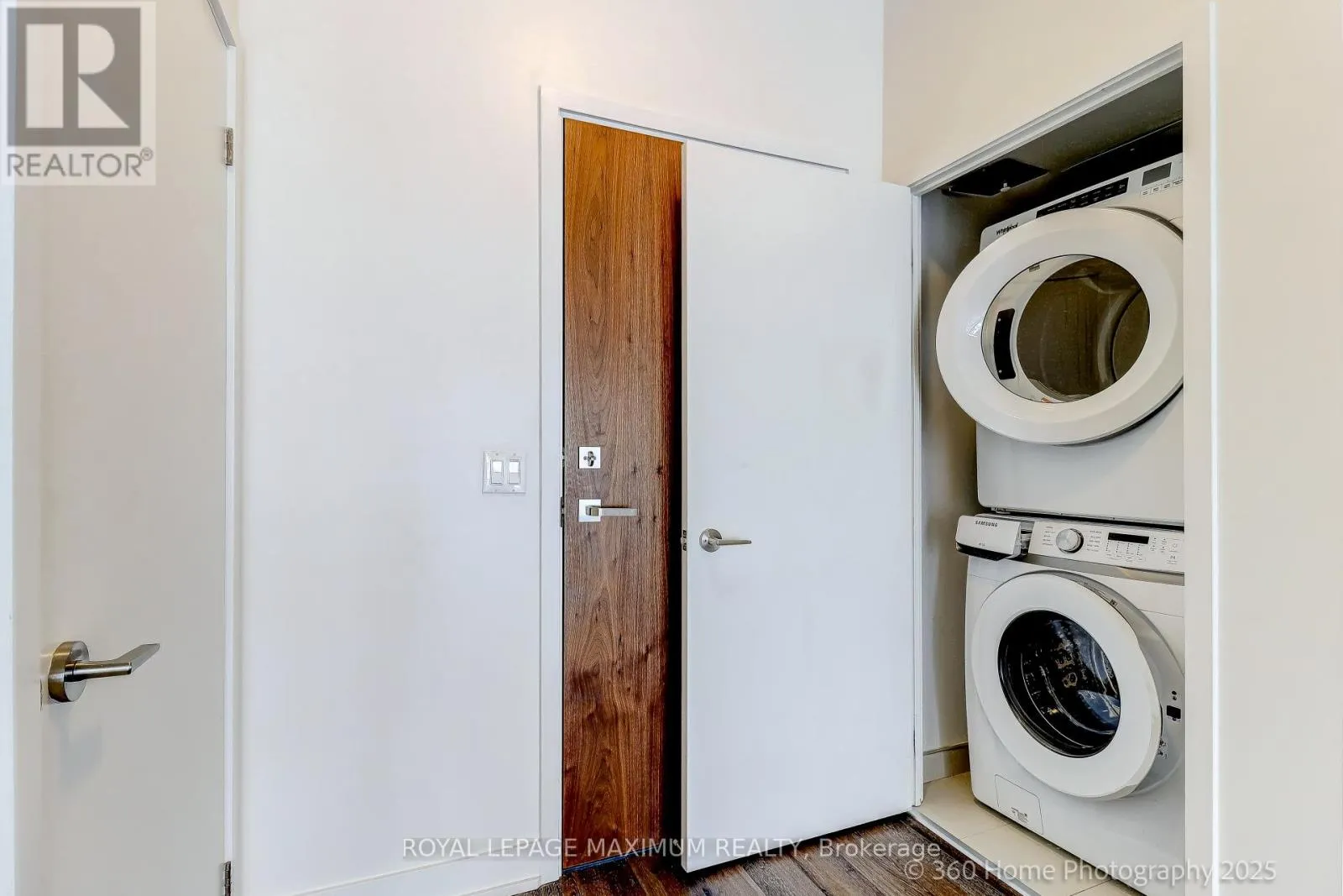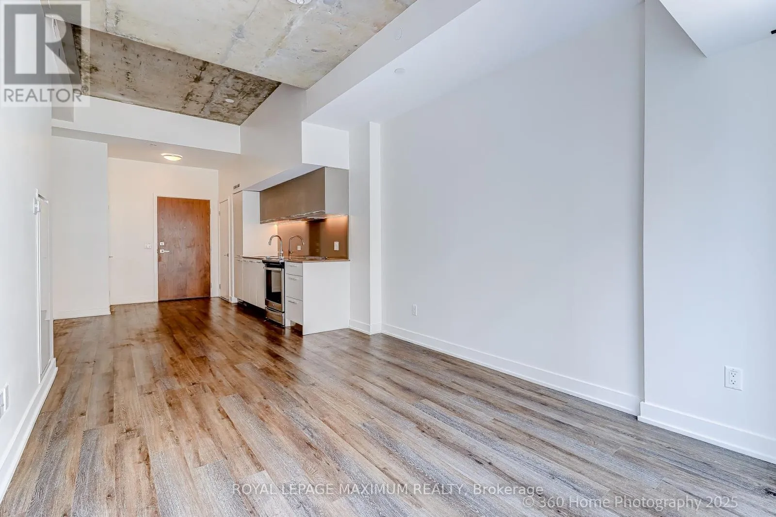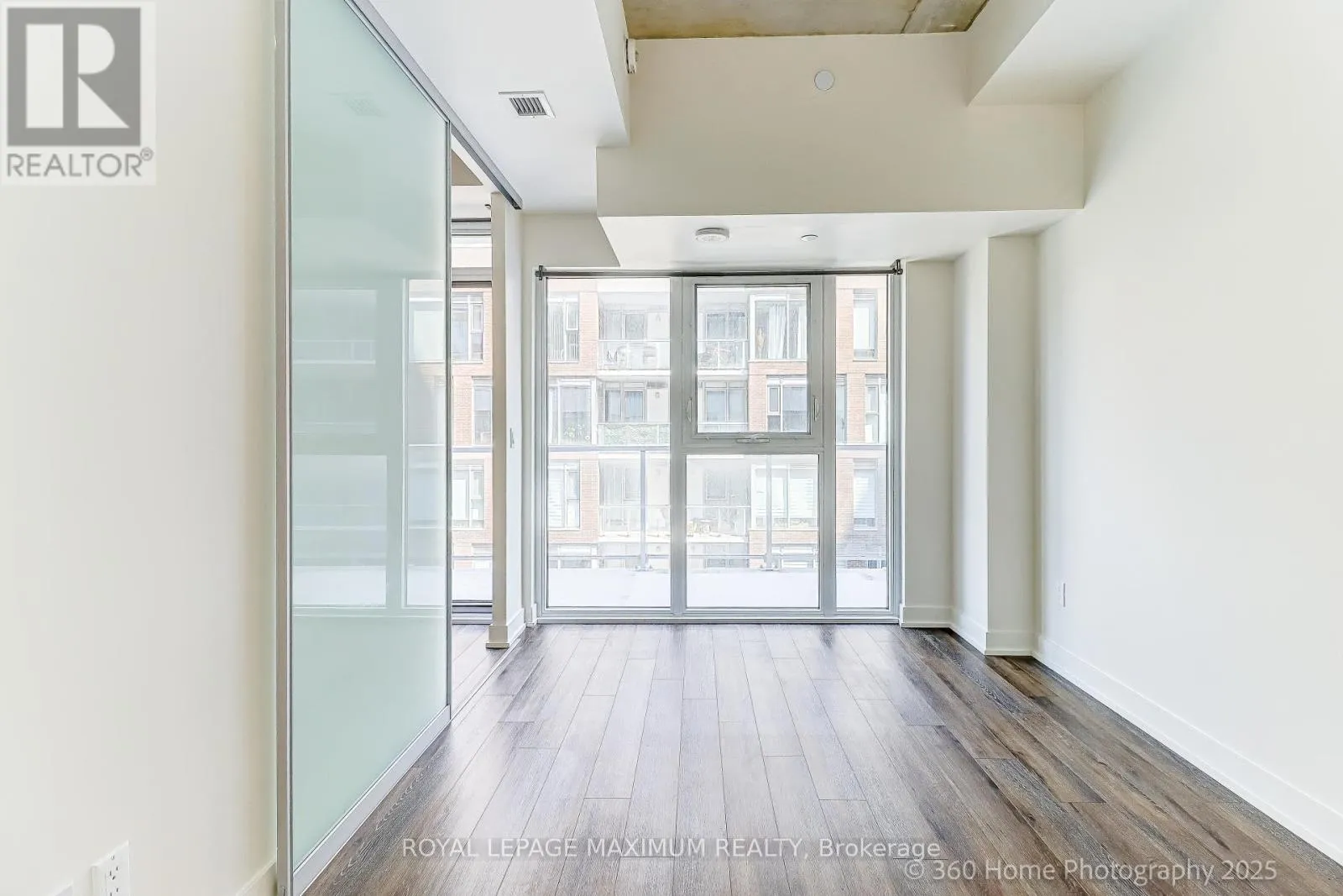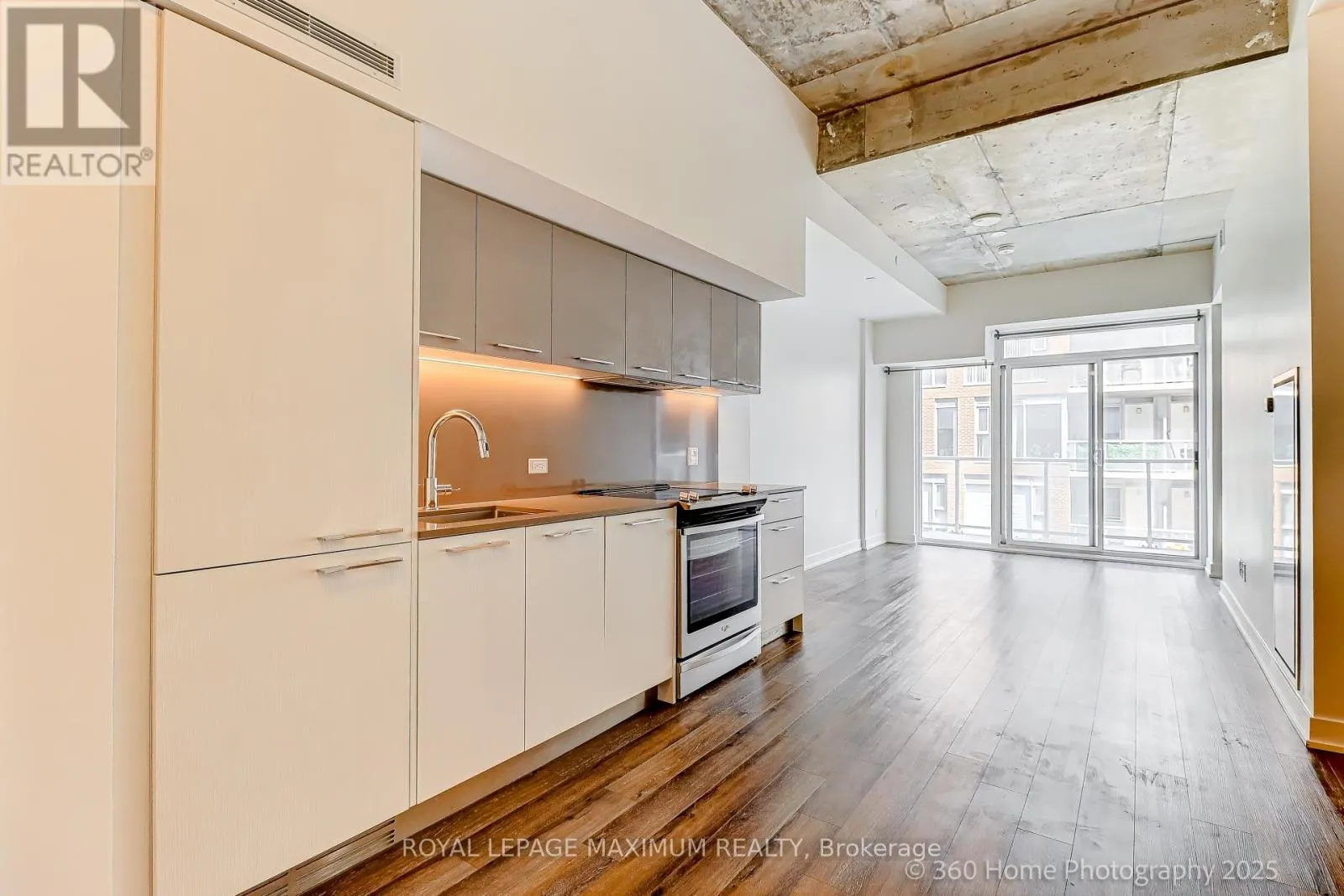 Queen/Broadview Welcome to Riverdale Square urban living at its best. In Leslieville Live in one of Torontos most exciting and connected communities Queen and Broadview. Excellent designed 1 Bedroom + Den 1 bathroom smart and efficient layout. No wasted space boasting high ceilings. 130 sqft terrace perfect for relaxing under the skyline, complete with gas BBQ hook up. 9 foot exposed concrete ceilings floor to ceiling windows, and hardwood flooring throughout. Modern European style kitchen with stainless steel appliances and quartz counter tops. Excellent primary bedroom with oversized closet. Steps to Queen Street. 1 Minute from DVP. Surrounded by the Louisville shops, cafes and restaurants. Residents enjoy access to top tier amentities, including a rooftop lounge gym, outdoor pool. Checks every box. **EXTRAS: Fridge, Stove, Washer, Dryer, All ELFS* (id:27476)