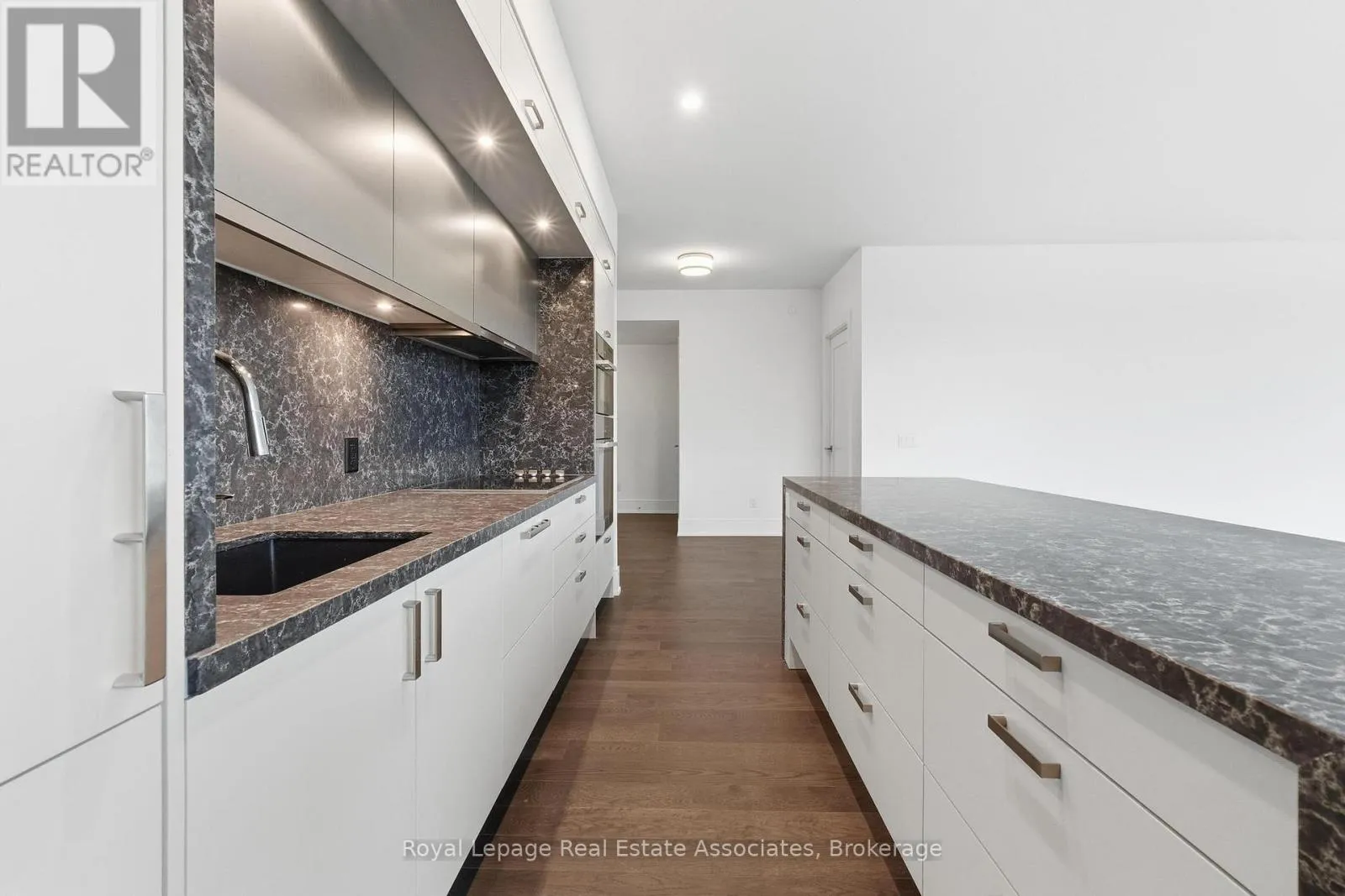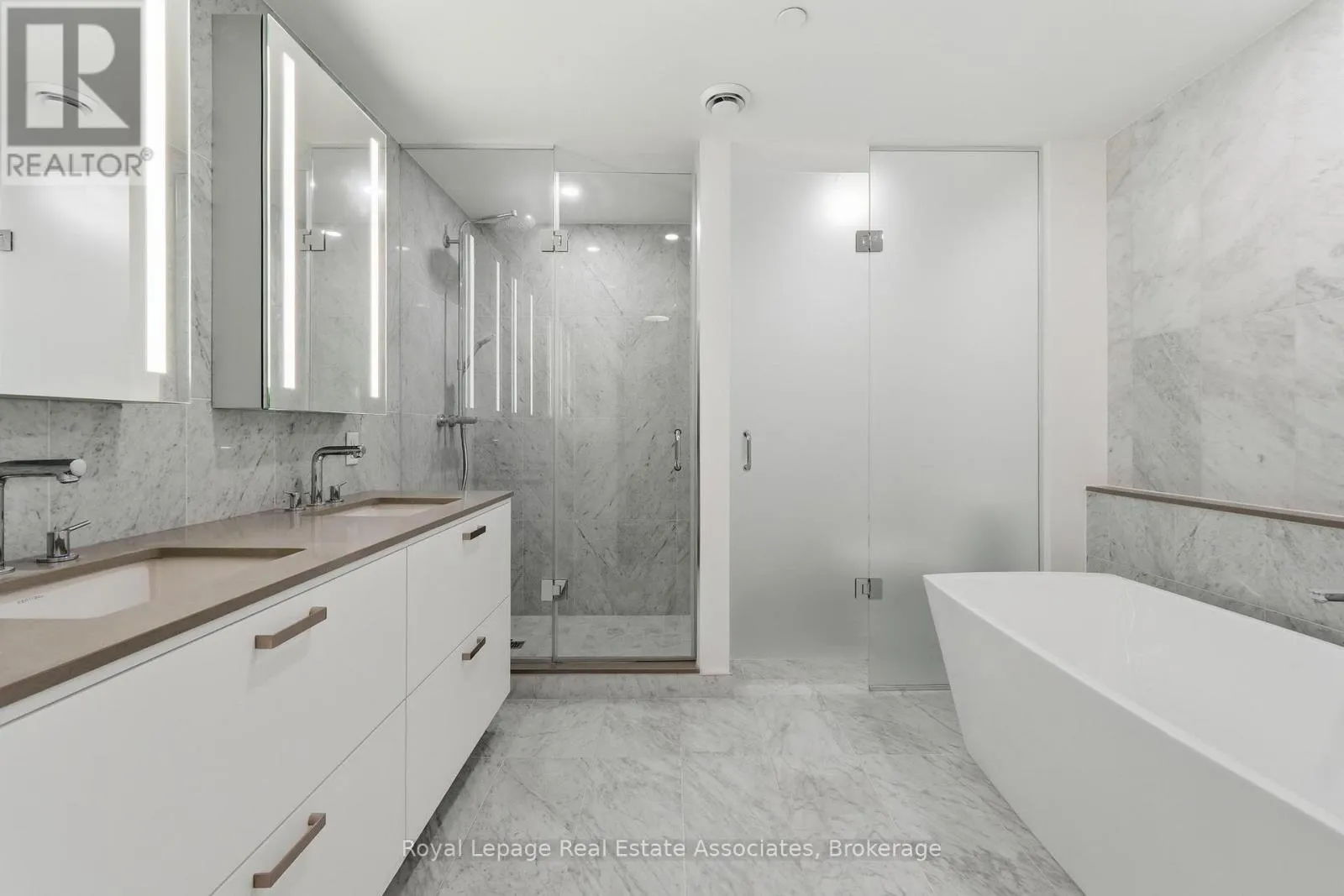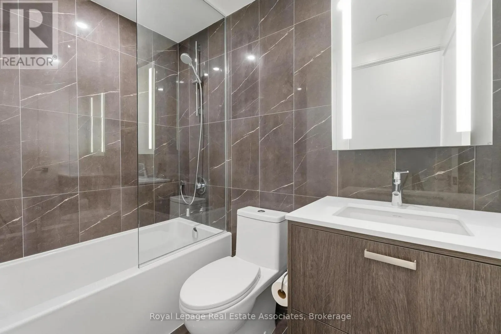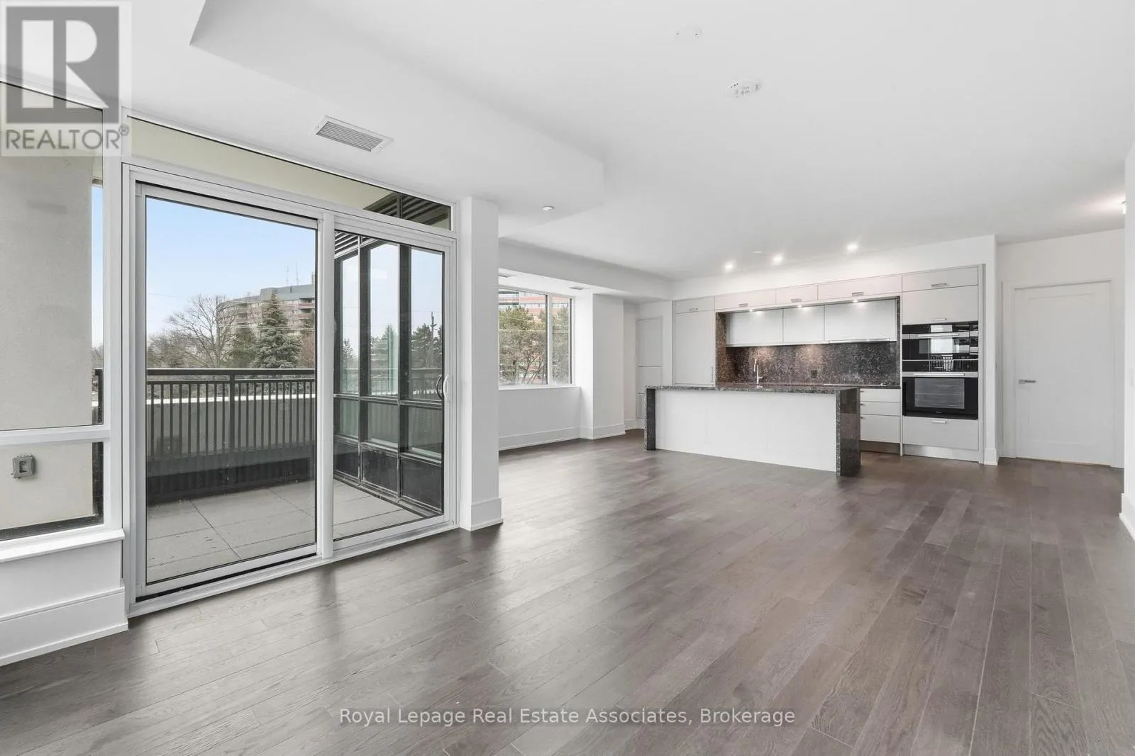 Royal York / Dundas St W Welcome to Edenbridge by Tridel, a refined and thoughtfully designed residence in the heart of The Kingsway. This expansive 2-bedroom suite offers 1466 sq. ft. of well-proportioned living space with a rare private terrace, delivering an exceptional blend of indoor comfort and outdoor living in a highly sought-after community. The modern kitchen features full-height cabinetry, integrated stainless steel appliances, and quartz countertops, opening seamlessly into the combined living and dining area. Wide-plank flooring, generous windows, and clean architectural lines enhance the sense of space, while a walk-out from the living room leads directly to the large terrace, ideal for entertaining, outdoor dining, or quiet relaxation. The primary bedroom includes a walk-in closet and a luxurious 5-piece ensuite, while the second bedroom offers its own 4-piece ensuite, providing excellent privacy and functionality. A convenient powder room, in-suite laundry, and thoughtful storage complete the interior, along with 2 parking spaces, one of which is an EV parking space and one locker included for added convenience. Residents enjoy access to a premium collection of amenities including a fitness centre, indoor pool, sauna, rooftop terrace, guest suites, and 24-hour concierge service. Ideally located near Humbertown Shopping Centre, parks, transit, and top-rated schools, this suite offers spacious, upscale living in one of Etobicoke's most established and desirable neighbourhoods. (id:27476)