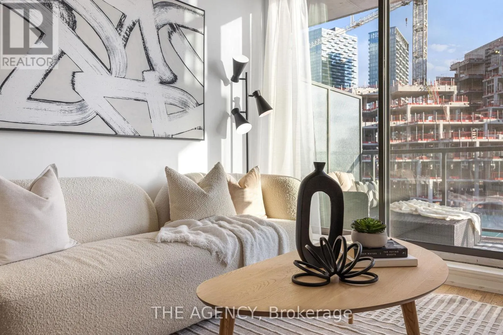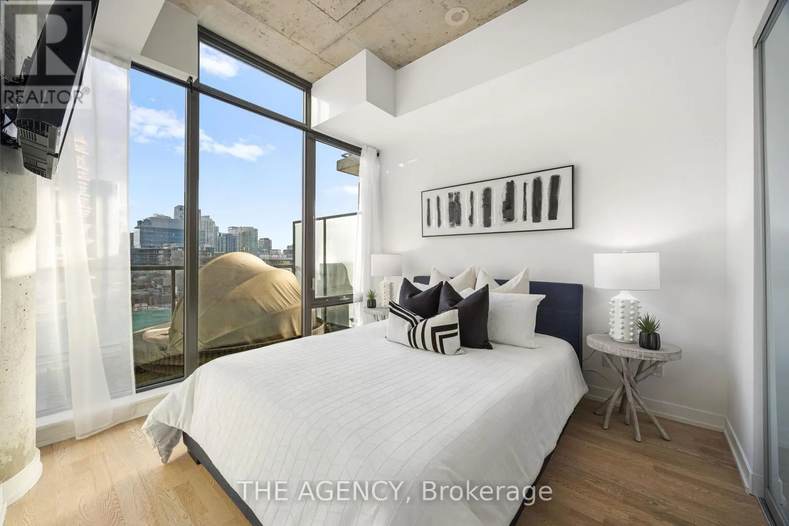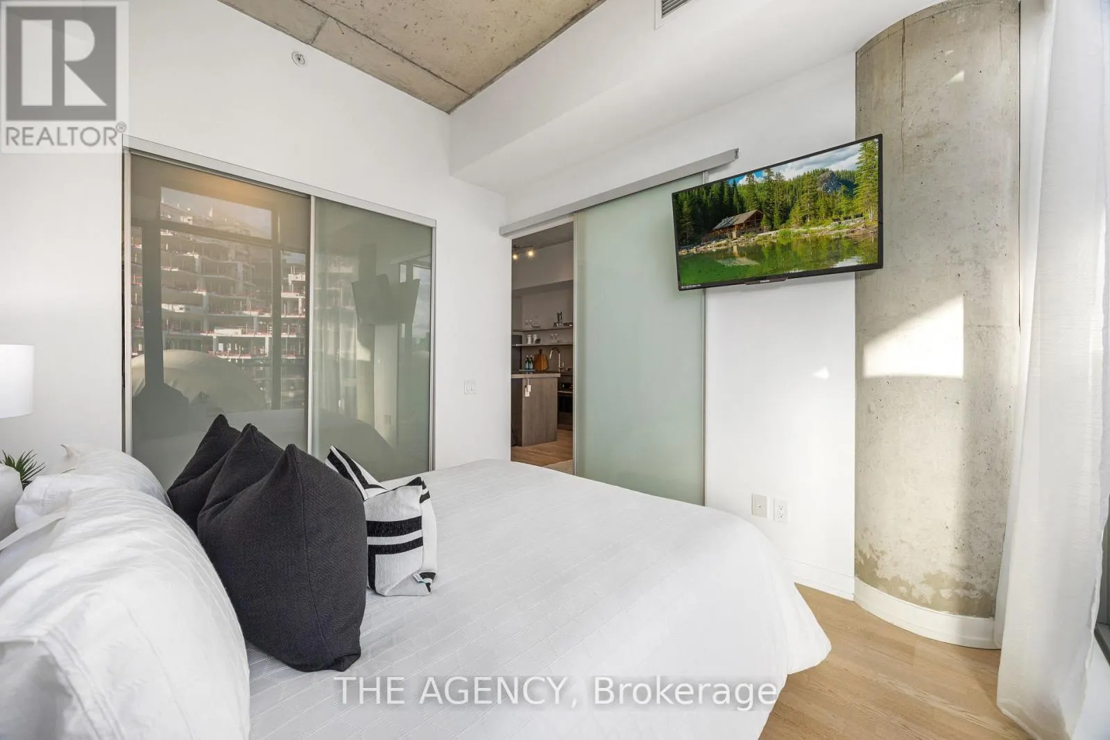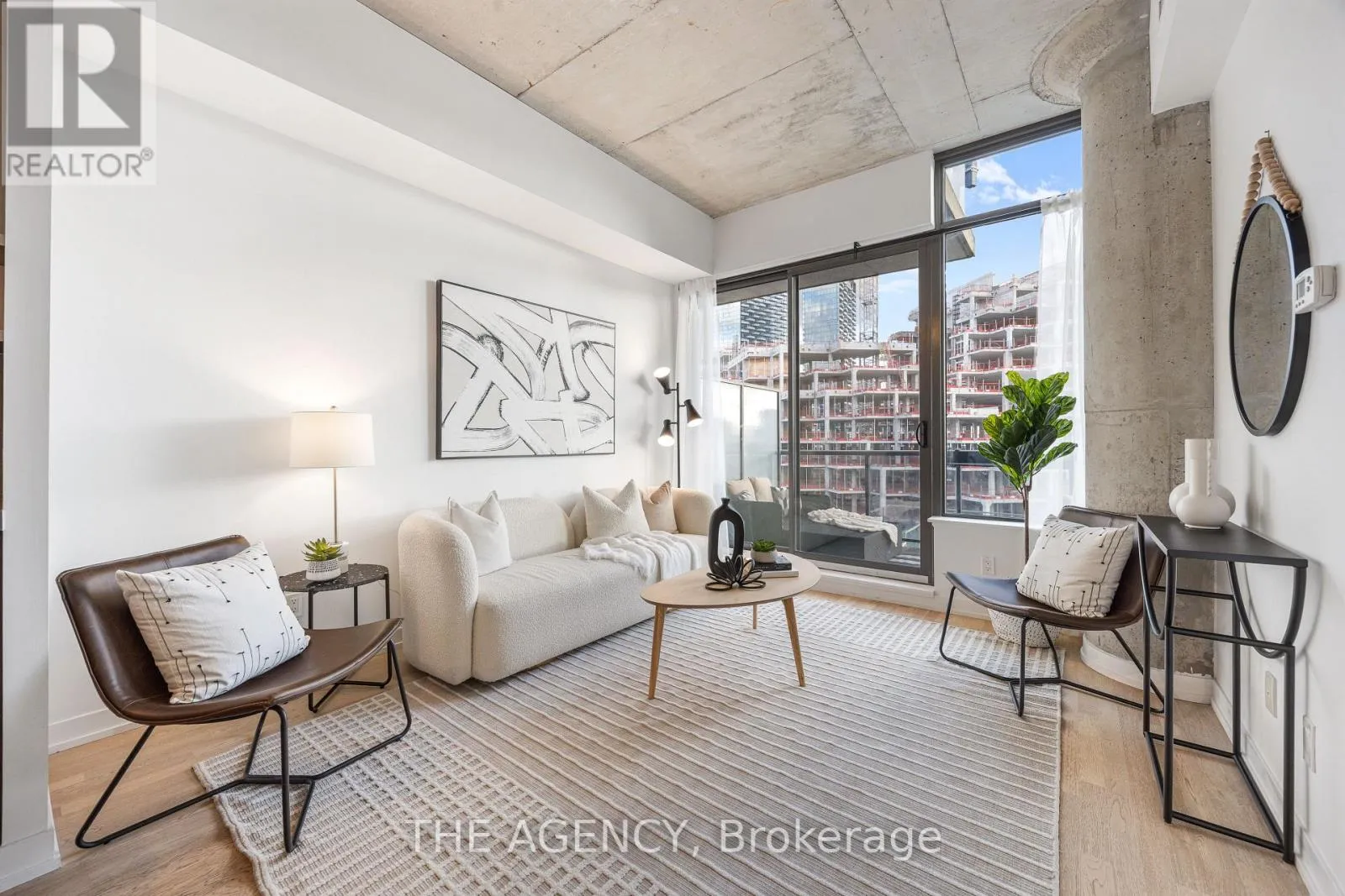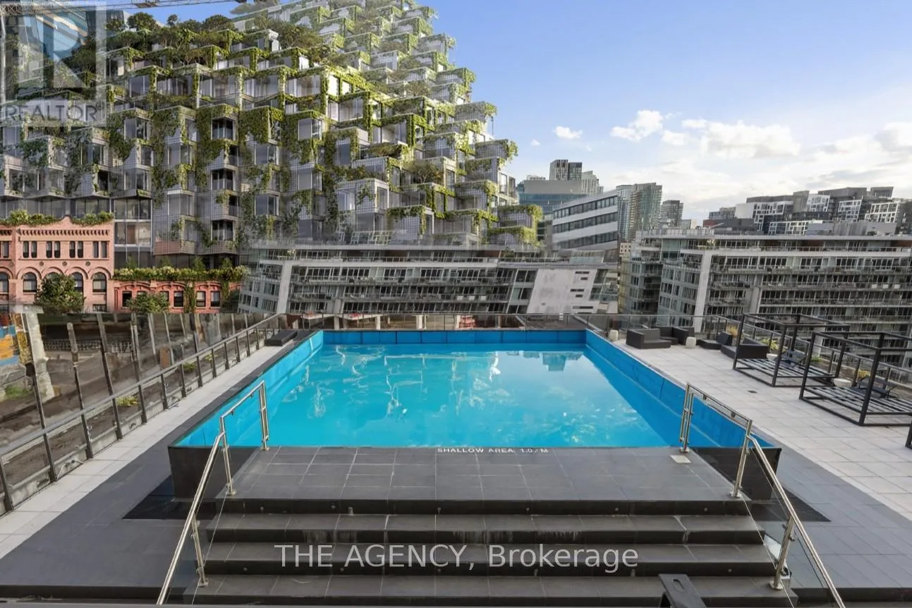 Cross Streets: King St W/Portland St. ** Directions: King St W between Portland St & Brant St. Offer anytime! Step into the epitome of King West luxury at Fashion House Condos! One of Downtown Toronto's most sought-after buildings, this boutique gem radiates sophistication from the entrance onward. Located atop 'The Keg Steakhouse' and 'Majesty's Pleasure' social beauty club, and across from the iconic 'Rodney's Oyster House' and 'Mademoiselle Raw Bar & Grill', this is Fashion District living at its finest-- surrounded by the vibrant nightlife and renowned culinary experiences of King West. Did you know 'Sir Elton John' owns the penthouse across the street? This south-facing unit is flooded with natural light and boasts forever-unobstructed views of the district and the CN Tower, visible from both the balcony and bedroom. Enjoy open-concept, loft-style, living with 10' exposed concrete ceilings and pillars, and floor-to-ceiling windows. Step out onto a cabana-style balcony overlooking the buildings signature infinity pool- perfect for poolside vibes from the comfort of your home. With a gas BBQ hookup, deck tiles, and a luxurious round daybed, your outdoor escape awaits. Inside, discover a modern, open-concept interior with a practical layout. The European-style chef's kitchen features open top shelving, high-end stainless-steel appliances, a gas cooktop, and a spacious waterfall island. The primary bedroom, fits a king bed, offers a large walk-in closet and stunning views. The spacious den comfortably fits a queen-size bed and includes built-in storage. Both the bedroom and the den come with privacy sliding doors. The rarely available 5-piece bathroom provides the luxury of both a shower stall and a bathtub. Top-notch amenities include an infinity pool and cabanas connected to a state-of-the-art gym and a party room. TTC at your doorstep, 5 minutes by bike to the Toronto Waterfront and TikiTaxi station-- your King West oasis awaits! The unit comes with a parking spot and a locker, very close to each other. Heat and water included in the maintenance fees. (id:27476)