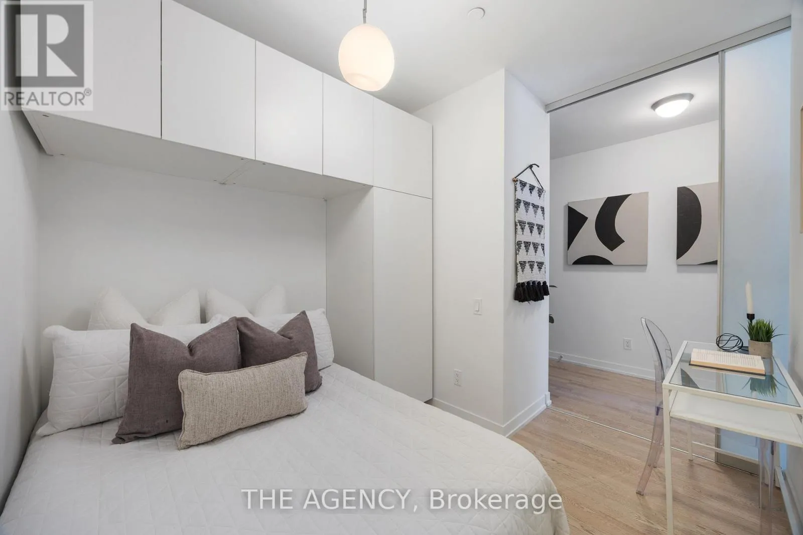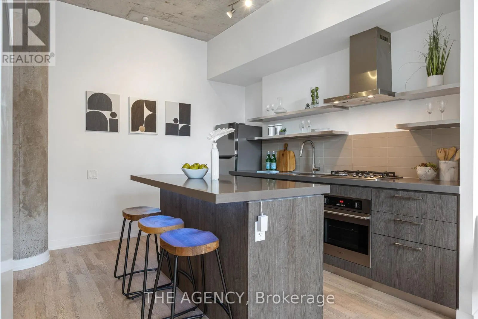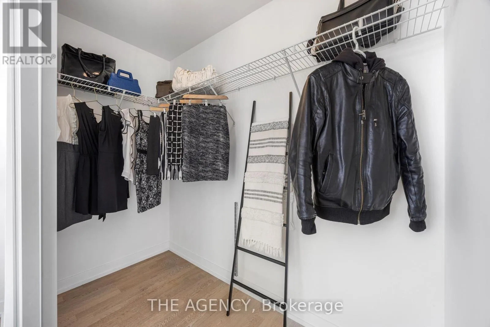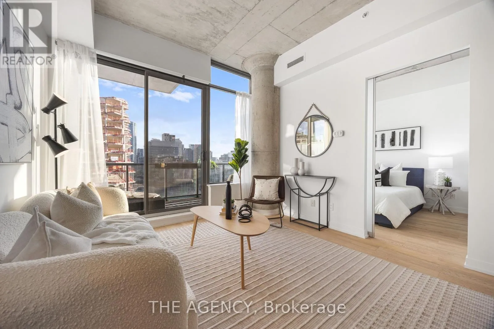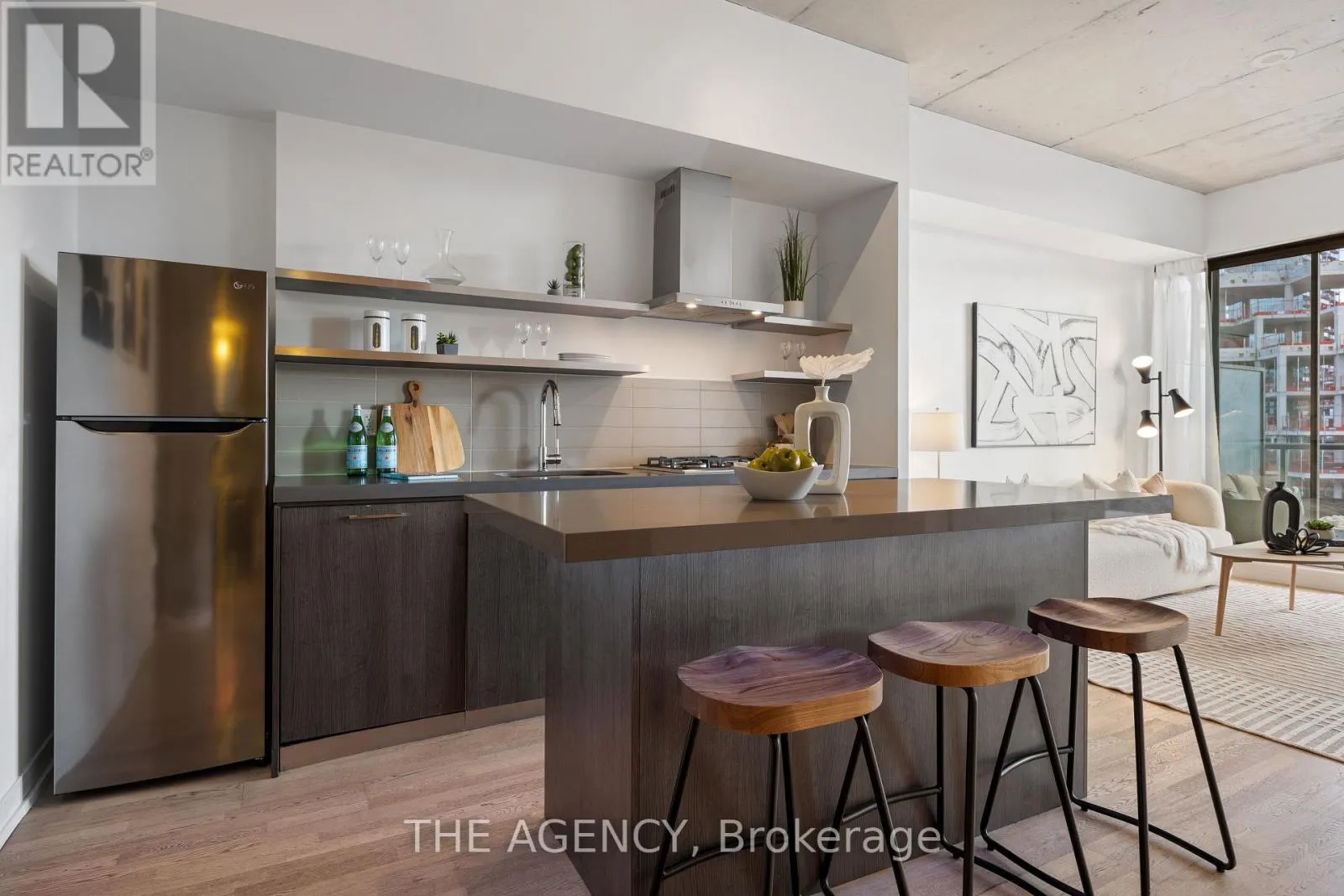 Cross Streets: King St W/Portland St. ** Directions: King St W between Portland St & Brant St. Offer anytime! Step into the epitome of King West luxury at Fashion House Condos! One of Downtown Toronto's most sought-after buildings, this boutique gem radiates sophistication from the entrance onward. Located atop 'The Keg Steakhouse' and 'Majesty's Pleasure' social beauty club, and across from the iconic 'Rodney's Oyster House' and 'Mademoiselle Raw Bar & Grill', this is Fashion District living at its finest-- surrounded by the vibrant nightlife and renowned culinary experiences of King West. Did you know 'Sir Elton John' owns the penthouse across the street? This south-facing unit is flooded with natural light and boasts forever-unobstructed views of the district and the CN Tower, visible from both the balcony and bedroom. Enjoy open-concept, loft-style, living with 10' exposed concrete ceilings and pillars, and floor-to-ceiling windows. Step out onto a cabana-style balcony overlooking the buildings signature infinity pool- perfect for poolside vibes from the comfort of your home. With a gas BBQ hookup, deck tiles, and a luxurious round daybed, your outdoor escape awaits. Inside, discover a modern, open-concept interior with a practical layout. The European-style chef's kitchen features open top shelving, high-end stainless-steel appliances, a gas cooktop, and a spacious waterfall island. The primary bedroom, fits a king bed, offers a large walk-in closet and stunning views. The spacious den comfortably fits a queen-size bed and includes built-in storage. Both the bedroom and the den come with privacy sliding doors. The rarely available 5-piece bathroom provides the luxury of both a shower stall and a bathtub. Top-notch amenities include an infinity pool and cabanas connected to a state-of-the-art gym and a party room. TTC at your doorstep, 5 minutes by bike to the Toronto Waterfront and TikiTaxi station-- your King West oasis awaits! The unit comes with a parking spot and a locker, very close to each other. Heat and water included in the maintenance fees. (id:27476)